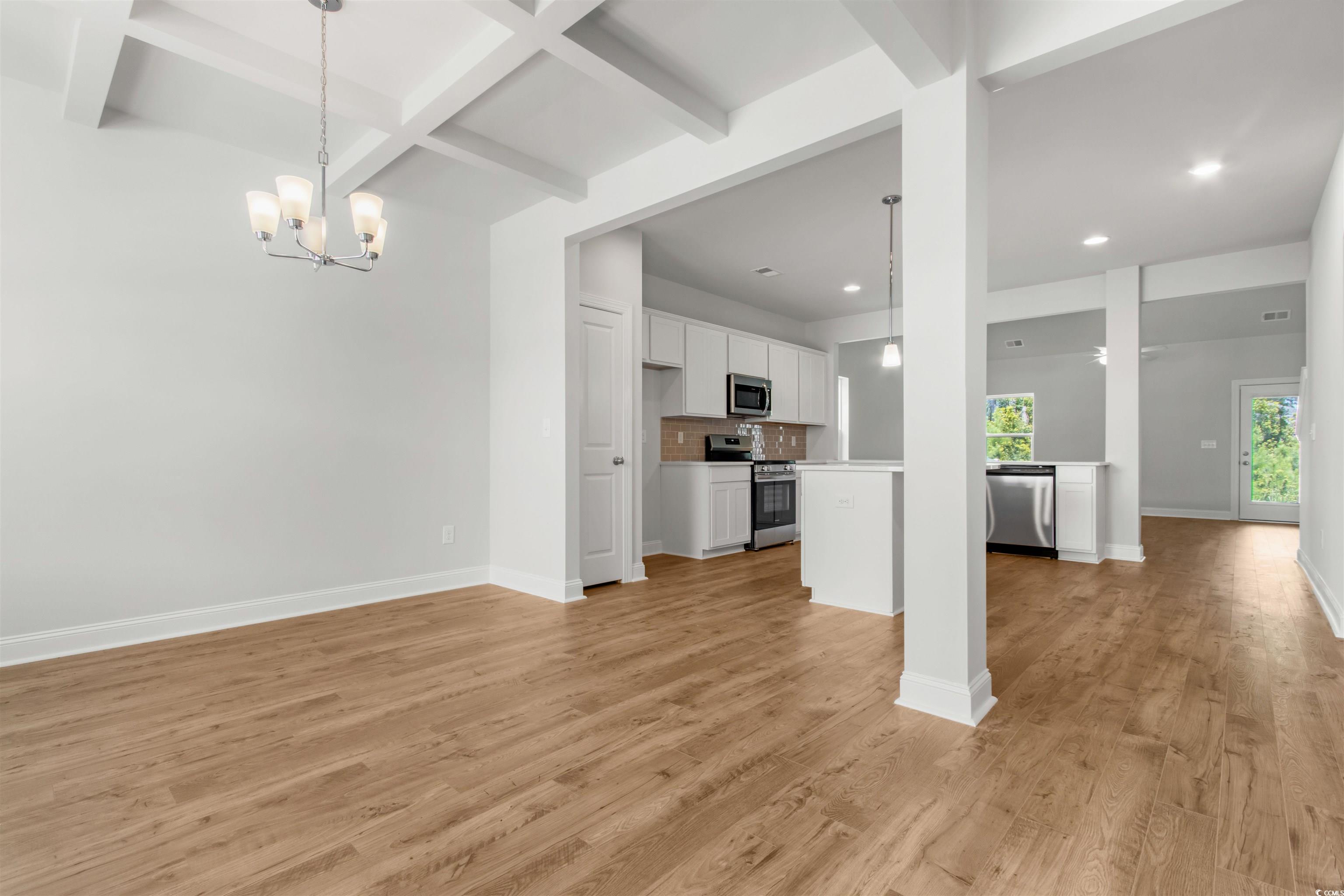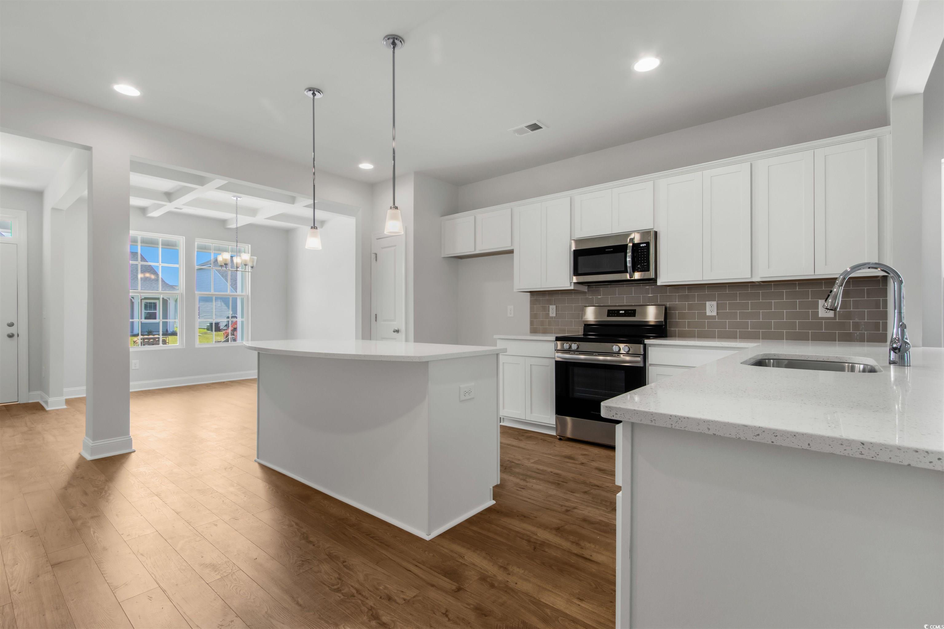 Introducing The Jordan, the largest home offered in the Spring Oaks community, designed to provide maximum space and comfort for your family. As you enter, you are immediately welcomed by an open concept dining room that flows seamlessly into a spacious kitchen, ideal for both casual meals and entertaining guests. Moving into the living room, youll be greeted by soaring 16+ foot cathedral ceilings that create an expansive, airy atmosphere. The main level also features the primary bedroom, thoughtfully located for privacy, and includes a walk-in closet that conveniently connects to the laundry space for added ease. Upstairs, you'll find three generously-sized bedrooms with high vaulted ceilings that add to the homes sense of openness. The second level also features a full bathroom and an open loft area that overlooks the living room, perfect for a home office, playroom, or additional lounge space. There is also a pull-down access to the attic, offering plenty of storage options. Throughout the home, youll enjoy upgraded tile flooring in the bathrooms, comfort-height toilets, and upgraded Mohawk laminate flooring in the common areas. The home is also equipped with an irrigation/sprinkler system to keep your yard looking lush and well-maintained. With its thoughtful design and ample space, The Jordan is the perfect home for those seeking modern convenience and a welcoming environment. Spring Oaks is a beautiful new home community offering natural gas homes, blending comfort with sustainability. Ideally located near Historic Downtown Conway, residents enjoy easy access to the Riverwalk, local restaurants, shops, and the stunning coastal beaches. Its the perfect spot for modern living with the convenience of nearby attractions. Photos are of a representative model.
