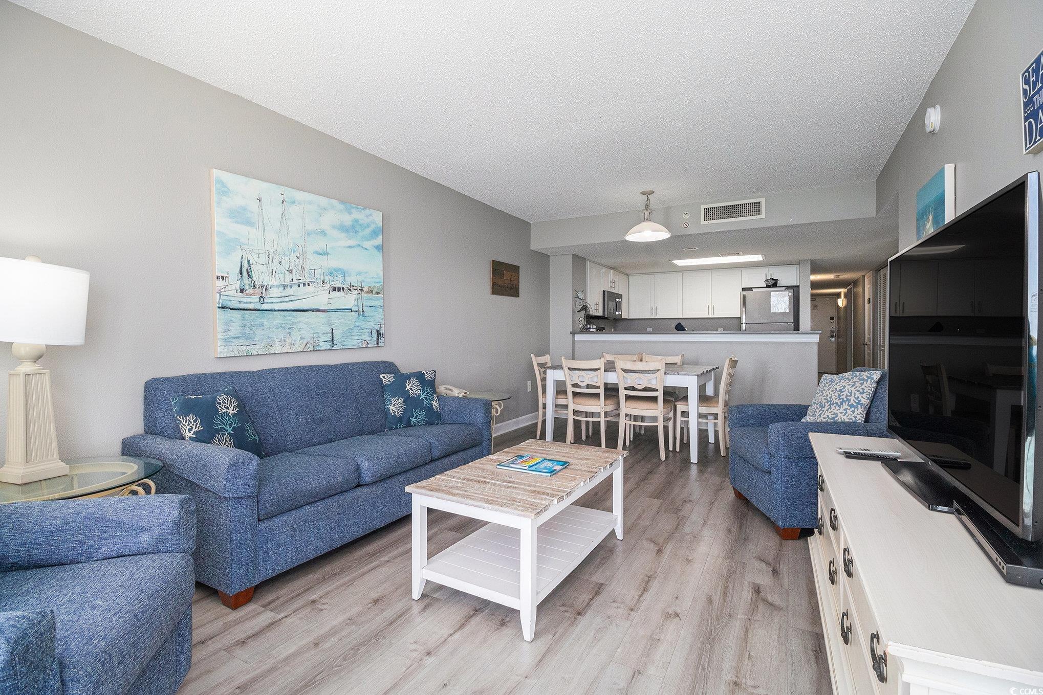 Perched on the 18th floor, this beautifully updated 3-bedroom, 3-bath condo offers breathtaking views of the Atlantic Ocean through floor-to-ceiling windows. Recent upgrades within the last three years include a fully renovated kitchen with new appliances, cabinetry, and countertops; all-new bathroom vanities and mirrors; new flooring in the bedrooms and main living areas; hotel-grade TVs in every room; and new living room and dining furniture. The open-concept layout connects a fully equipped kitchen with granite counters to the living and dining areas -- perfect for entertaining with an ocean backdrop. The spacious primary bedroom features private balcony access and serene water views. This property would make an incredible primary residence, investment property or vacation home. Located in the desirable Crescent Beach area, Bay Watch Resort offers extensive amenities: indoor/outdoor pools, a lazy river, hot tubs, a Tiki bar, a restaurant, a full fitness center, conference space, remote office access, a gift shop, and an on-site parking garage. Just minutes from top dining, shopping, golf, and entertainment in North Myrtle Beach.