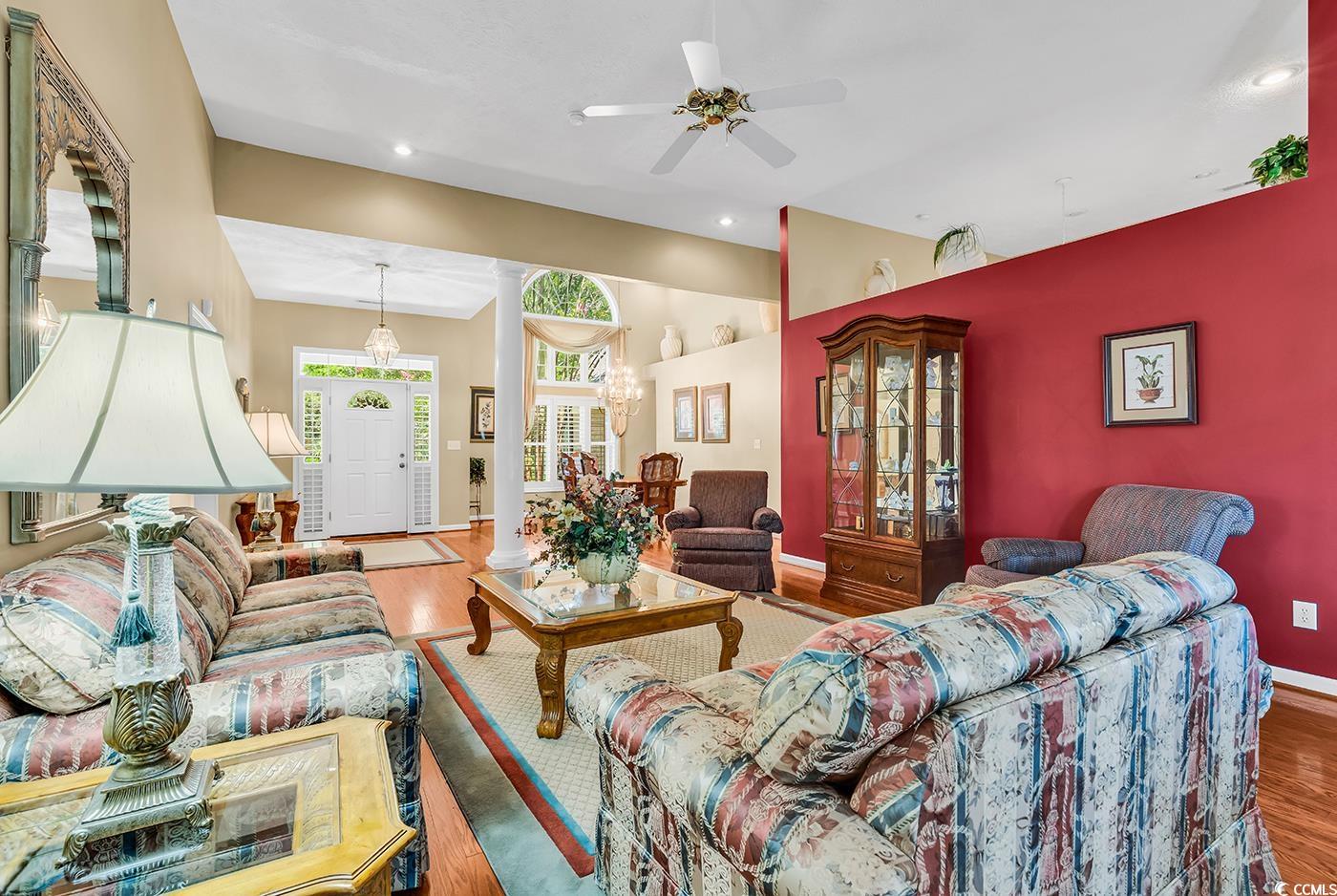 Nestled beneath mature oaks, this custom all-brick home offers a rare opportunity to enjoy waterfront living on almost a half acre in the desirable Murrells Inlet neighborhood, Mt. Gilead. Featuring 3 spacious bedrooms, 3 full bathrooms, and a finished bonus room above the garage, this home combines charm, comfort, and flexibility. The 322 SF room above the garage is part of the central heating & air but is NOT counted in the heated square footage of this listing as you access the room from a set of stairs inside the garage. The interior boasts soaring ceilings, all three bedrooms & bathrooms on the ground level, and a warm, inviting floor plan ideal for both relaxing and entertaining. Step outside to your private dockperfect for boating, kayaking, or simply enjoying the waterfront lifestyle many move here to pursue. From your own dock, you can navigate the creeks of Murrells Inlet all the way through the jetties and out into the Atlantic Ocean. Dont miss this opportunity to get on the creek in Mt. Gilead! Contact the listing agent, or your Realtor, for more information or to set up a private showing. Be sure to check out the Matterport 3-D Virtual Tour!
