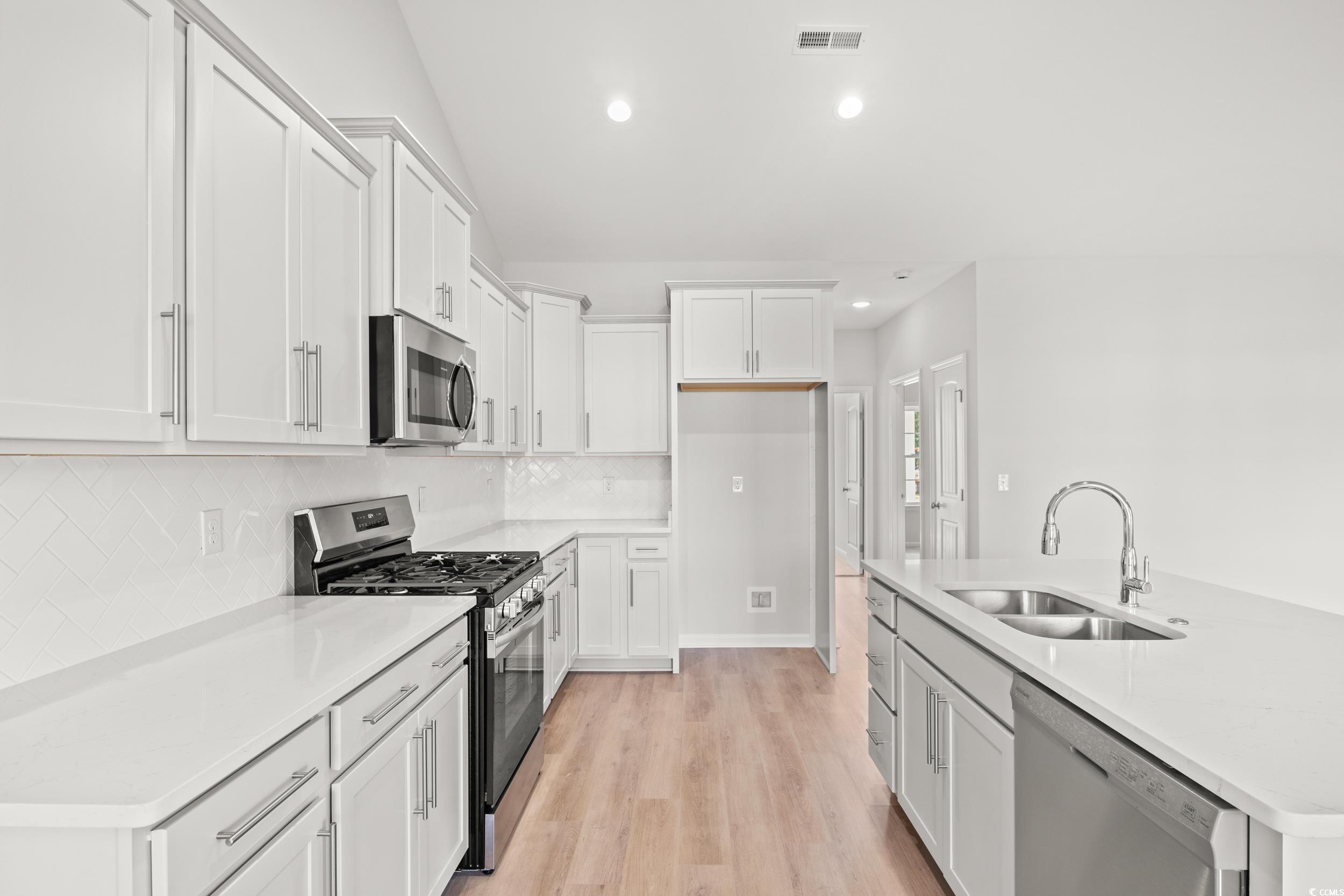 Quick Move In! Welcome to Rivertown Row North, the most anticipated new development in the heart of Conway. Enjoy the comfort of Natural Gas heat, cooking & tankless hot water in this single level 1812 sq ft Sullivan model. This 3 bedroom, 2 bath split floor plan has a large rear Master suite, vaulted great room ceilings, Quartz kitchen counter tops, and a kitchen bar w/ seating. The waterproof laminate plank flooring extends throughout the kitchen, baths and living areas. There is also a 2 car painted and trimmed Garage w/ drop down attic access, Laundry room, pantry, covered front porch, and a covered rear porch with an additional concrete patio that doubles your outdoor entertainment space. All homes in Rivertown Row North feature wider than average lots, Hardie Plank siding, open floor plans, 9' ceilings, painted garage interiors, fully cased windows, GAF high performance architectural shingles, 12"" roof overhangs, Aristokraft Birch shaker cabinets, Rinnai tankless water heater, Frigidaire stainless appliances, and many other upgraded architectural details. The neighborhood features sidewalks, street lighting and a community pool with pavilion. Building lifestyles for over 40 years, we remain the premier home builder along the Grand Strand. Were proud to be the 2021, 2022, 2023, and 2024 winners of both WMBF News' and The Sun News Best Home Builder award, 2023, 2024, and 2025 winners of the Myrtle Beach Herald's Best Residential Real Estate Developer award, and 2024 & 2025 winners of The Horry Independents Best Residential Real Estate Developer and Best New Home Builder award. THESE ARE NOT THE ACTUAL PHOTOS OF THIS HOME. These are from a similar floor plan with similar features