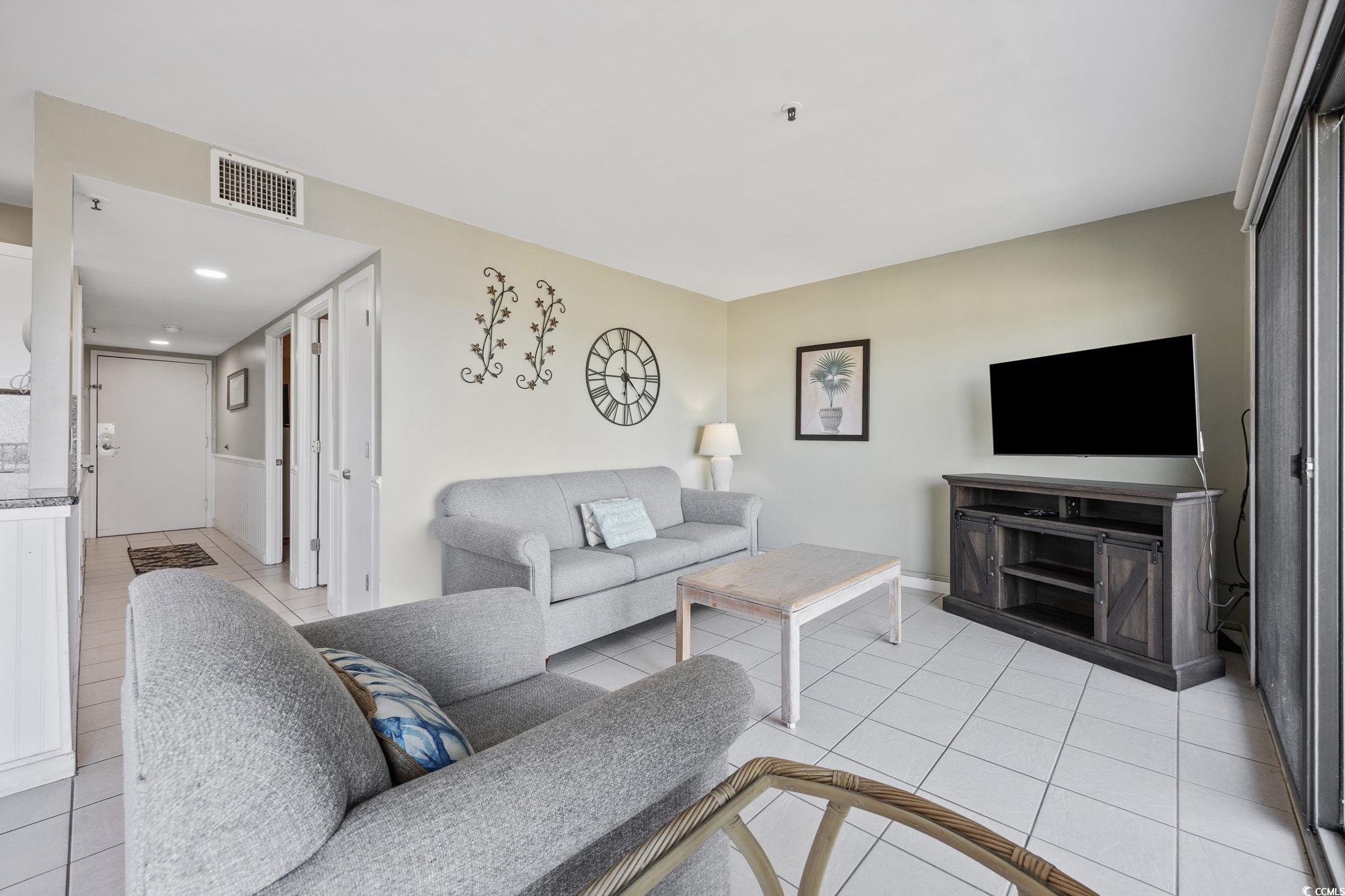 Investor or Family Dream - Furnished 2 Bed, 2 Bath Condo with Ocean & Pond Views Welcome to this beautifully updated and fully furnished 2 bedroom, 2 bathroom condo located in the highly desirable B Building of a gated oceanfront community. This spacious unit offers stunning views overlooking a peaceful pond with a fountain, along with partial views of the ocean, making it the perfect retreat for families or a smart investment opportunity. The interior features a bright and coastal design with granite countertops, a crisp white kitchen accented with wainscoting, and stainless steel appliances. The open living and dining area is perfect for entertaining or relaxing after a day at the beach. Both bedrooms are generously sized, and the layout is ideal for vacationing guests or everyday living. Being sold fully furnished, this unit is completely turn-key and rental ready. This condo is perfectly situated to enjoy all the resort-style amenities the community has to offer. Enjoy direct beach access, multiple outdoor pools, a conveniently located indoor pool and hot tub inside the B Building, a lazy river, tennis courts, and a beach bar. With elevators throughout and 24-hour gated security, comfort and convenience are always at your fingertips. Whether youre looking for a strong income-producing rental property, a second home, or a permanent residence by the ocean, this furnished condo offers the best of coastal living. Schedule your private showing today and experience the beach lifestyle at its finest.
