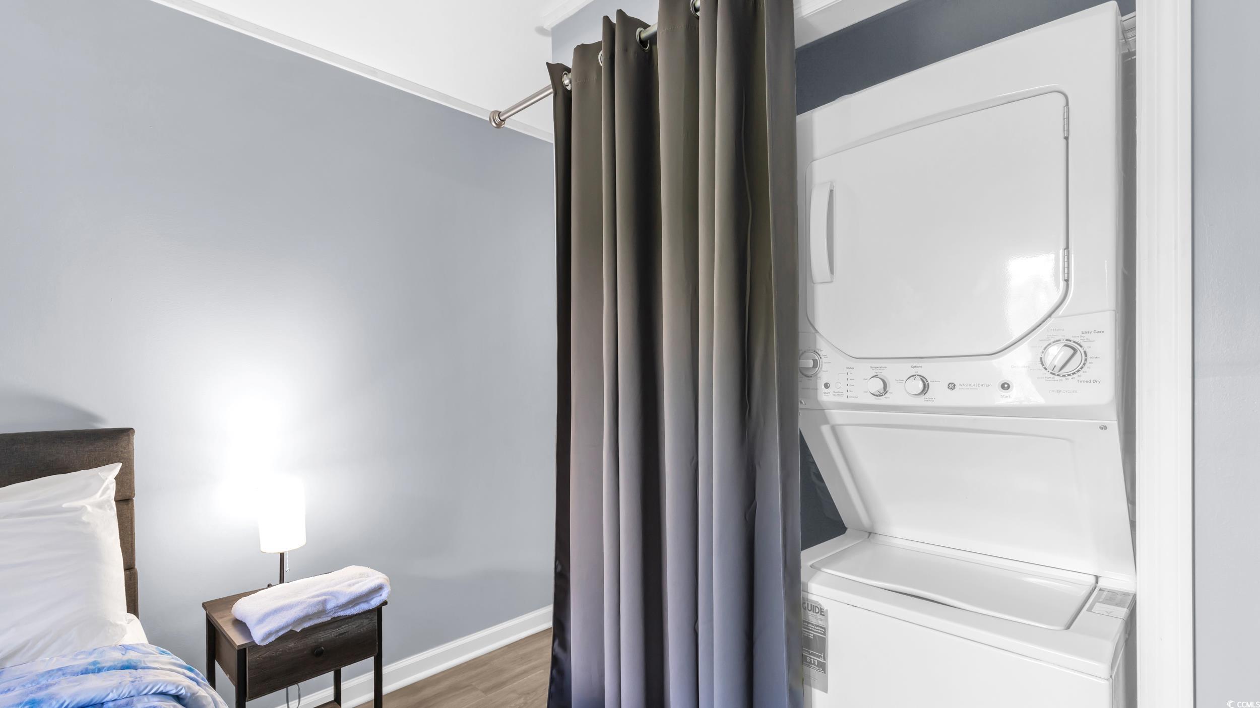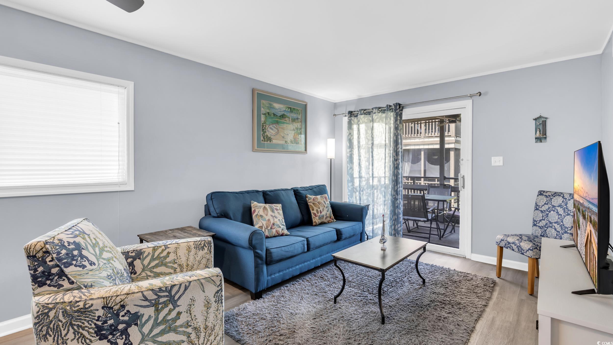 Tucked away in one of Shore Drive most charming condo communities, this 2-bedroom, 2-bathroom condo is the perfect beach retreat. Located just across the street from the iconic Ocean Annie's Beach Bar and only a short walk to Flip Flops Bar & Grill, you'll be right in the heart of all the laid-back coastal vibes. This second-floor unit in Building B comes fully furnished and ready to enjoy! Inside, you'll find LVP flooring throughout, a fully stocked kitchen with a stylish backsplash, and a cozy living room with a pull-out couch perfect for entertaining or relaxing with family after a day at the beach. The primary bedroom features a queen bed and private balcony, while the second bedroom has two twin beds for your guests. One of the best features. This condo has two private balconies, one off the living room and one off the primary bedroom ideal for winding down in the evening. You'll also appreciate the convenience of having an in-unit washer and dryer, so there's no need to worry about laundry during your vacation. Whether you're looking for a personal beach escape or a great investment opportunity, Mariners Cove B-215 offers the best of coastal living in a relaxed, welcoming community.