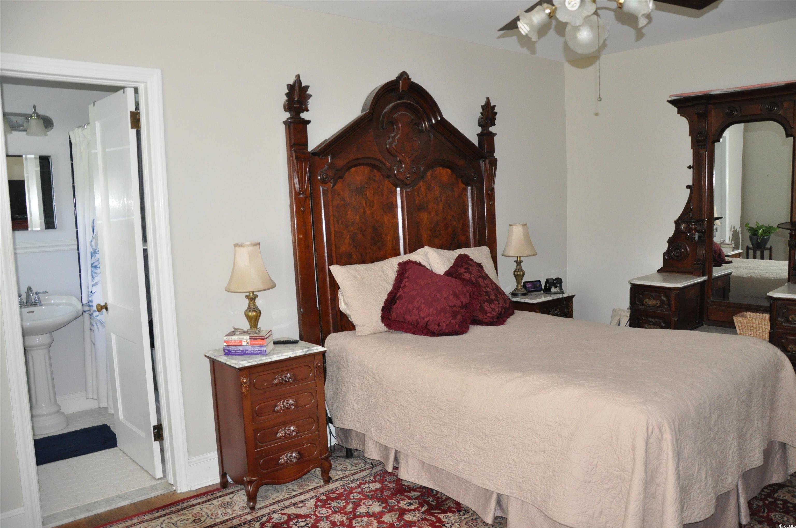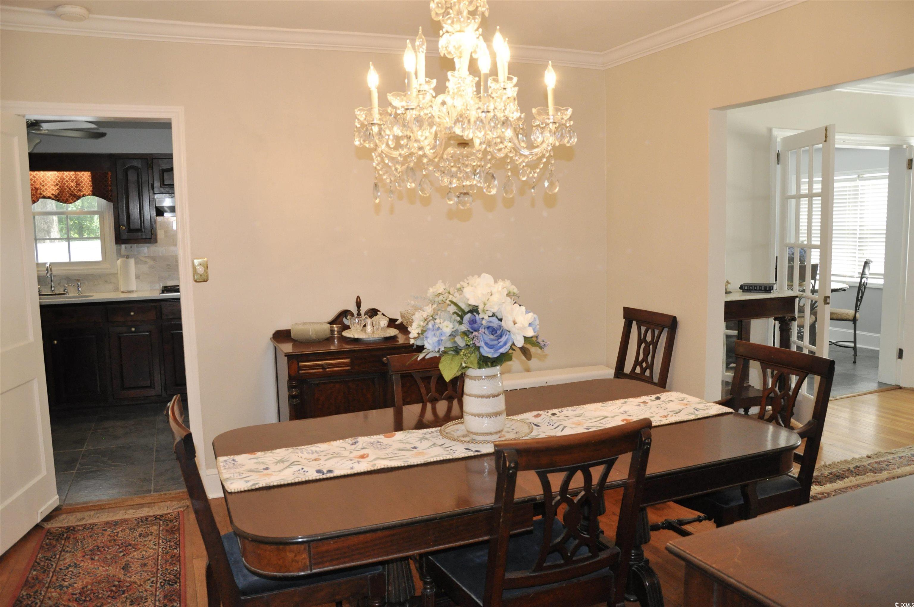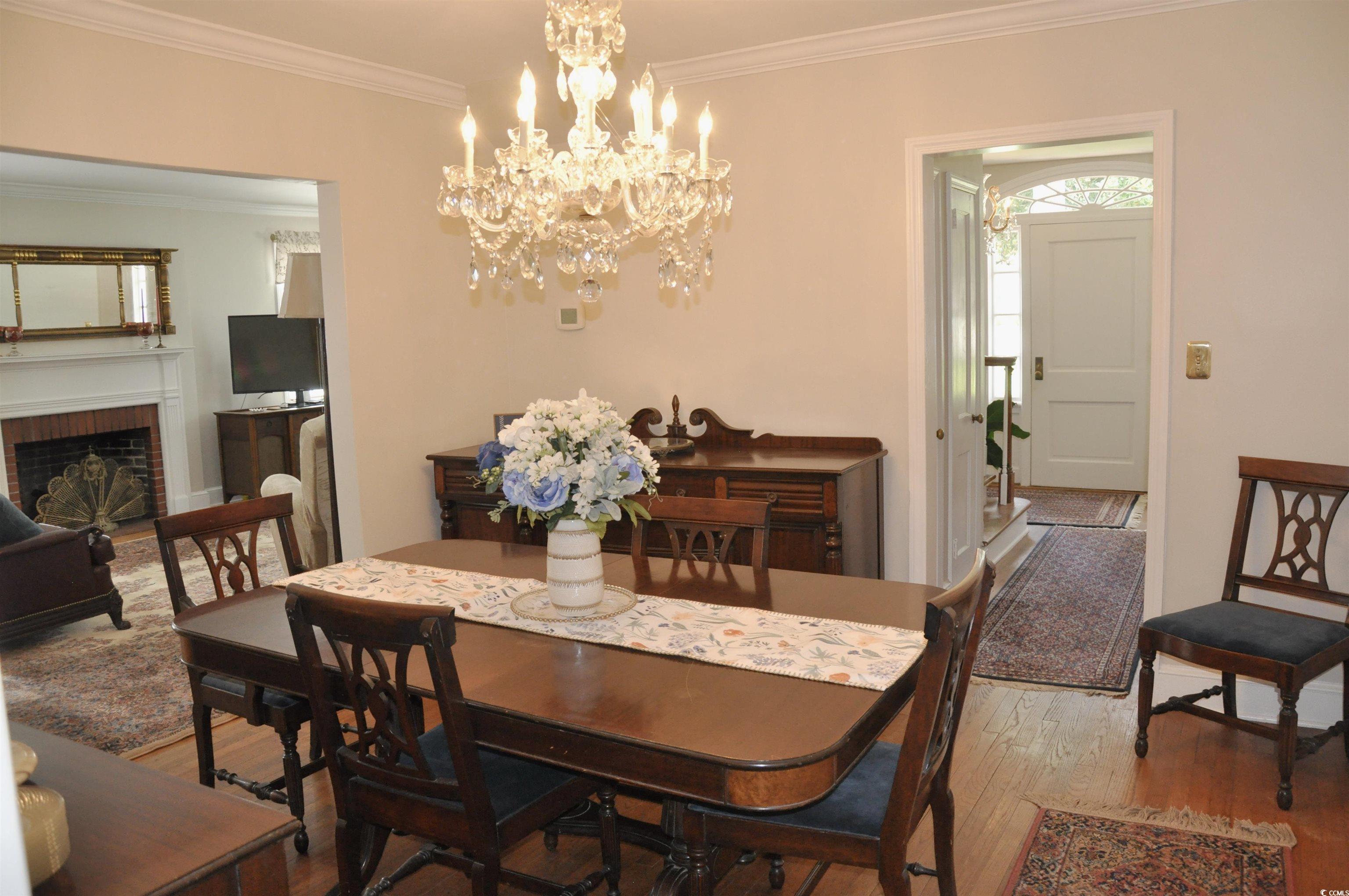 Beautiful and very well maintained Southern Georgian Colonial style home with No HOA. It is located only 30 minutes from North Myrtle Beach and Little River. This home was built with hand-picked rough cut lumber and is heavily constructed. The home captures the southern charm from the early 1950's and welcomes you as you step in the front door where you are greeted by a lovely staircase which leads to 2 oversized bedrooms and a full bathroom upstairs. The downstairs boasts of an oversized family room with a gas fireplace with an adjacent formal dining room and separate breakfast area perfect for entertaining and relaxing with family and friends. The kitchen has a Wolf gas cook top, lots of cabinet space, Quartz countertops, Marble backsplash, and a large breakfast area which could also be used as a Carolina Room. There is also a spacious laundry room and an attached 2 car garage. The Master suite and a guest bedroom are located on the 1st floor. The guest bathroom has marble flooring and a large marble stand-up shower. This home also has beautiful hardwood floors and tile throughout. The roof was replaced in 2023. The downstairs HVAC was replaced in 2023. Freshly painted interior and exterior in 2023. Situated on .68 of an acre gives lots of space for parking of boats, vehicles, etc. This home is located just a short drive from the Grand Strand beaches, Hospital (1 mile away), shopping, schools and restaurants.