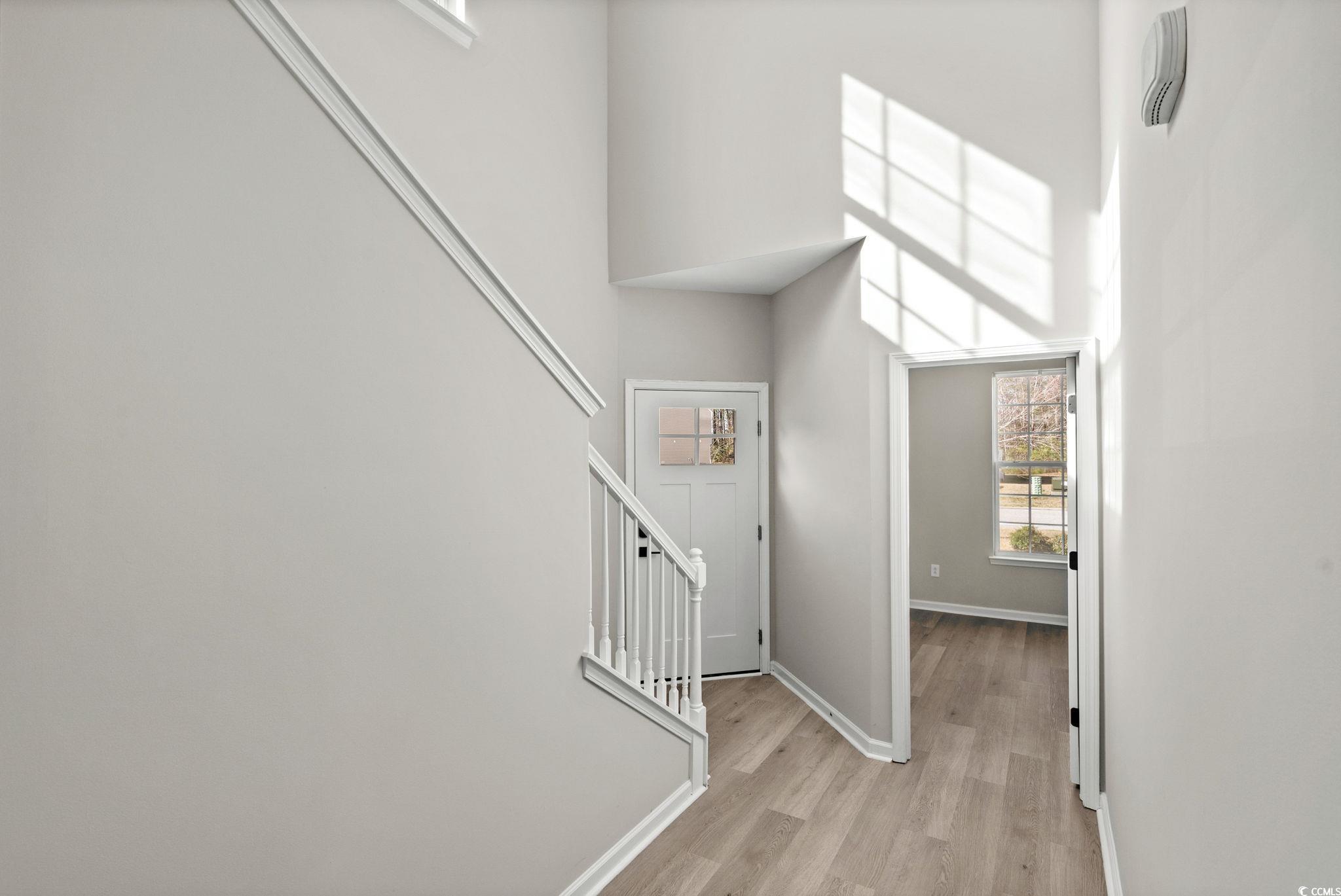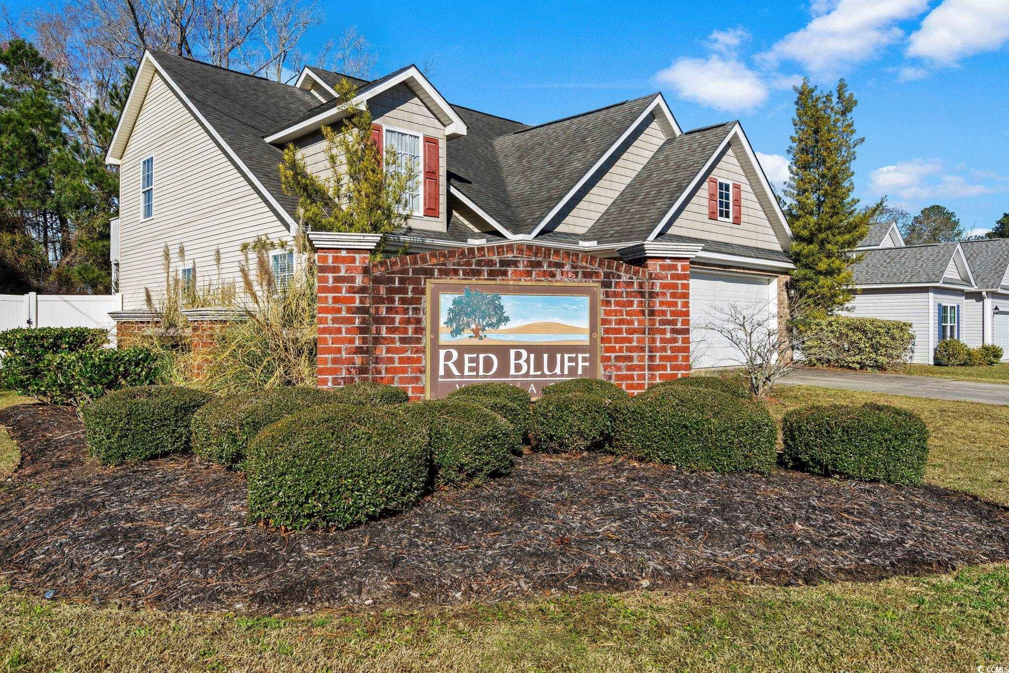 Move-in ready in Red Bluff Village 4 BR / 2.5 BA with 2,146 sq ft on a wooded, private lot. The open main level connects the kitchen, dining, and living areas; a flexible first-floor room works as office or guest space. Upstairs, the owners suite features a walk-in closet and dual-vanity bath; three additional bedrooms share a full bath. Unwind on the screened porch overlooking the backyard. Includes 2-car garage, low HOA, and easy access via Hwy 22 / Hwy 9 to Conway, North Myrtle Beach, and local amenities. See it today!