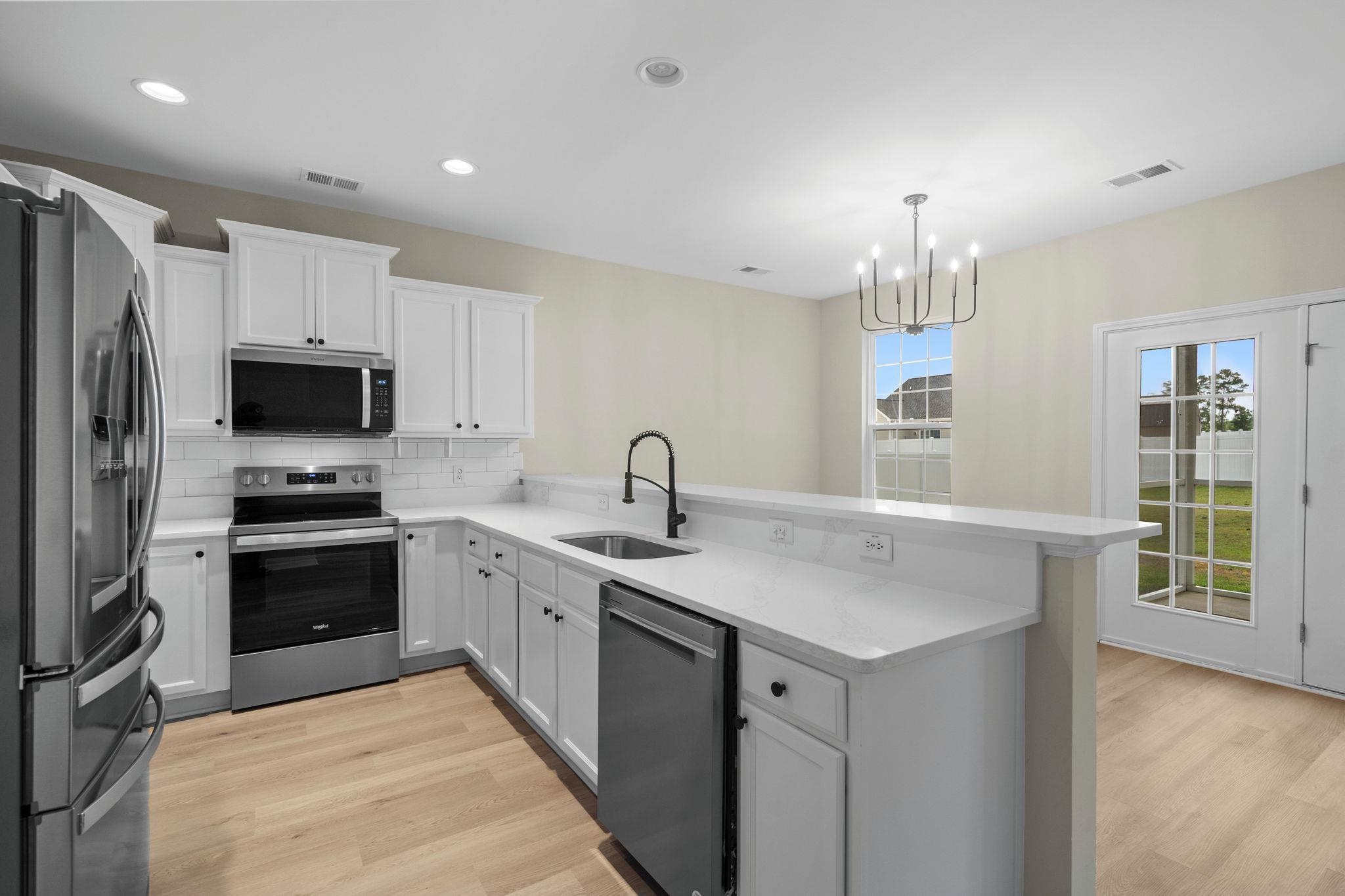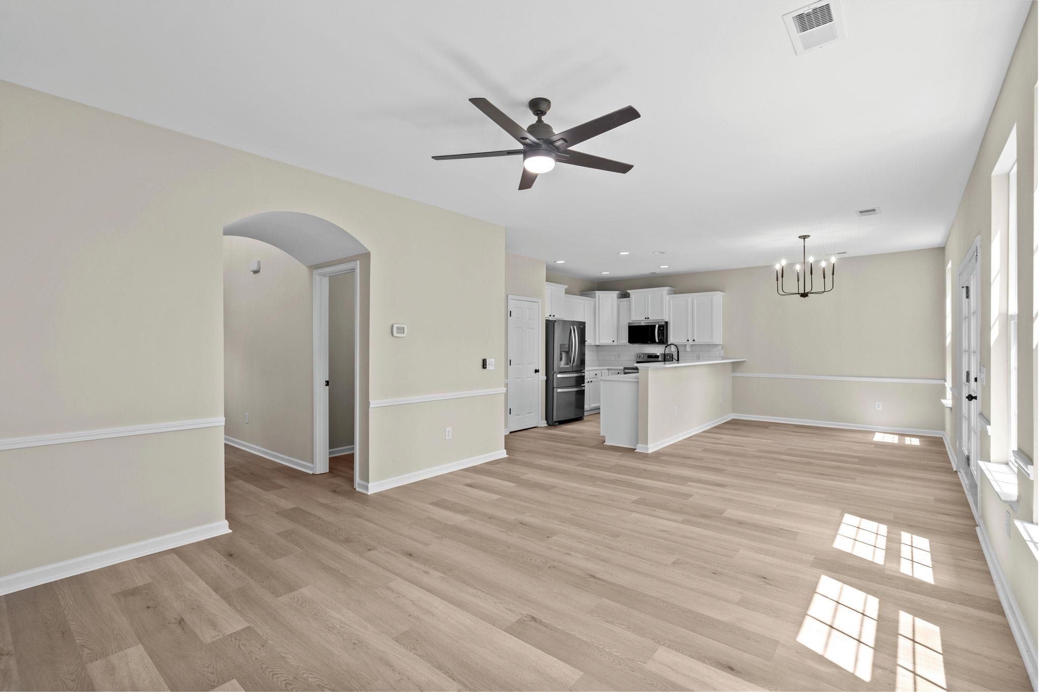 Spacious four bedroom three bath home with 2,146 heated square feet in the popular Red Bluff Village community of Loris offers the elbow room and flexible layout buyers are searching for. The first level features an inviting foyer that opens into an open concept living and dining area with ceiling fans and an easy flow into the kitchen with pantry, stainless steel appliances, and plenty of cabinet and counter space for everyday cooking and entertaining. A convenient bedroom on the main level plus multiple flex spaces including a den, Carolina room, media or game room, and utility room create options for a home office, playroom, hobby room, or guest space so everyone has a place to spread out. Upstairs the spacious bedrooms include a primary suite with walk in closet and a private bath with dual sinks, separate shower, and vanity, along with additional bedrooms and baths that make it easy to host family or guests. Exterior highlights include brick veneer accents, low maintenance vinyl siding, energy efficient windows and doors, a rear porch, screened porch, and patio that extend your living space outdoors, plus a two car garage and generous driveway with parking for multiple vehicles. The 0.23 acre rectangular lot has irrigation and sits on a city lot setting in a growing Horry County neighborhood where long term rentals are allowed and the HOA is super low. All of this is in the Loris area with convenient access to everyday shopping, dining, schools, medical care, and the Grand Strand beaches, making this move in ready Red Bluff Village home a smart choice for a primary residence or investment in Loris South Carolina real estate.