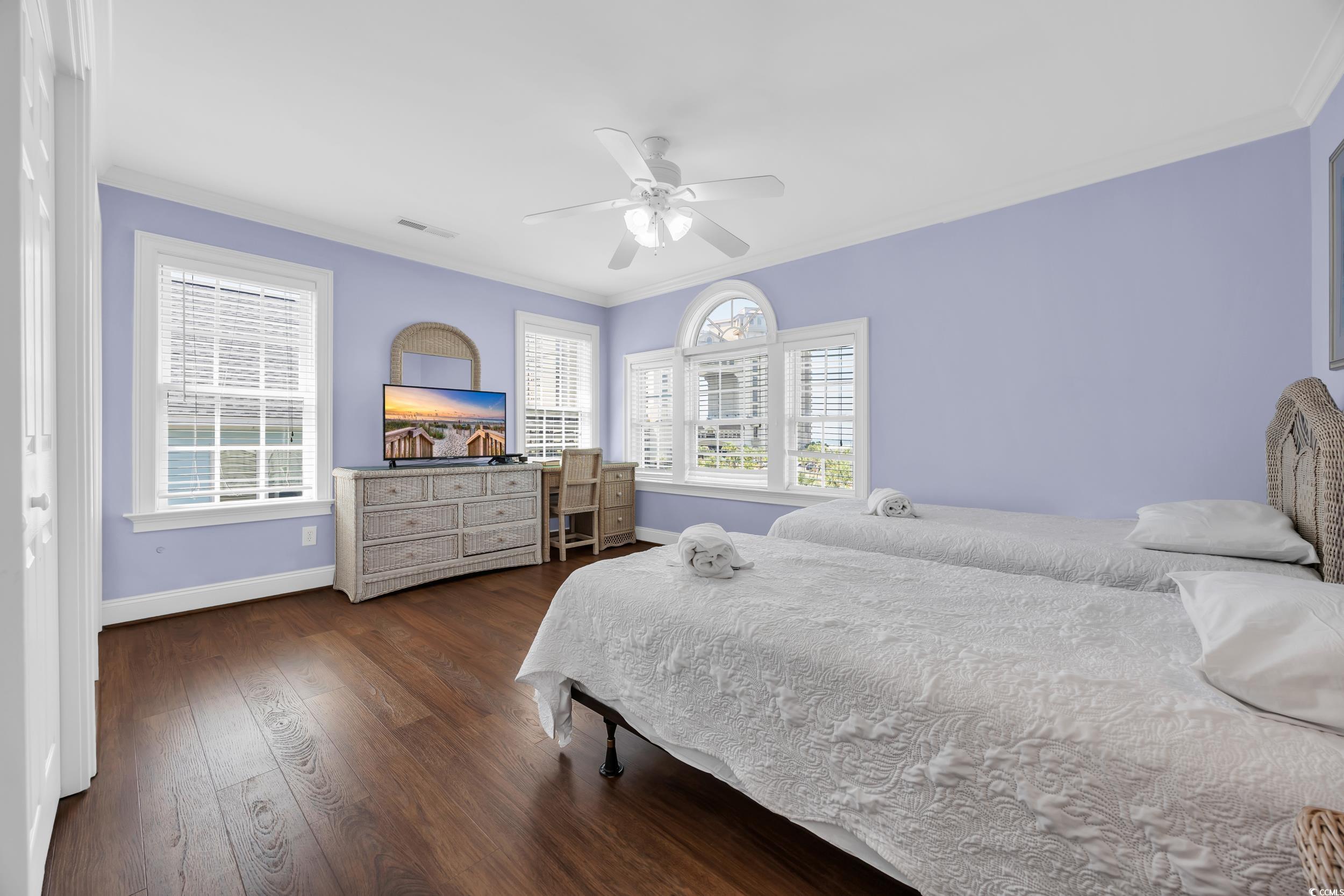 Welcome to 4725 Harmony Lane, North Myrtle Beach - a spacious 4BR/4.5BA raised beach home located in the desirable Windy Hill section, just steps from the sand and directly across the street from North Beach Plantation! Enjoy peek-a-boo ocean views and cool coastal breezes from this well-appointed property, perfect as a full-time residence, vacation getaway, or income-producing rental. This bright and inviting home features an open-concept living space with cathedral ceilings and an abundance of natural light. The spacious living room includes a cozy sitting area and a wet bar, ideal for entertaining. The large dining area flows seamlessly into a fully equipped kitchen, perfect for preparing meals or enjoying catered options from local eateries. The primary suite is conveniently located on the main level, complete with a king bed, sitting area with sleeper sofa, a generous bathroom, and a jacuzzi tub. Upstairs, you'll find three additional bedrooms: two with queen beds (one with its own private balcony) and one with two twin bedseach with its own private bathroom. A half bath is also located on the main floor for guests. This home offers flat-screen TVs in every bedroom, ceiling fans throughout, and beautiful ocean-facing windows that enhance the relaxed beach lifestyle. Outside, enjoy the raised beach-style construction, with space underneath for parking or potential outdoor living. Located just minutes from Barefoot Landing, The House of Blues, Alabama Theatre, Alligator Adventure, Duplin Winery, and a wide variety of restaurants, shopping, and entertainment. This home also offers easy access to golf cart rentals, beach access, and other coastal conveniences. Don't miss the opportunity to own this exceptional beach retreat in one of North Myrtle Beachs most sought-after communities!