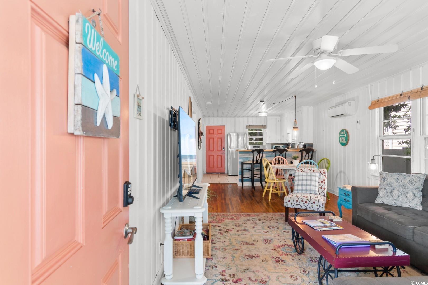 Welcome home to this charming 2nd-row duplex at 2012 Perrin Dr that offers the perfect blend of timeless character and modern updates in the heart of family-friendly Crescent Beach. NOT IN A FLOOD ZONE! Each level of this two-story home features 2 bedrooms and 1 full bath, making it ideal for rental income, a second home, or multigenerational living. Inside, you'll find original knotty pine walls, ceilings, and kitchen cabinets that reflect the craftsmanship of a bygone era, complemented by beautifully refinished hardwood floors throughout. Both bathrooms have been fully updated with brand-new tiled showers and stylish vanities, and each unit now features brand-new washer and dryer hook-ups with brand-new appliances included. The kitchens have also been refreshed, downstairs includes a new stainless steel refrigerator and gas stove, while the upstairs unit features a new white refrigerator and electric stove. Each unit has its own enclosed newly painting deck with classic rocking chairs, offering the perfect spot to unwind and enjoy the ocean breeze. Outside, a ground-level deck with an outdoor kitchen and ample built-in storage creates a fantastic entertaining space, and the oversized double lot provides parking for 6 or more vehicles. Mature live oak trees and flowering shrubs create a private and peaceful retreat. With no HOA, a location outside of the flood zone, and thoughtful upgrades throughout---including a new roof in 2017 and a Ring security system---this property offers the rare combination of beachside living and practical peace of mind. Just a short stroll from the ocean and minutes to golf, dining, shopping, and entertainment, this home captures the best of North Myrtle Beach coastal living.