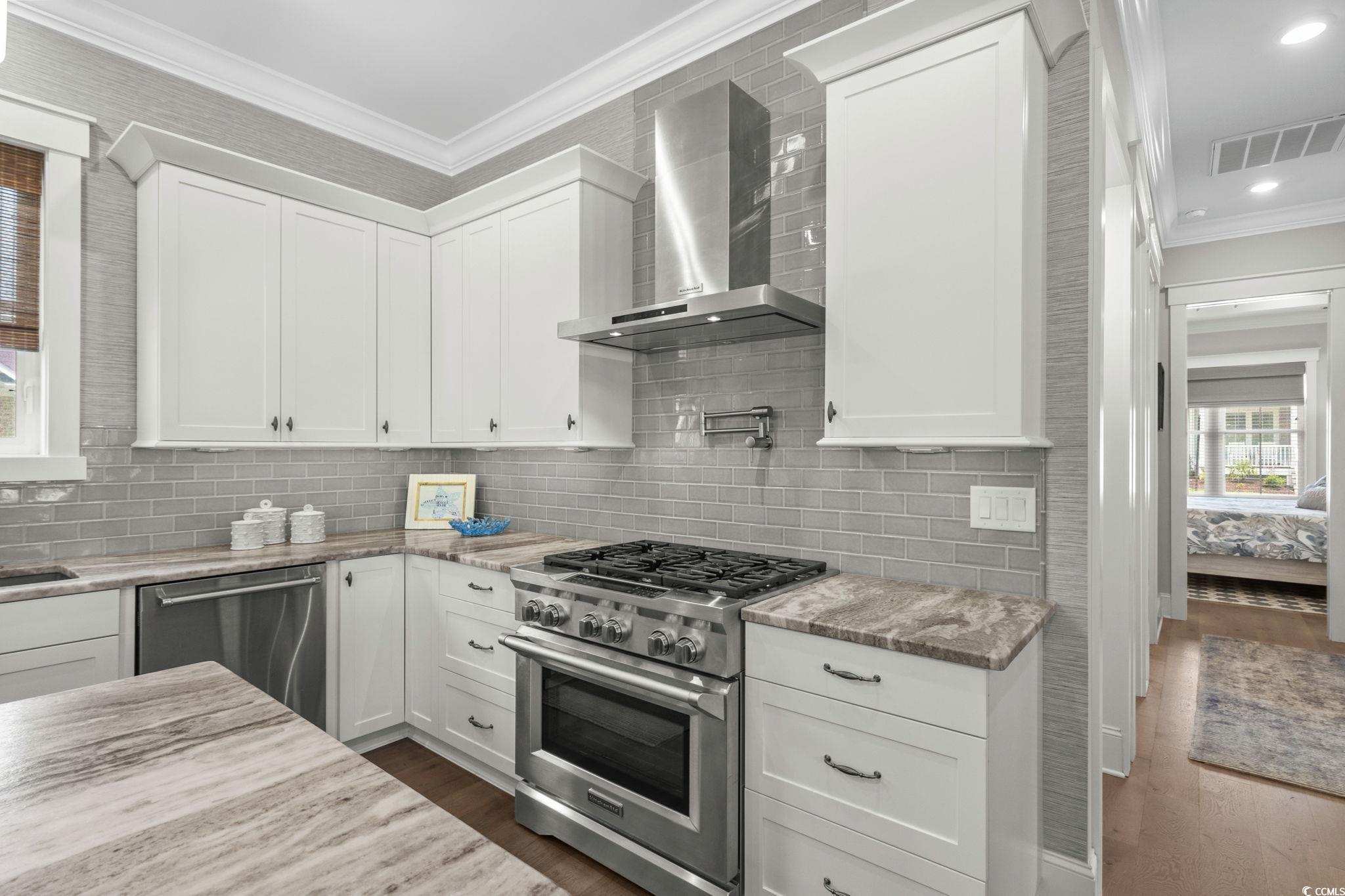 Your dream home in Living Dunes is back on the market due to no fault on the sellers part. A must see in this prestigious Grande Dunes community located just half a mile from the ocean! This stunning pond view Beaufort plan, built by CRG Homes, has been very gently used as a second home and offers top-tier construction and thoughtful design throughout. The spacious layout features the primary suite along with a den, laundry and powder on the main floor and two additional bedrooms, full bath and a book nook upstairs, ideal for privacy and functionality. This plan is a favorite for those that need storage options! Built with premium structural upgrades, this home includes a two-car garage, full brick exterior, and a paver patio with a walkway leading to a pond-facing covered front porcha perfect place to unwind while enjoying the sound of fountains and views of local wildlife. 50 year roofing shingles, tankless hot water heater, impact windows and spray foam insulation add to the high standards, beauty and comfort of this well built home! Step inside to an open-concept layout centered around a cozy natural gas fireplace, surrounded by a chefs kitchen boasting leathered quartzite countertops, Upgraded KitchenAid stainless steel appliances, a cabinet-wrapped island, and a designer trim and lighting package. Additional upgrades include hardwood flooring, custom built-ins, wood closet shelving, designer wallpaper, and a beautiful ceiling treatment in the dining room. The all-tile showers in both the primary and guest baths complete the luxurious feel. Living Dunes is a Natural Gas community with a gorgeous pool and clubhouse on site, miles of walking trails and sidewalks, putting green and plentiful large ponds, fountains and park spaces. Residents also enjoy access to the Grande Dunes Ocean Club, a year round premier oceanfront beach club offering direct beach access, entertainment, fine dining, large pool with outdoor grill and bar, kiddie pool, hot tub and clubhouse. This is more than a home its a lifestyle. Schedule your private tour today and experience coastal living at its finest! All measurements and square footage are approximate and not guaranteed. The buyer is responsible for verification.
