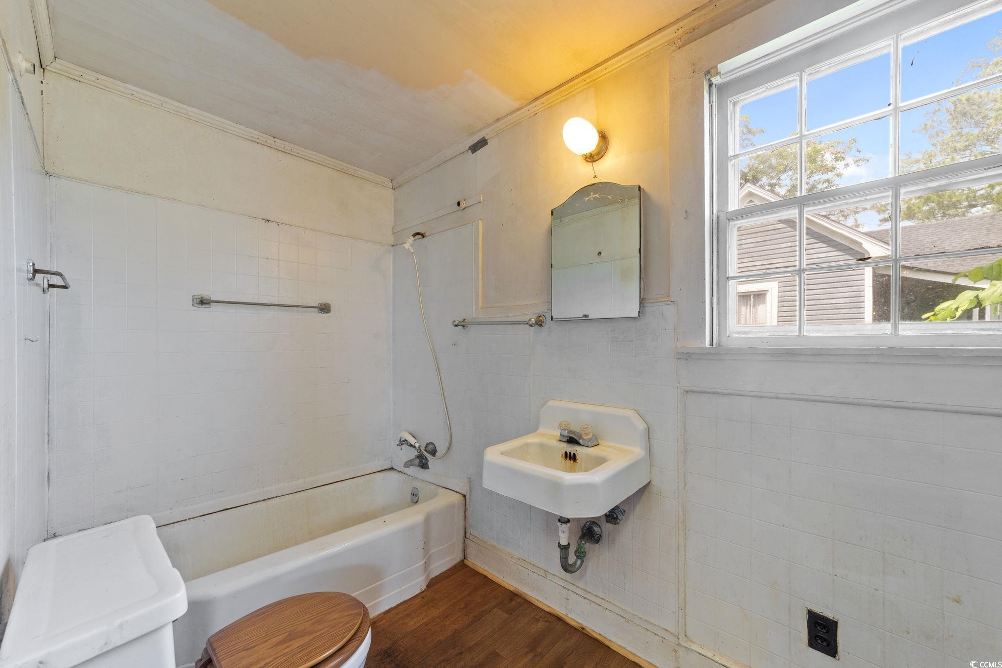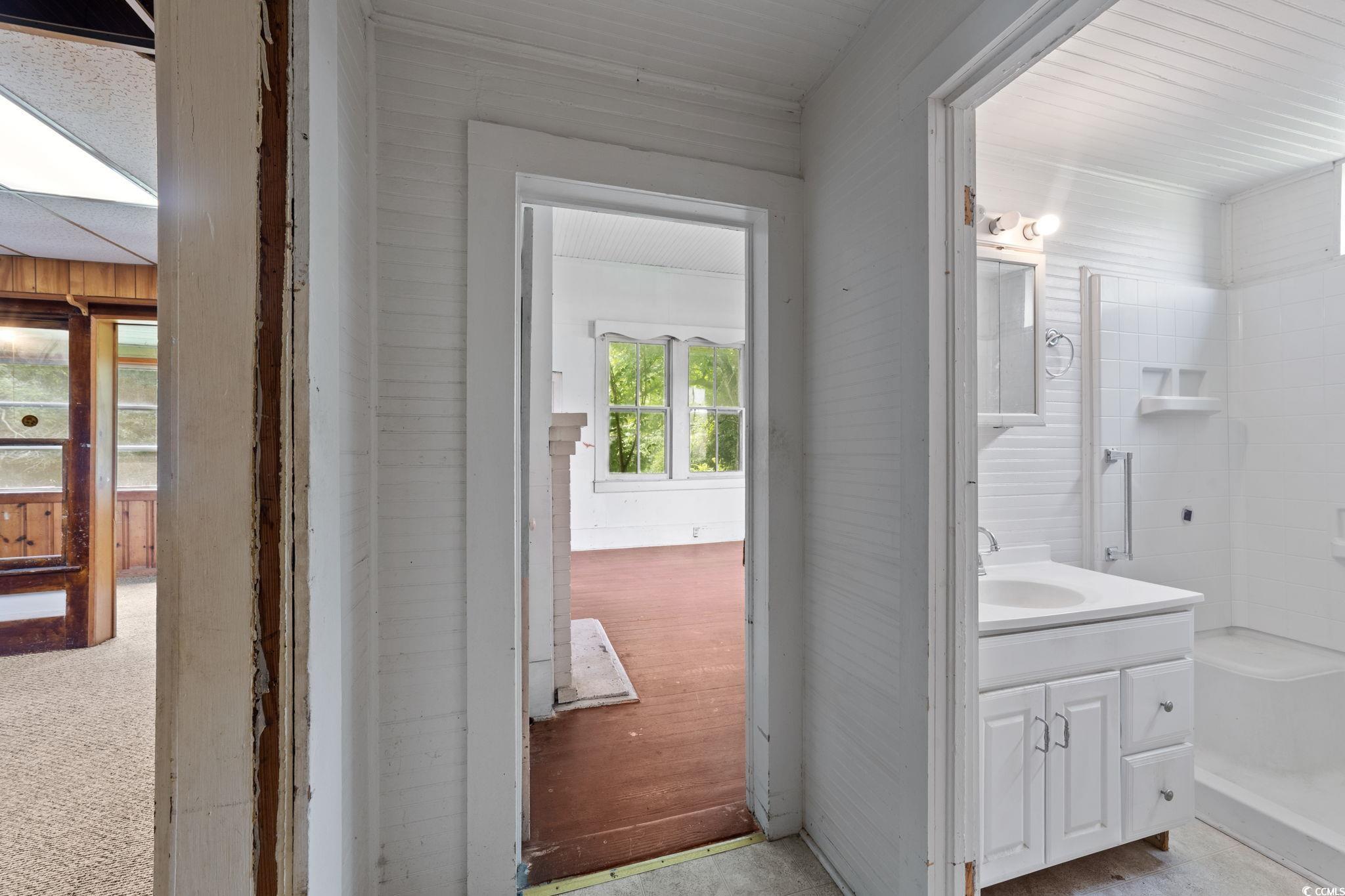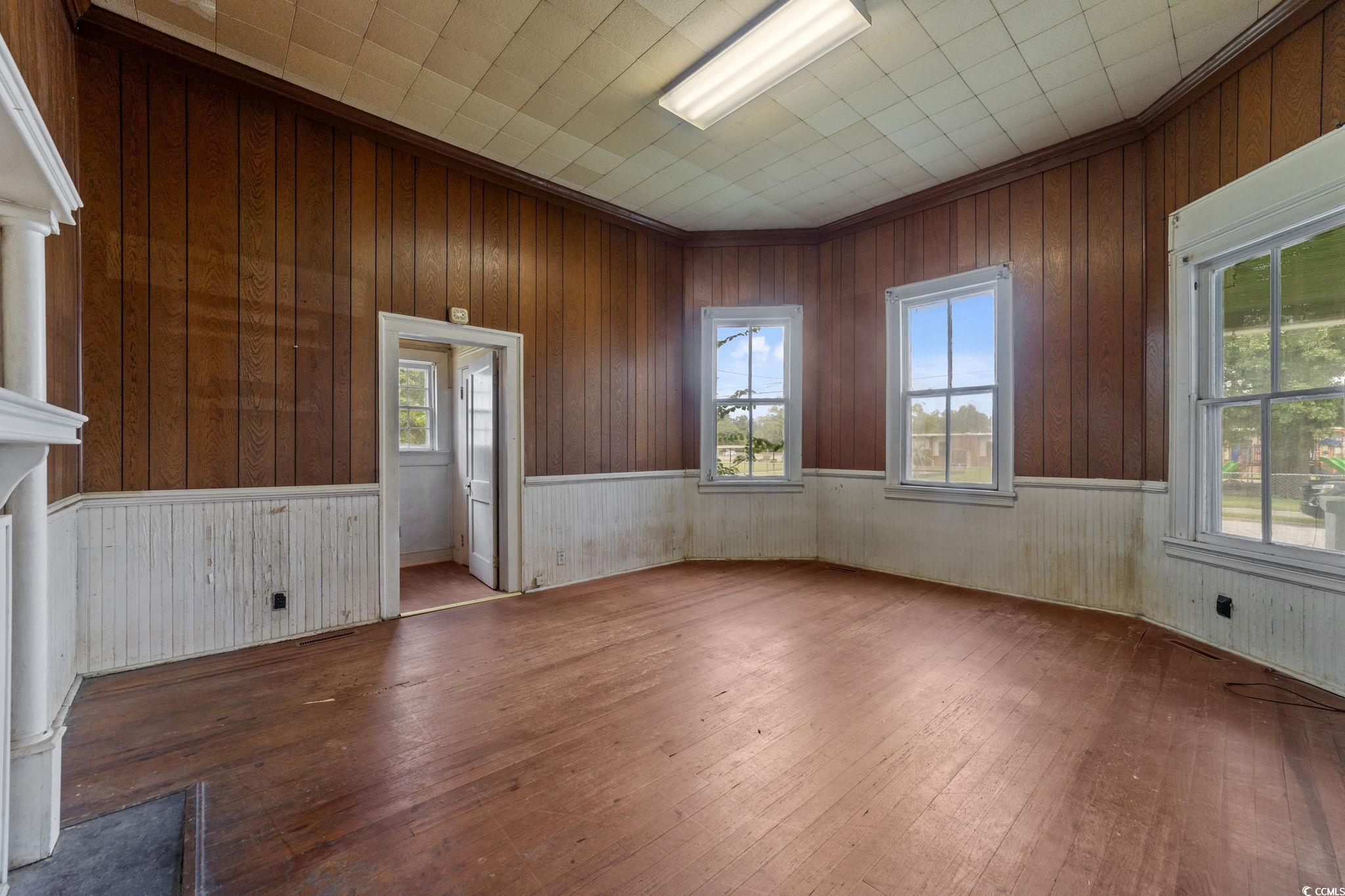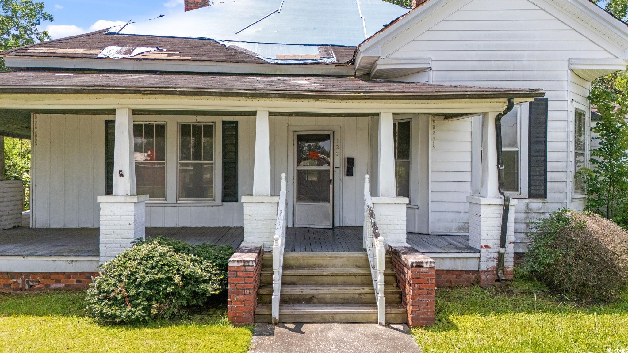 Price Improved Investor opportunity in the heart of Mullins! Built in 1957, this one-story home offers classic Southern architecture with a touch of Victorian charm, featuring a partial wraparound front porch and soaring 10'+ ceilings throughout. With over 2,000 square feet of living space and a layout reminiscent of mid-century ""shotgun"" homeswith bedrooms aligned on one sideit provides a flexible floor plan ideal for renovation or reimagining. The home sits on a spacious lot with mature trees, and its classic wood siding and original millwork give it historic appeal. Inside, you'll find oversized rooms, vintage mantels, and original hardwood floors, just waiting to be restored. A large sunroom and formal living spaces offer plenty of natural light. The kitchen, with its vintage cabinetry, is ready for a complete update to fit your personal vision. This property needs a full renovation, including roof, mechanicals, and cosmetic updates. However, the solid structure and unique architectural details make it a perfect candidate for restoration or investment. Ideal for flippers, DIY buyers, or those looking to create income-generating rental property in a quiet small-town setting. Located just an hour from Myrtle Beach and close to shops, parks, and downtown Mullins, this home blends opportunity with location. Cash or renovation loan preferred. Being sold as-is. Don't miss the chance to transform this diamond in the rough into something truly special.