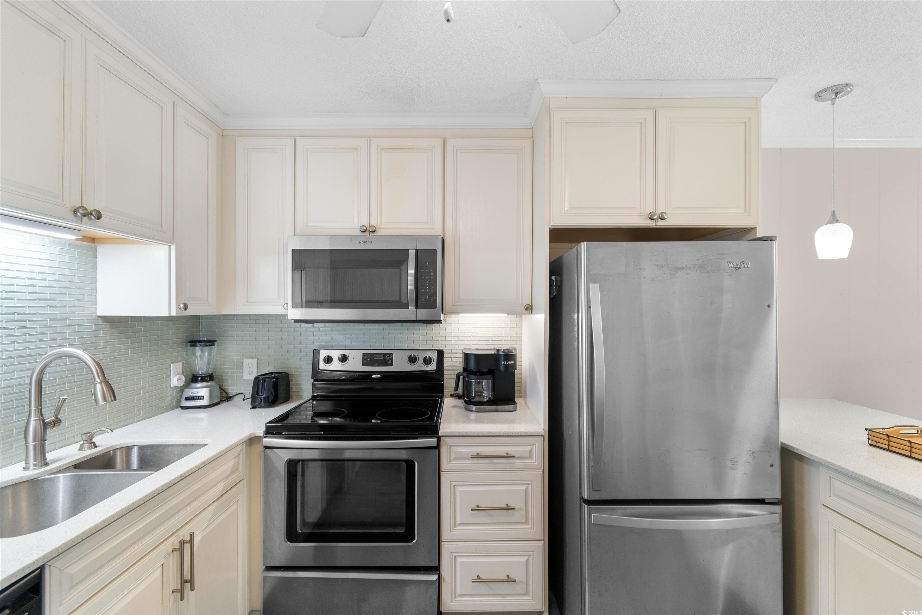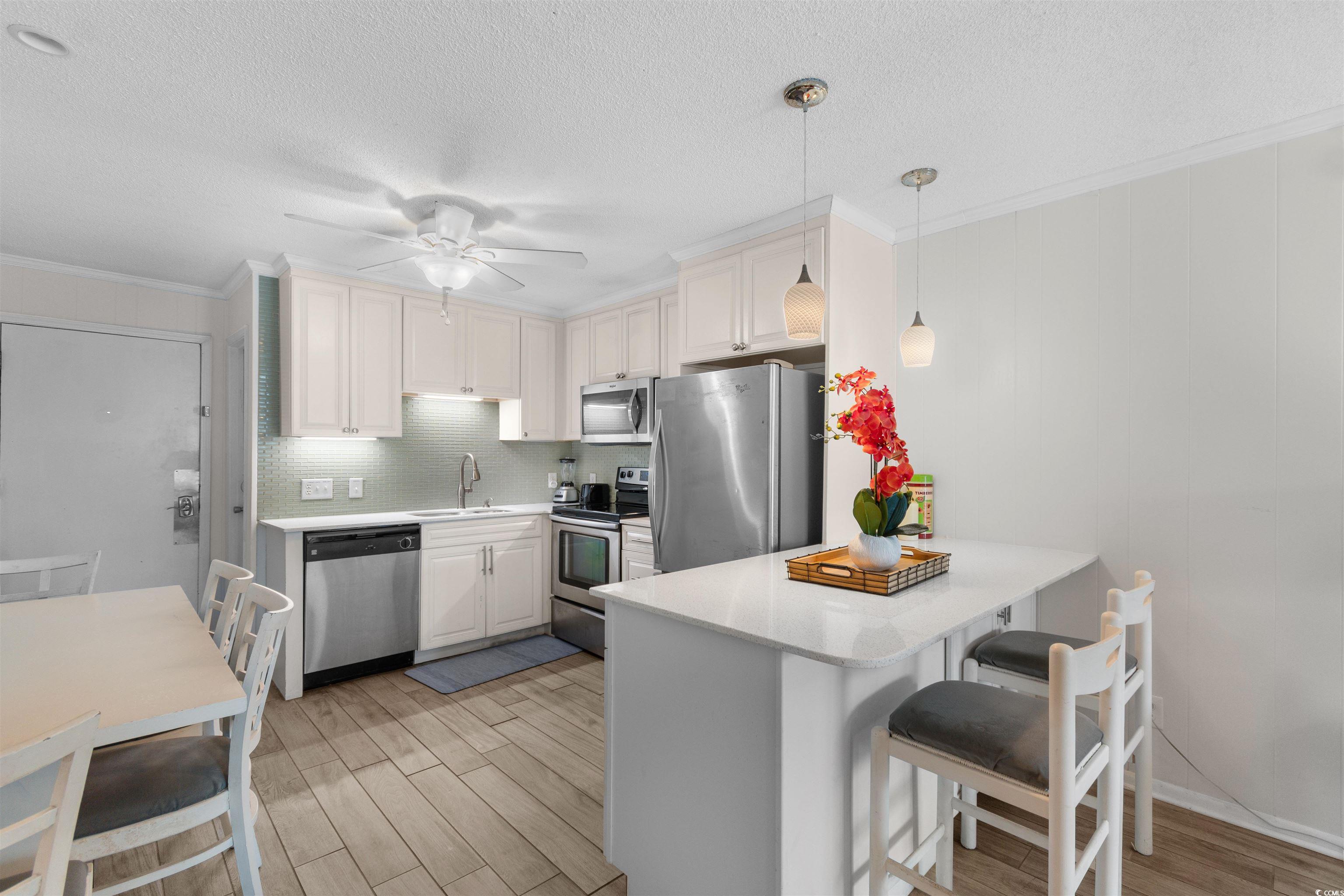 Discover coastal living at its finest in this beautifully updated 2-bedroom, 2-bathroom condo at A Place at the Beach III in Myrtle Beach, SC. Boasting ocean views from the private balcony, this residence offers a serene retreat with modern comforts. Step inside to find a thoughtfully designed interior featuring coastal-inspired decor throughout. The open-concept living area is bathed in natural light, with large windows. The living room provides comfortable seating and direct access to the private balcony, perfect for enjoying the ocean breeze and picturesque sunsets. The updated kitchen is a chef's delight, equipped with stainless steel appliances, a sleek glass-tiled backsplash, and ample cabinetry for all your storage needs. Adjacent to the kitchen is a dedicated dining area, ideal for enjoying meals with family and friends. The master bedroom serves as a peaceful retreat, featuring its own private balcony access, allowing you to wake up to the sound of the waves. The en suite bathroom is complete with a walk-in shower, providing a spa-like experience. The second bedroom is generously sized, offering plenty of room for family or visiting friends, with easy access to the second full bathroom. A Place at the Beach III offers a range of amenities to enhance your coastal living experience. Enjoy the outdoor pool on warm days, or gather with friends and family at the picnic and grilling area for a casual meal. The complex is also conveniently located near championship golf courses, fine dining restaurants, and boutique shops, providing endless entertainment options. Situated along Shore Drive, this condo places you in the heart of Myrtle Beach, close to popular attractions such as Ocean Annie's Beach Bar and Barefoot Landing. Whether you're seeking relaxation on the beach or adventure in the city, this location offers the best of both worlds. Don't miss the opportunity to own this stunning oceanfront condo at A Place at the Beach III. With its updated interiors, prime location, and resort-style amenities, it's the perfect place to call home or enjoy as a vacation retreat. Schedule a showing today and start living the coastal lifestyle you've always dreamed of!
