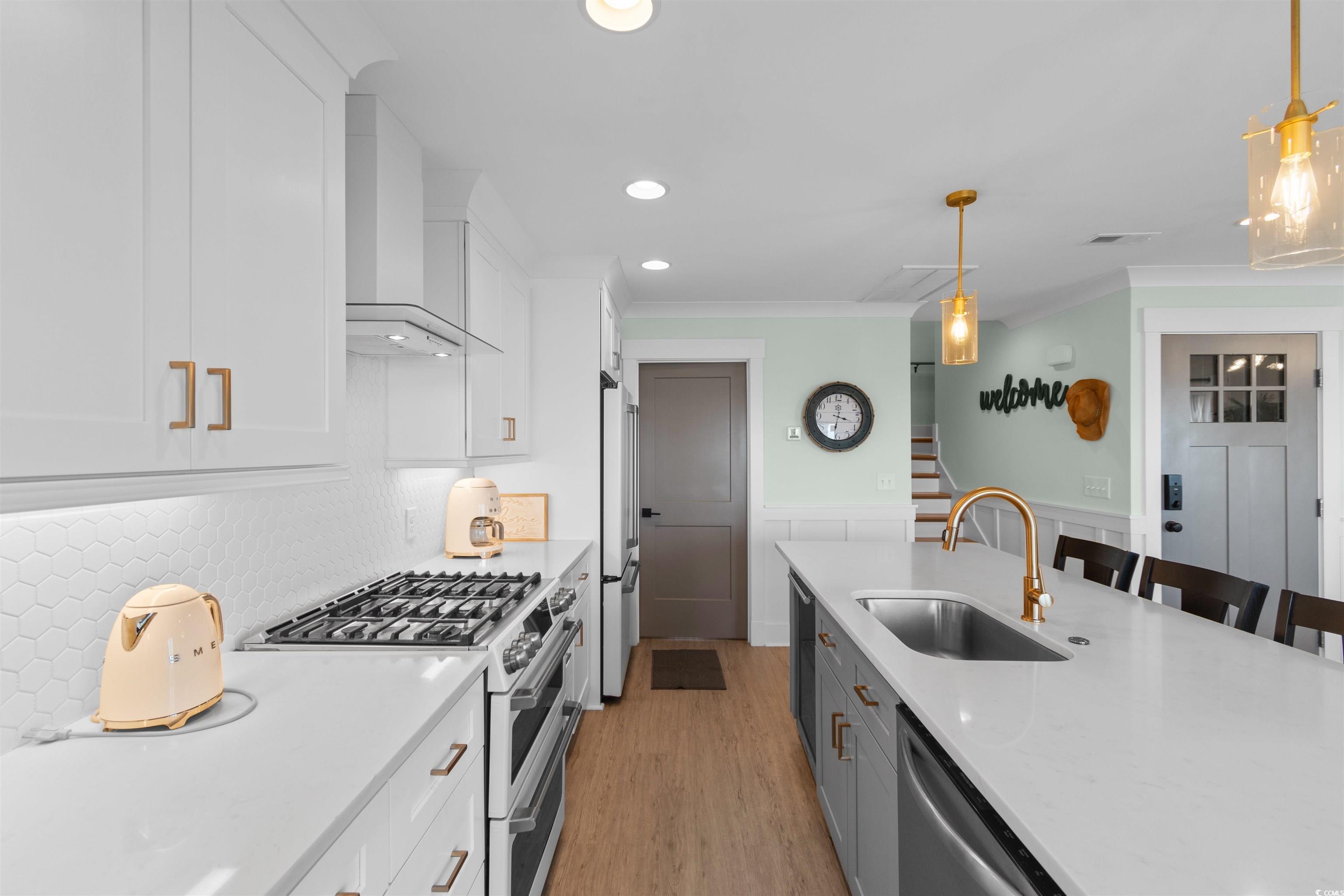 Nestled along the coveted South Waccamaw Drive in Garden City Beach, this stunning three-story oceanfront home offers an unparalleled beach experience. Currently used only as a second home, this property is a rarity in mint condition. Boasting six spacious, well-appointed bedrooms and five and a half luxurious bathrooms. With the extensive renovations completed just a few years ago, there are high-end, sleek modern finishes that enhance both comfort and elegance. Luxury vinyl tile flooring flows seamlessly throughout the open-concept floor plan. The gourmet kitchen is a culinary dream, equipped with a gas stove, double ovens, a wine cooler, quartz countertops, and a spacious breakfast bar, perfect for preparing meals and entertaining guests. The adjacent butler's pantry provides additional storage and convenience. Beautiful quartz vanities and custom tile showers elevate the bathrooms, ensuring that every corner of this home exudes sophistication. In addition to endless ocean views from most rooms of this home, there are both inlet and beach views to take in. The covered oceanfront porch is the perfect spot where mornings can be spent sipping coffee while the sun rises over the Atlantic. The property offers a private beach access walkway, allowing you to enjoy the sandy shores with ease. The exterior of the home has concrete fiber lap and shake siding, complemented with Bahama shutters that provide both low-maintenance finishes and aesthetic charm. This turnkey property is being sold fully furnished, allowing you to step right into immediate enjoyment without the stress or additional cost of furnishing it yourself or addressing deferred maintenance that most beach home rentals require. The covered ground-level beachside patio is an ideal spot to unwind while listening to the gentle waves. Ample covered parking and an enclosed exterior storage room provide additional convenience. Outside, there are newly landscaped beds adorned with colorful perennial flowers, enhancing the coastal charm of the property. With strong rental potential, this house presents a fantastic opportunity for those seeking an income-producing investment. Don't miss your chance to own this slice of paradise on South Waccamaw Drive, whether you are looking for a primary residence, second home, or vacation rental investment, this is it!