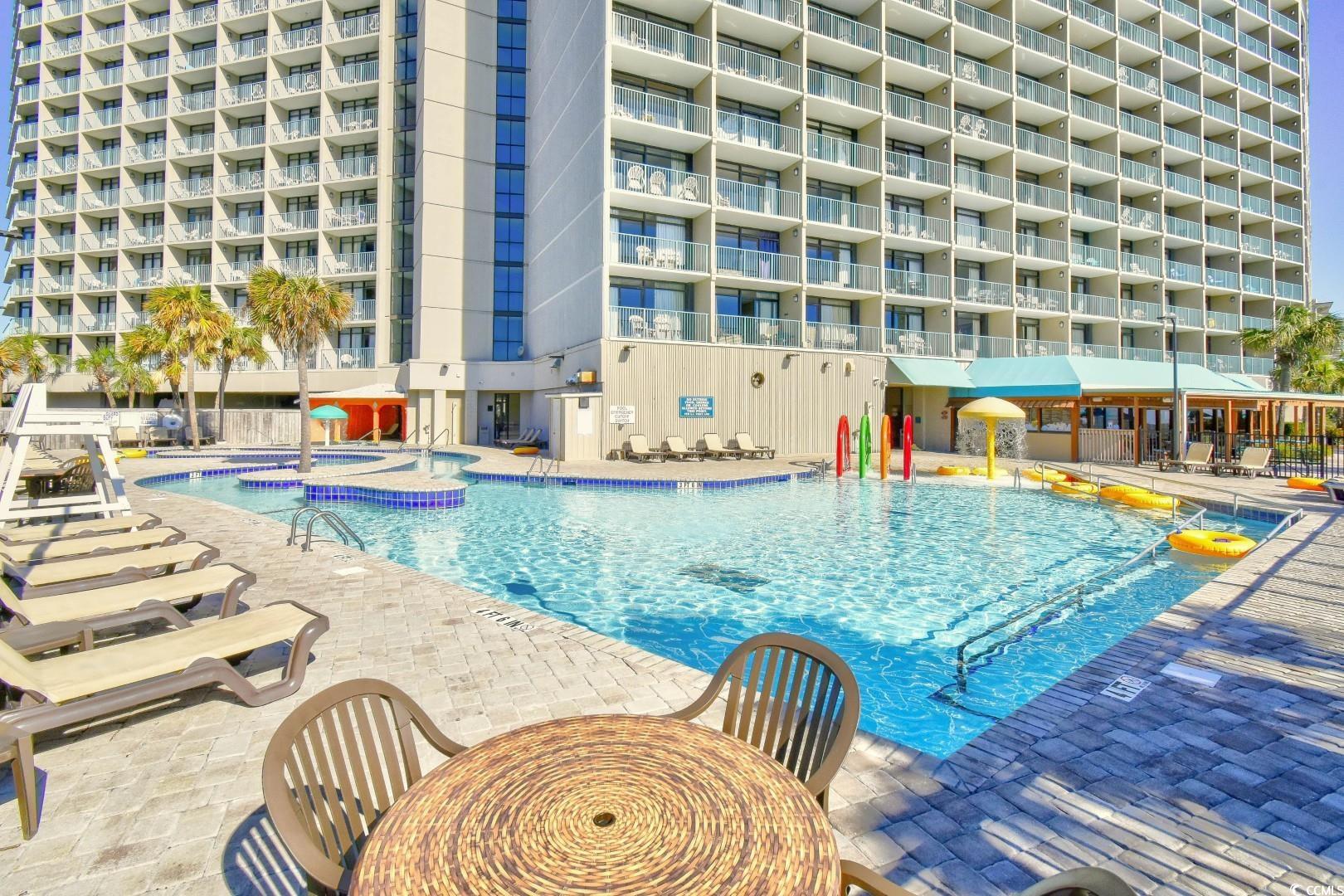 Welcome to your oceanfront escape at the popular Sand Dunes Resort! This beautifully furnished efficiency unit offers the perfect blend of comfort and style, featuring sleek tile flooring throughout, granite countertops, stainless steel appliances, and a fully tiled walk-in shower with a rain shower head. The spacious balcony is ideal for sipping your morning coffee or winding down with evening ocean views that stretch for miles. Enjoy a full array of resort-style amenities including indoor and outdoor pools, a lazy river, hot tub, fitness center, food court, onsite restaurant/bar, and even a gift shop. Whether you're looking for a profitable investment or a personal beach getaway, this turn-key condo delivers. Plus, you're just steps away from shopping, restaurants, and everything the Grand Strand has to offer. Don't miss this opportunity to own your own piece of paradise!