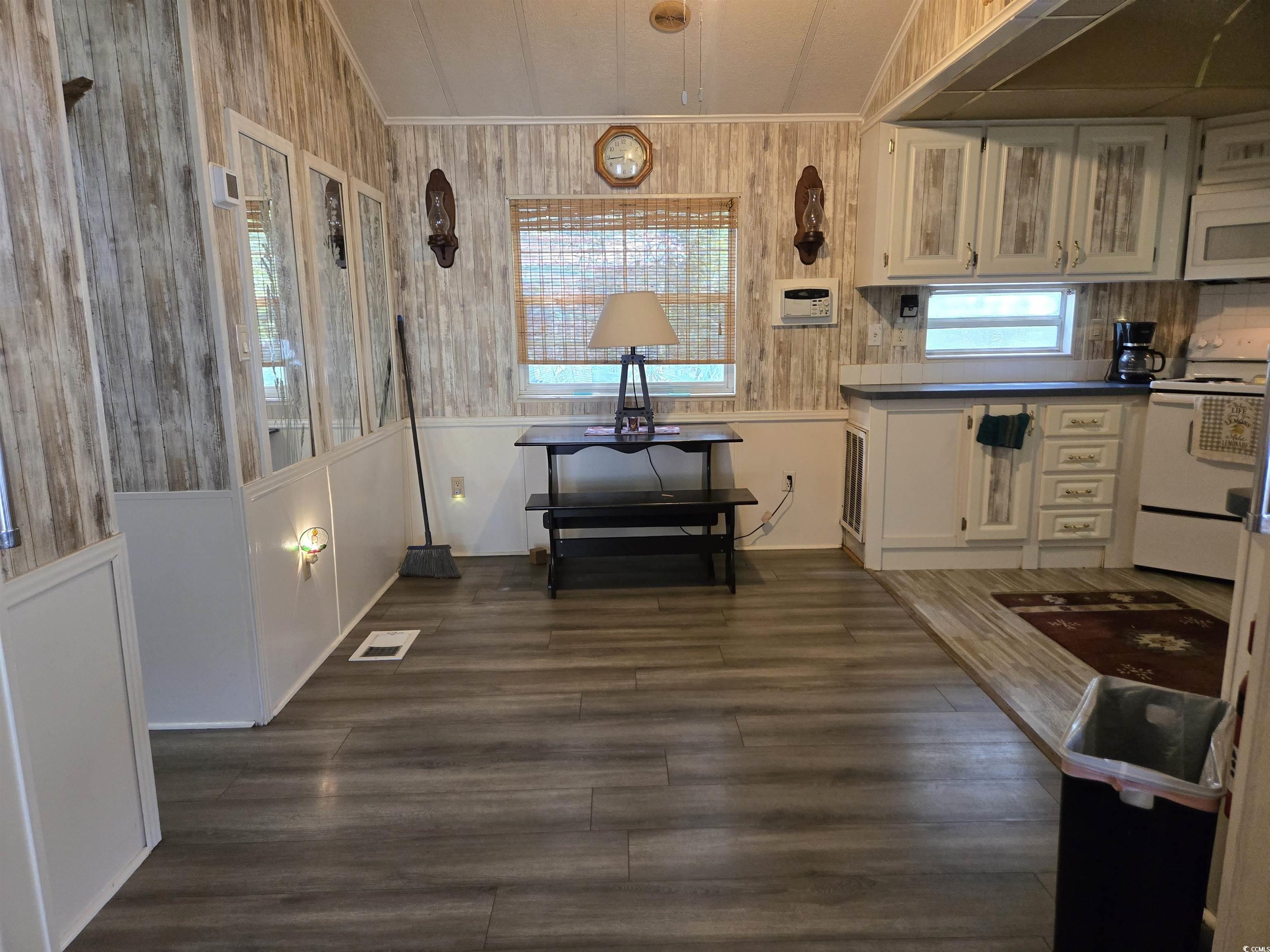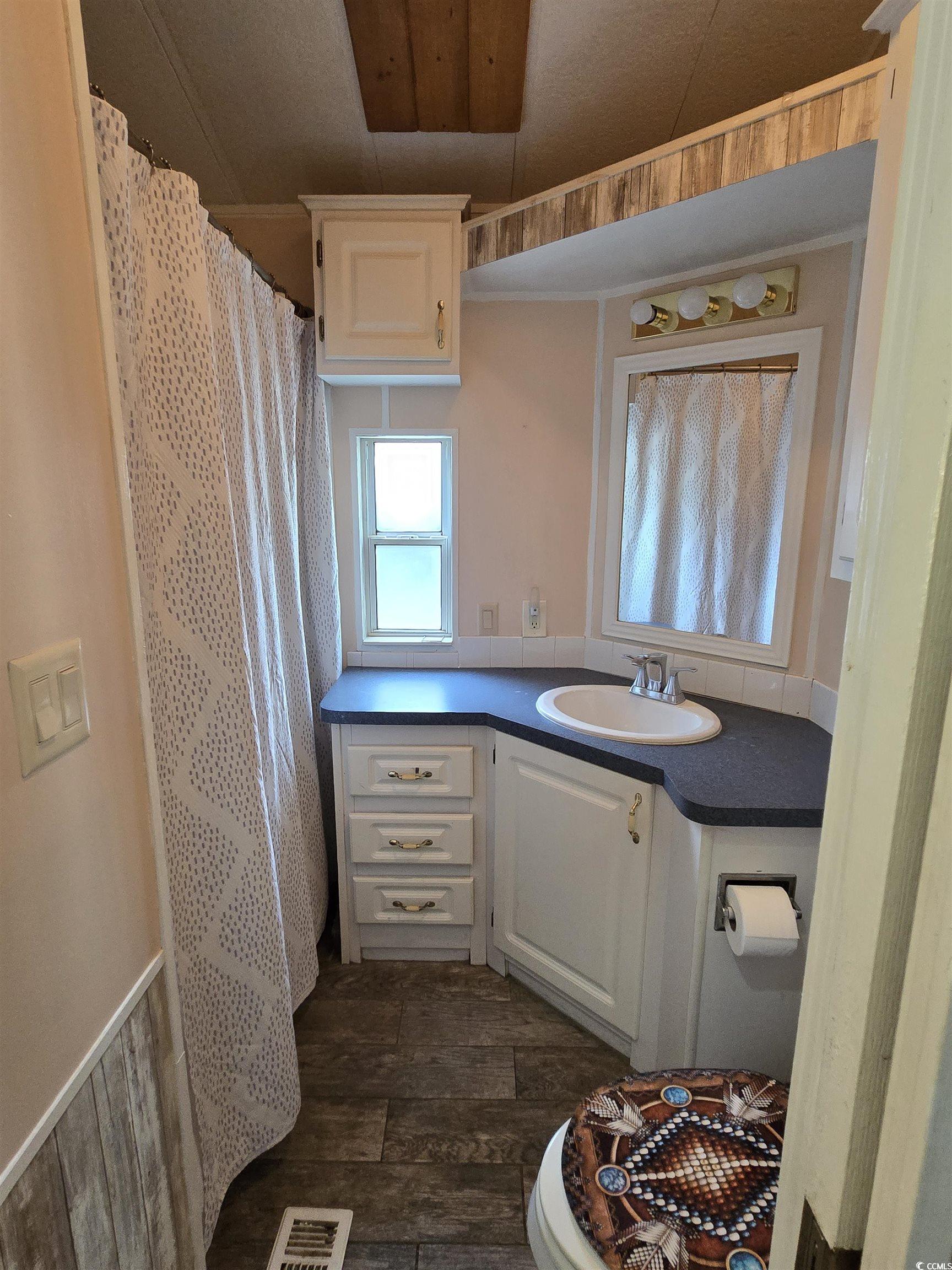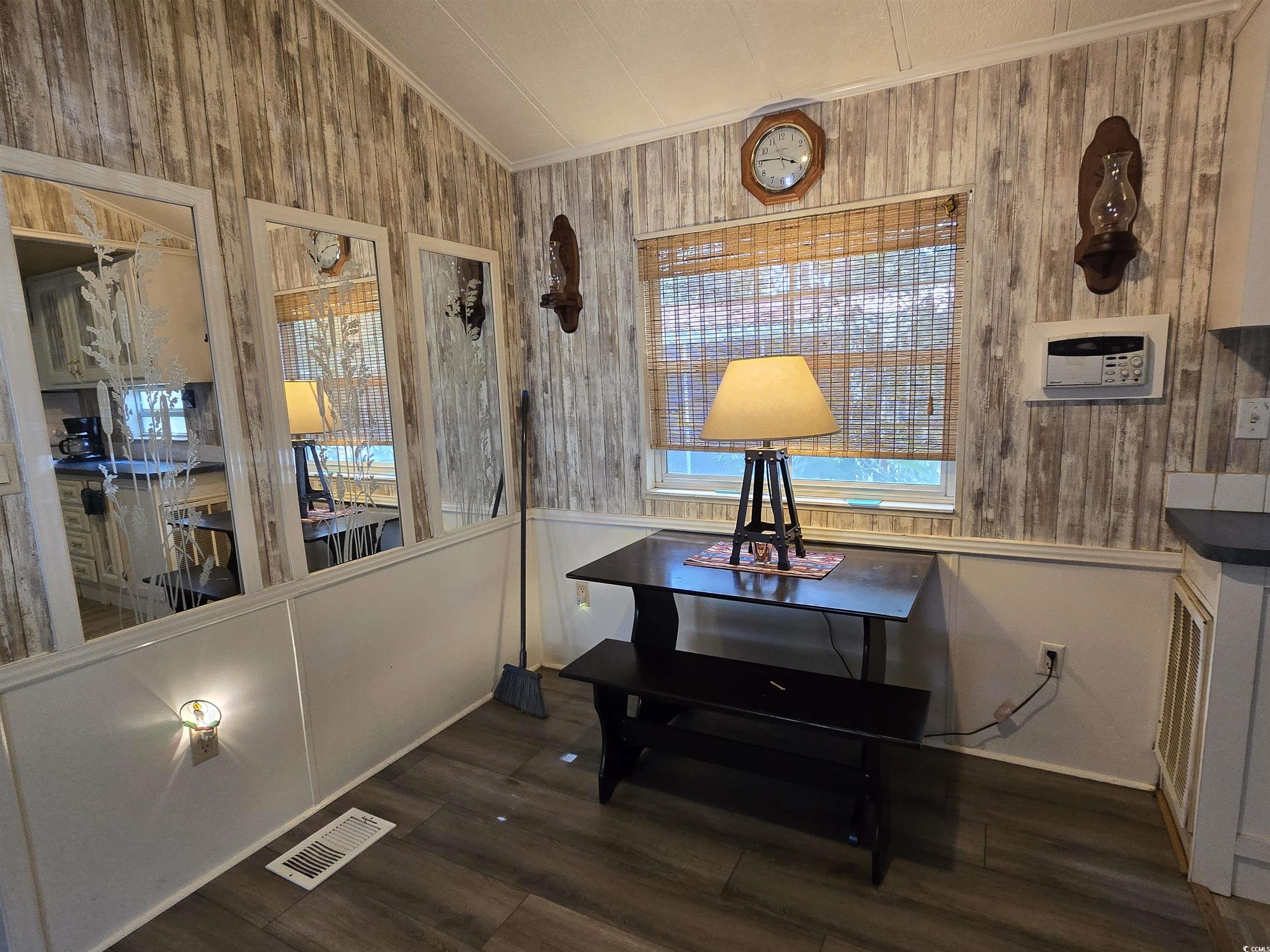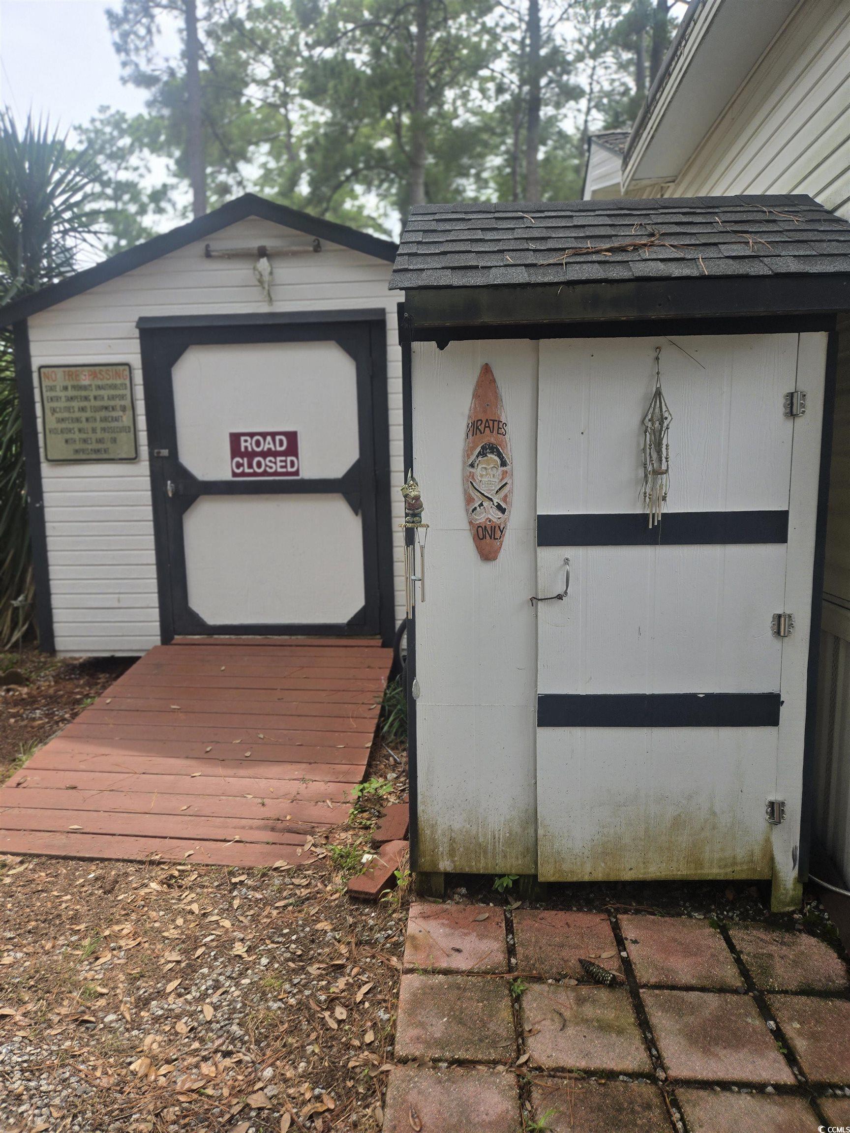 MOTIVATED SELLER!! If youre looking for a vacation home or retirement home, this is the perfect one and just a half mile from the beach. You can walk to the Garden City Pier/Beach. You can enjoy peaceful Creekside living in this cozy 2 Bedroom 1 bath beach cottage. Master bedroom has a large closet and built in drawers. The second bedroom has its own private entrance and has been recently freshly primed and ready for new owners to put their own finishing color. The washer dryer hookups are also in this room inside the closet. There is an option for additional living space in the unfinished closed in porch that would be perfect for an office or a workout/exercise room. Installed recently are the new heat run covers, ceiling fan in the living room & the bathroom faucet. The furnace/ac unit is less than 6 yrs old and was serviced back in March along with a new programmable thermostat. The kitchen is adorable and has a unique ceiling. This home is situated on the canal nestled under the oaks and has a large, detached shed for all your beach gear, accessories and storage items. It also has an outdoor shower for washing off after the beach. You are just three blocks on a golf cart or bike to the Beach. Waterford Oaks features a community fishing pier, a gazebo, picnic table and a boat ramp. Move in special going on now. Lease may be able to be paid monthly for the 1st year!