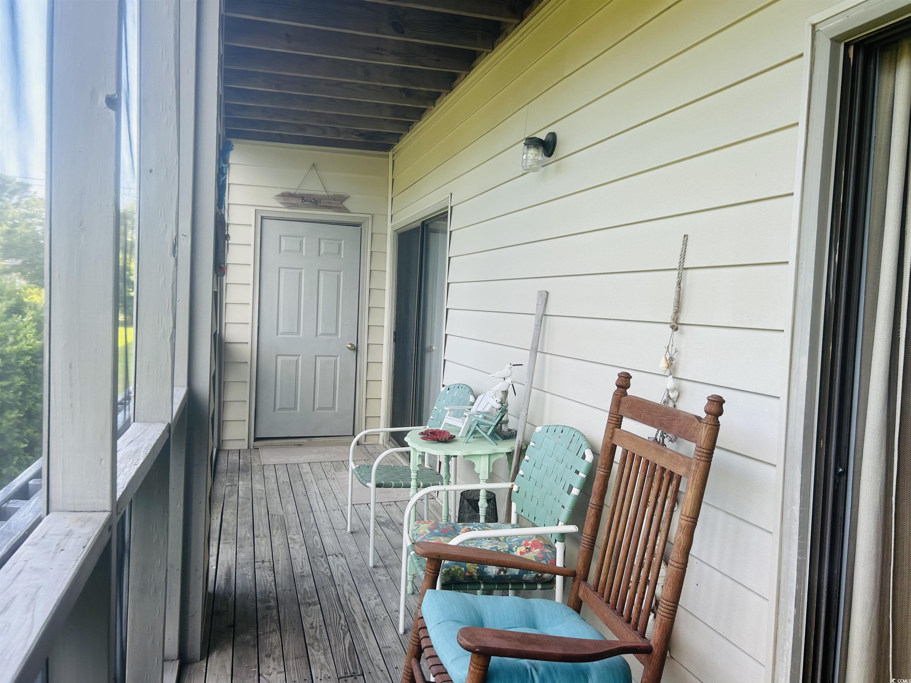 The Retreat at Glenns Bay is a perfect spot!! If you are an investor looking for short term rentals, a second home or a primary residence close to the beach with low HOA's, this is it!! This unit is immaculate, move in ready with tons of upgrades. There are two, large covered and screened in porches to enjoy with back views of the pond and landscape and other with front view. The screen enclosure has Easy Breeze windows and privacy screens for quiet enjoyment. An open concept plan with a wet bar in the family room, perfect for entertaining. The bedrooms are a split plan, perfect for guests. Each bedroom has a private bathroom; one you can access from the bedroom. The back bedroom has access to the private covered and screened in patio. There is a ventless, stack washer and dryer unit that are fairly new, that have a perfectly fitted space and convey with property. There is an additional CSI fee monthly for pool and common areas, ask your agent for more information. You are a mile from the beach and to the Surfside Fishing Pier. Golf Cart friendly neighborhood! Close to everything you need if you're looking to enjoy all that beach life has to offer. Schedule an appointment today!!