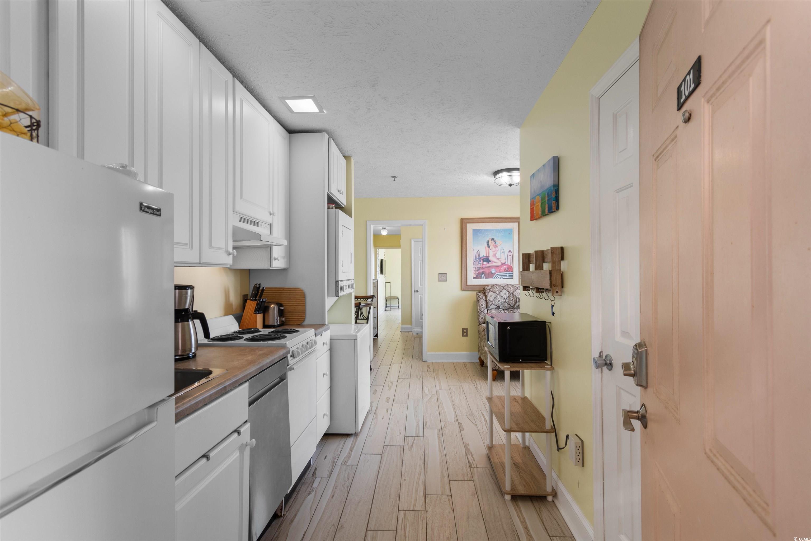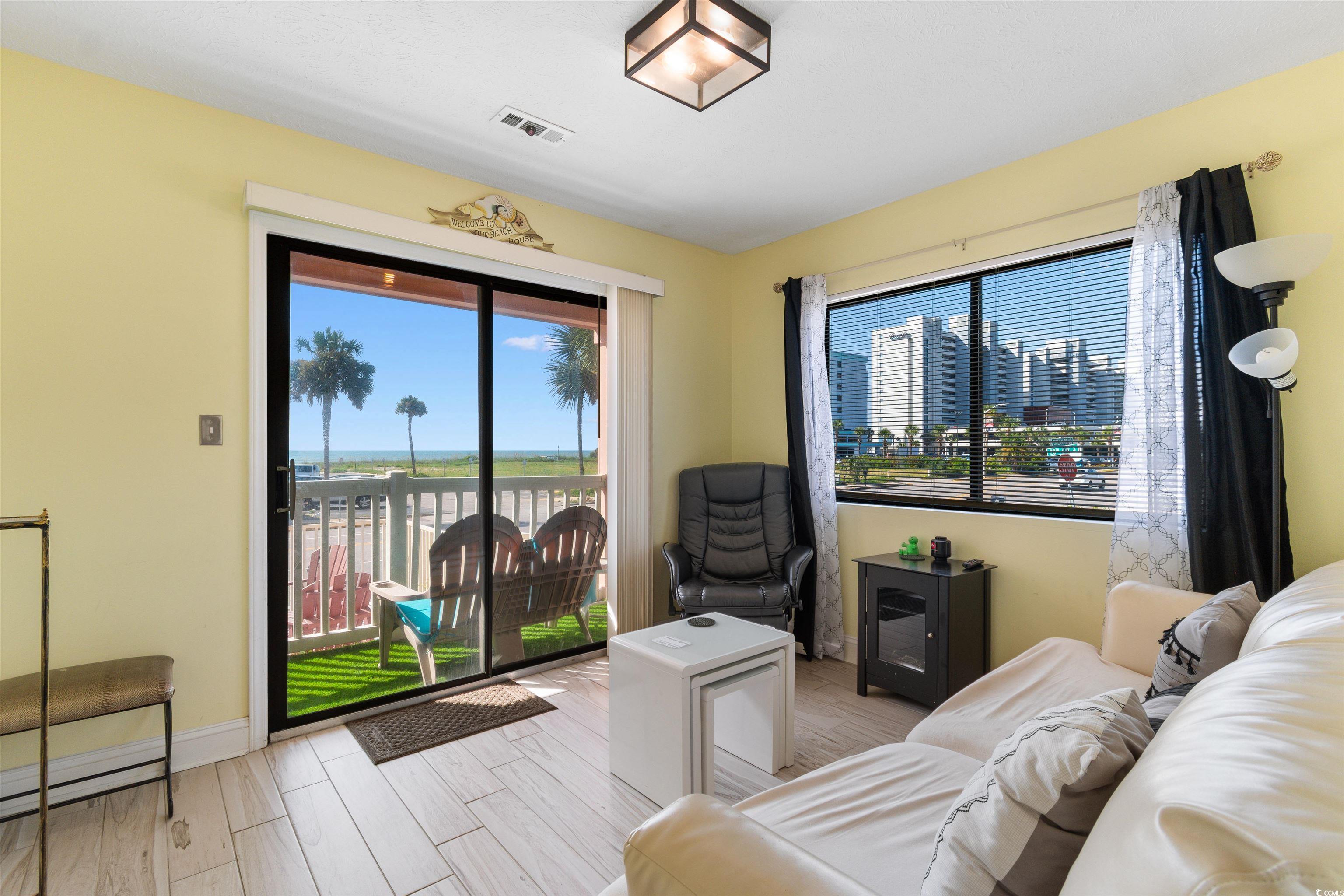 Claim your slice of paradise in Myrtle Beach before the prices climb! This charming 1-bedroom, 1.5-bathroom first-floor end unit is move-in ready perfect as a vacation escape, investment rental, or beachside retreat. Step out onto your private balcony and enjoy the ocean view, just steps away from the sand. The home comes complete with all kitchen appliances and a washer & dryer for your convenience. Major upgrades already handled: New HVAC installed in 2020, new roof added in 2023, new water heater from 2023, and modern tile flooring installed in 2020. This unit is located in a well-maintained building with low HOA fees that cover homeowners' insurance, internet, cable, trash service, pool access, and more. Youll love the unbeatable location a short stroll to the beach and just a 10-minute walk to Market Common. You're also within minutes of the airport, Coastal Grand Mall, Broadway at the Beach, and only about 30 minutes to Coastal Carolina University. With countless restaurants, shops, and attractions nearby, the lifestyle here is unmatched!