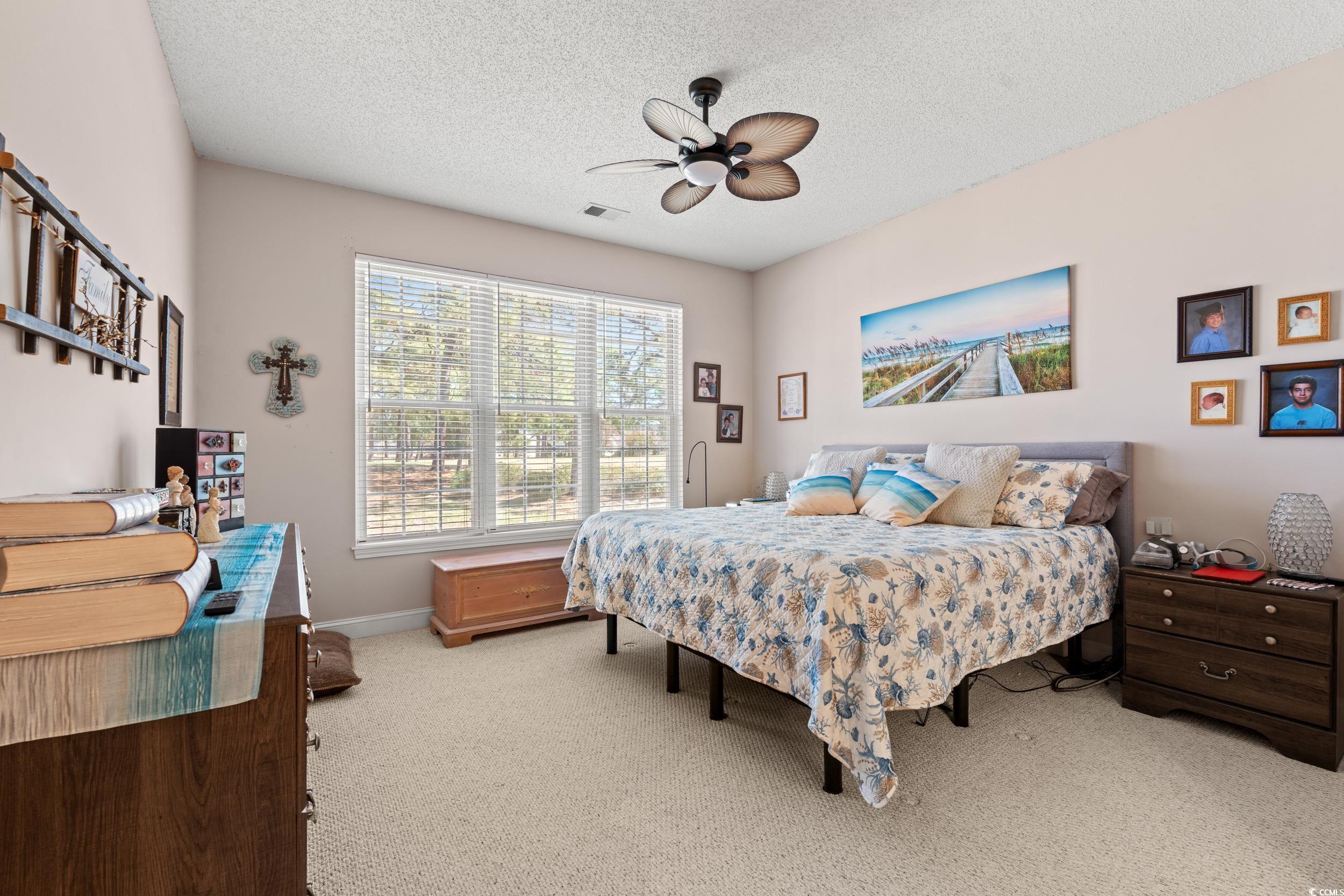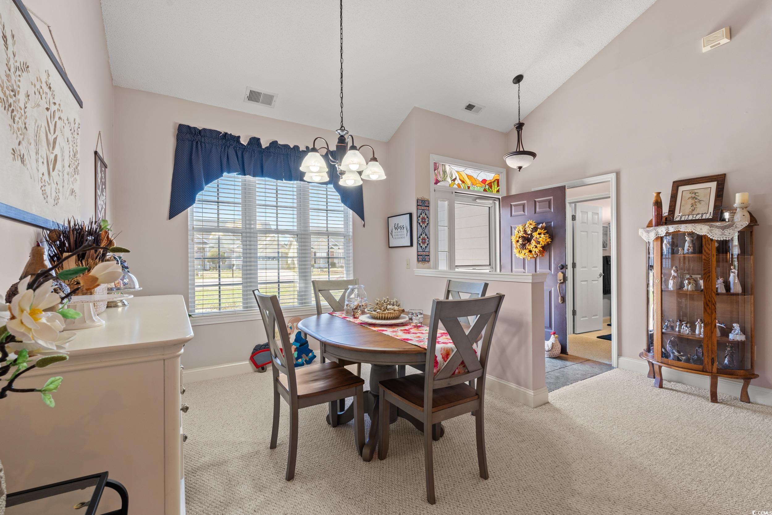 Enjoy golf course views from this 3 bedroom, 2 bath home in the 55+ community of Myrtle Trace South. A spacious living and dining area with high ceilings and a fireplace makes gathering comfortable, while the kitchen offers a breakfast bar, pantry, and a bright nook overlooking the fairway. The primary suite also faces the course and includes a walk in closet and private bath. Two additional bedrooms and a full bath are set at the front of the home, giving privacy for guests or office space. An oversized two car garage with storage connects to the laundry room for everyday convenience. Lawn care is included through the HOA along with access to the pool and clubhouse. Just minutes to restaurants, shopping, and medical offices, and only a short drive to the beach.