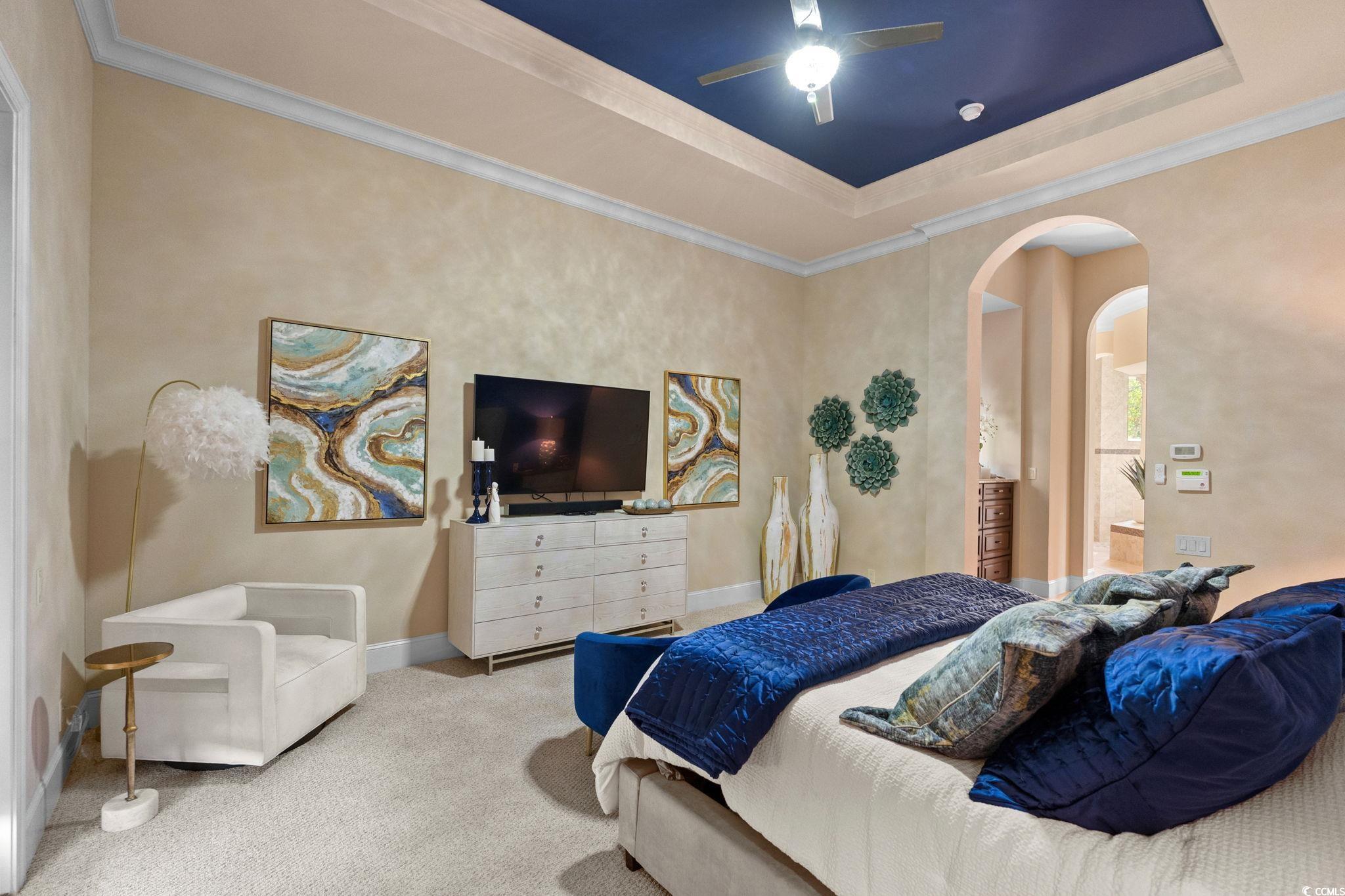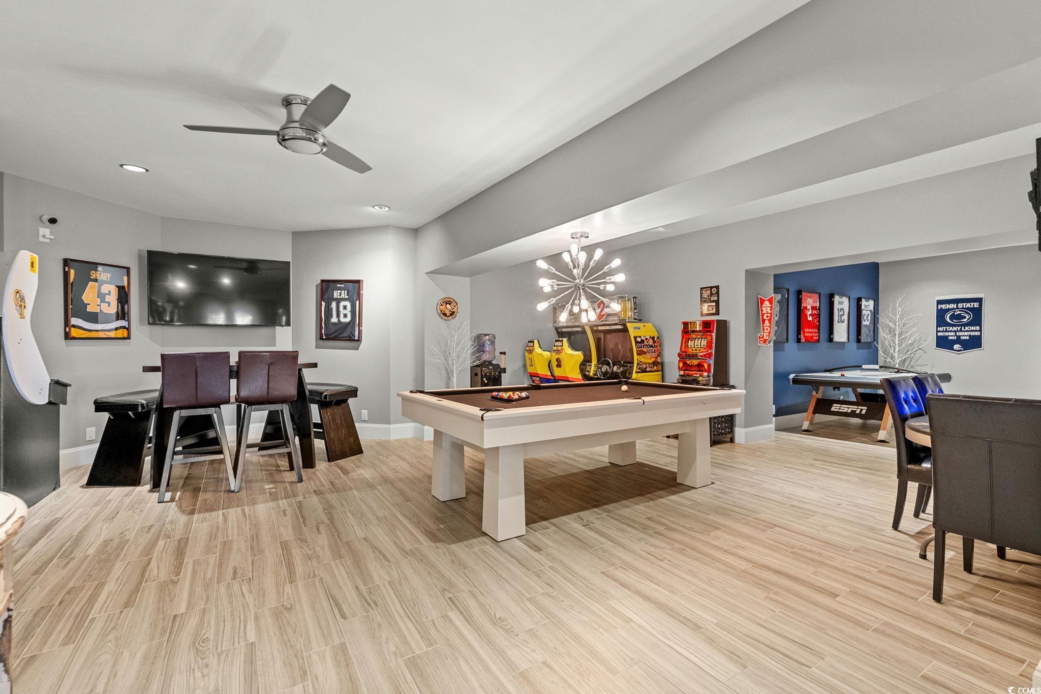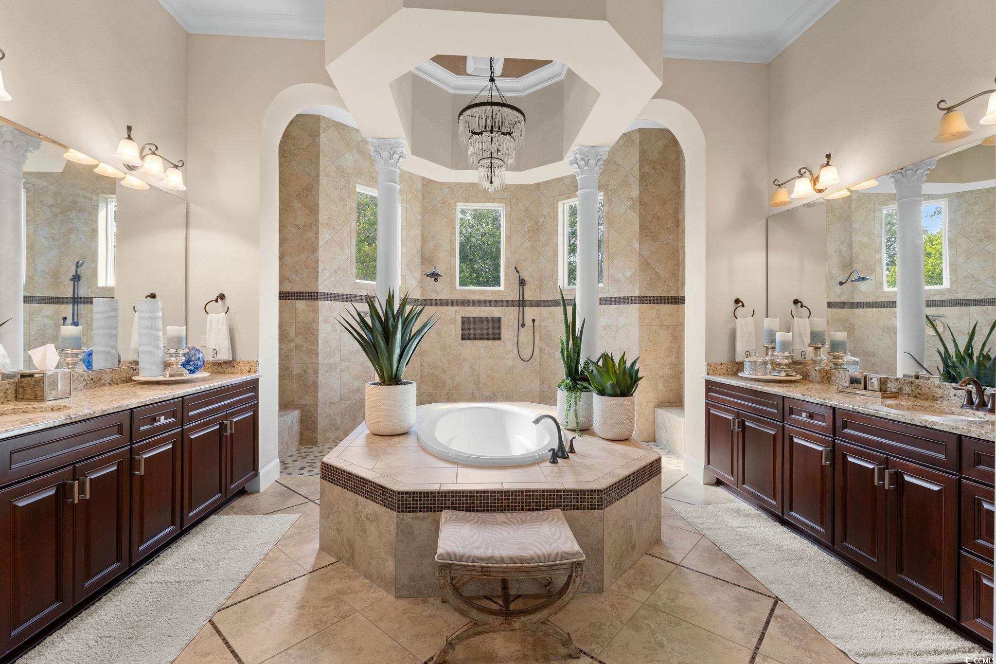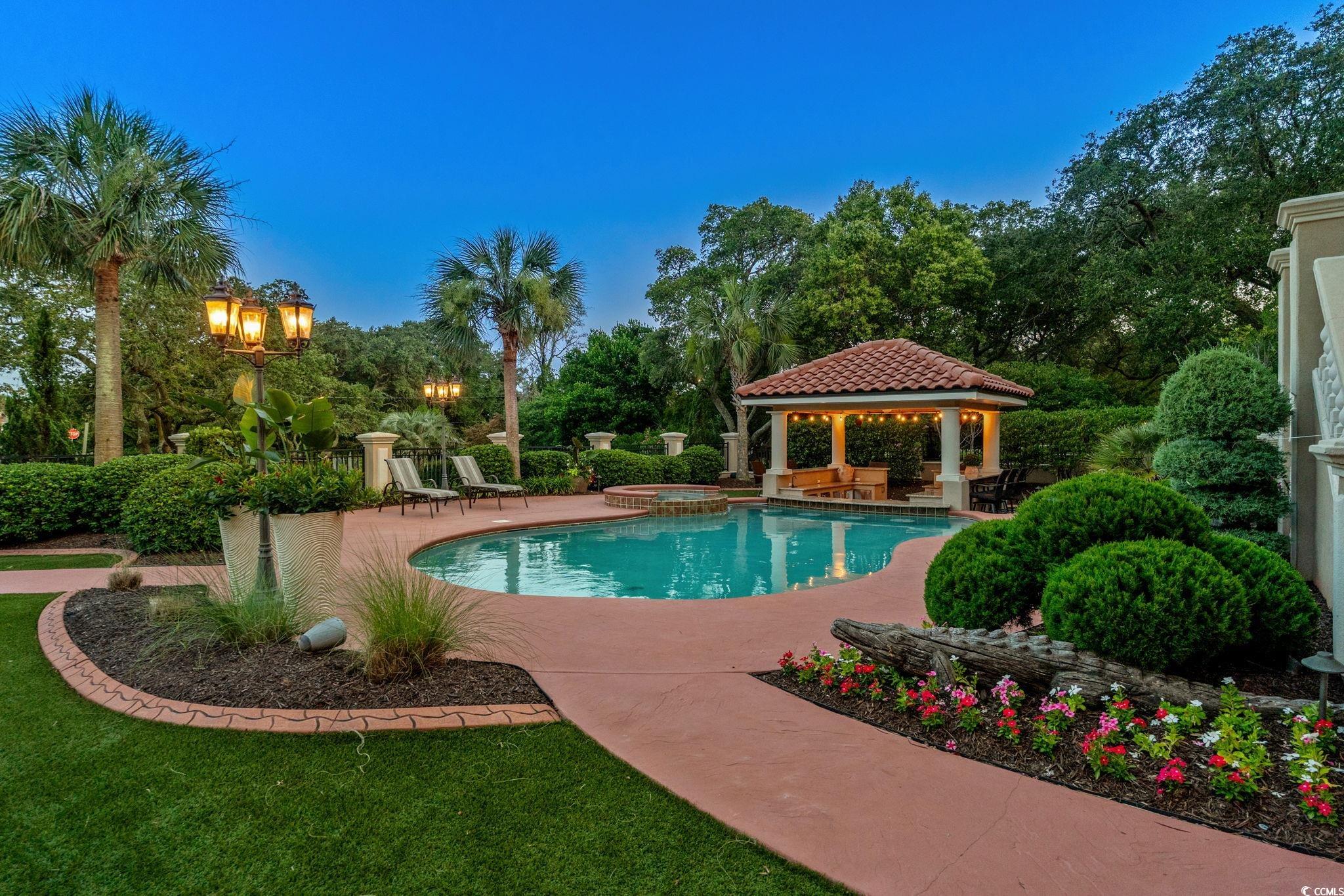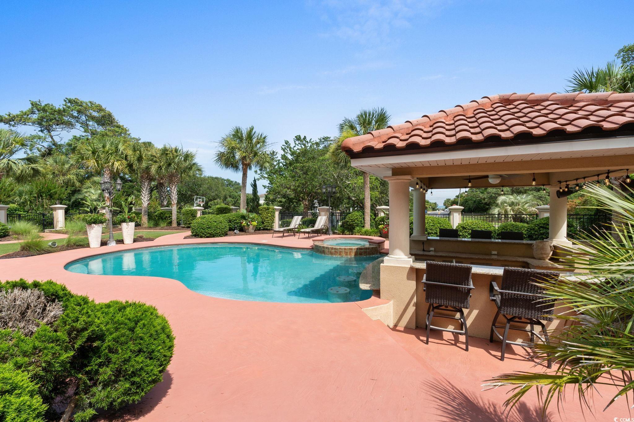 4803 Burchap Drive, a one-of-a-kind luxury estate located in the prestigious Golden Mile section of Myrtle Beachjust steps from the ocean! This stunning coastal retreat offers over 9,000 heated square feet of meticulously designed living space, featuring 5 spacious bedrooms and 5.5 bathrooms, all situated on a beautifully landscaped half-acre+ lot. From the moment you enter, youre greeted by soaring ceilings, elegant finishes, and an open floor plan perfect for both everyday living and upscale entertaining. The gourmet kitchen offers high-end appliances, double ovens, custom cabinetry, and a large island. Multiple living areas, including a formal living room, family room, and a custom-built home theater, offer plenty of space to relax or host guests. The expansive primary suite features a spa-like bathroom with double vanities, a soaking tub, and a massive walk-in shower. Each additional bedroom is generously sized with private or semi-private bath access. Step outside to your own resort-style backyard oasis. Enjoy the custom-designed in-ground pool with swim-up bar, a private putting green, spacious patio, and multiple lounging areasall surrounded by lush landscaping for privacy. Whether youre relaxing poolside, entertaining guests, or enjoying the beach just a short walk away, this home offers the ultimate coastal lifestyle. Additional features include a large laundry room, multiple flex spaces, abundant storage, and an oversized garage. This home must be seen to be fully appreciated. Don't miss the rare opportunity to own a true estate property in one of Myrtle Beachs most iconic neighborhoods. Schedule your private tour today!
