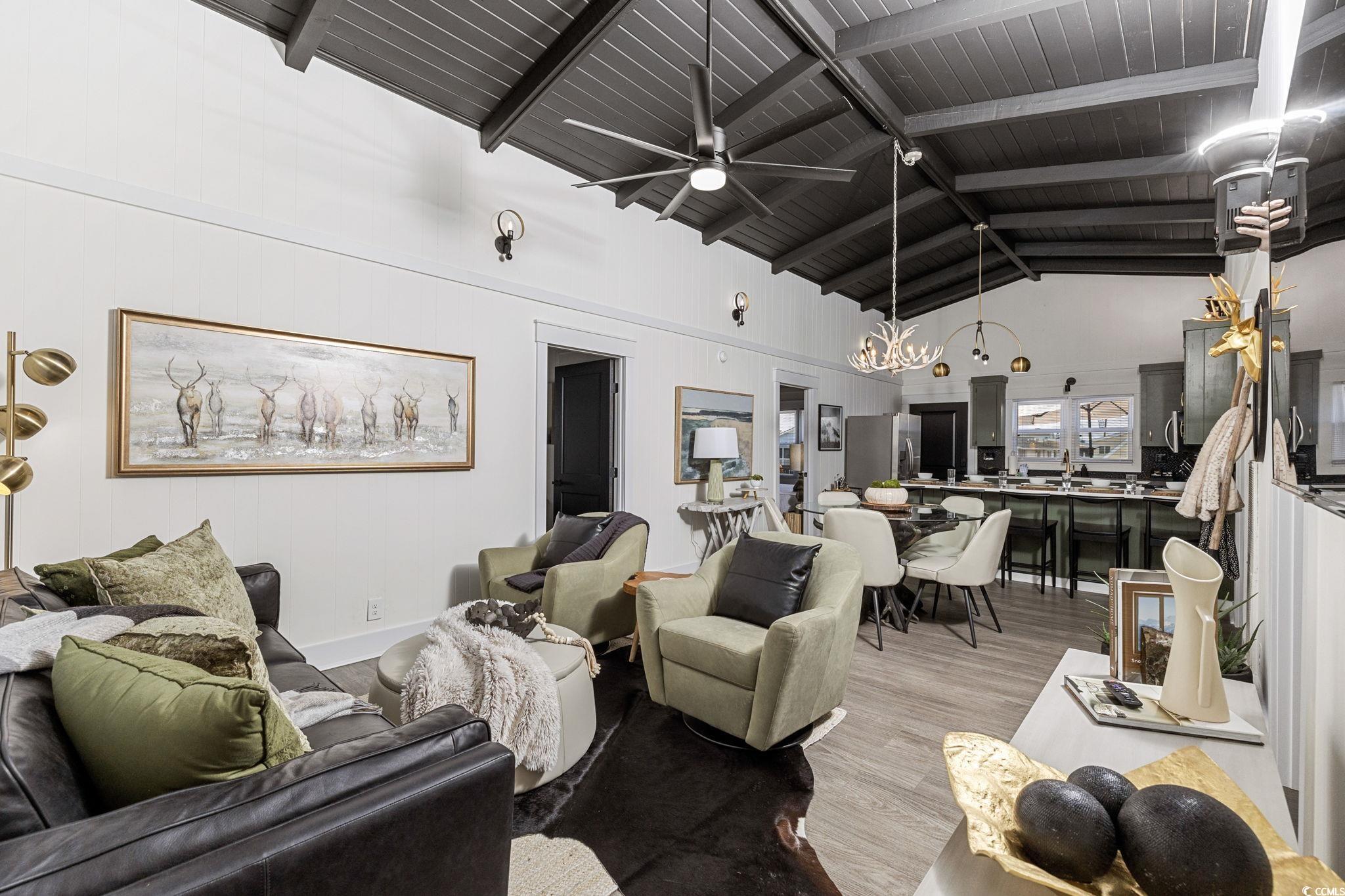 ***HIGHEST PERFORMING 5-BEDROOM RENTAL IN CHERRY GROVE*** Introducing Cabin by the Sea, a truly one-of-a-kind property featuring 5-Bedrooms, 3-Bathrooms. This Home has been fully renovated unlike any other in the entire area! Professionally designed, this 5-bedroom, 3-bath retreat combines style, comfort, and impressive rental income. Perfect for accommodating up to 16 guests, the home offers three king beds, four queens, and one full bed. As you enter the home you will truly see the level of thought and detail that was put into both the renovation & design. The inviting living room,complete with a Smart TV and an elegant antler chandelier, sets the tone for relaxation, while the modern, fully equipped kitchen features a striking black backsplash and bar seating for five. A spacious dining table for eight welcomes gatherings of all kinds. Each bedroom is fitted with a Smart TV, and the versatile sleeping arrangements ensure flexibility for family & friends. Step outside to indulge in the large hot tub, enjoy a barbecue on the outdoor grill, or challenge friends to a game at the poker table. The expansive outdoor area includes a Carolina room, private dock, and a wood-inlaid bar, offering spaces to unwind or entertain in style. Convenient parking for 6-8 cars and a washer/dryer complete this exceptional property, making it a beautiful, income-generating, RARE escape in the heart of Cherry Grove Beach.