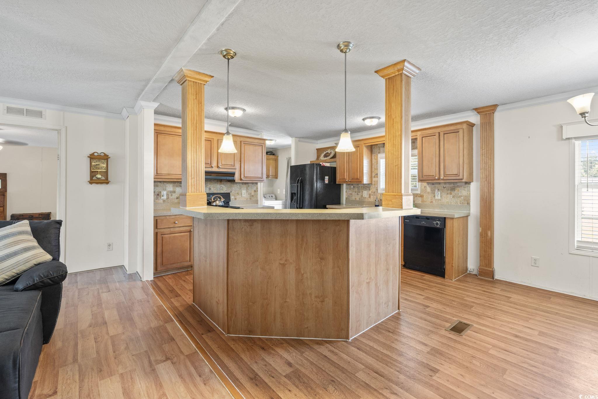Welcome to 911 Old Magnolia Drive at Carolina Tides (formerly Conway Plantation)! This spacious 4-bedroom, 2-bath home is located in a well-kept manufactured home park with exciting new amenities on the way! From the welcoming screened-in front porch to the open living spaces inside, this home is designed for comfort and entertaining. The formal living area flows into an open kitchen with a center island/bar, and a dining area with an LP gas fireplace. Off the kitchen, a breakfast nook offers the perfect spot for casual meals. The impressive primary bedroom, measuring 18' x 12.8', offers plenty of space for relaxation and privacy. It features an ensuite bath with double sinks, a custom-tiled walk-in shower, and a large walk-in closet. On the opposite side of the home, three additional bedrooms share a spacious second bathroom. The third bedroom, previously a bonus room, has its own side entranceideal for guests, a home office, or studio. Carolina Tides offers on-site management, a community pool, and upcoming amenities including a fitness center, expanded pool deck with grilling area, multi-use court, dog park, firepit, game patio, and more! Conveniently located just minutes from CMC Medical Center, Coastal Carolina University, and a short drive to historic downtown Conwayplus, you're only 20 minutes from the beaches and attractions of the Grand Strand! The lot lease includes trash pickup and amenities. Come see all that this community has to offer!