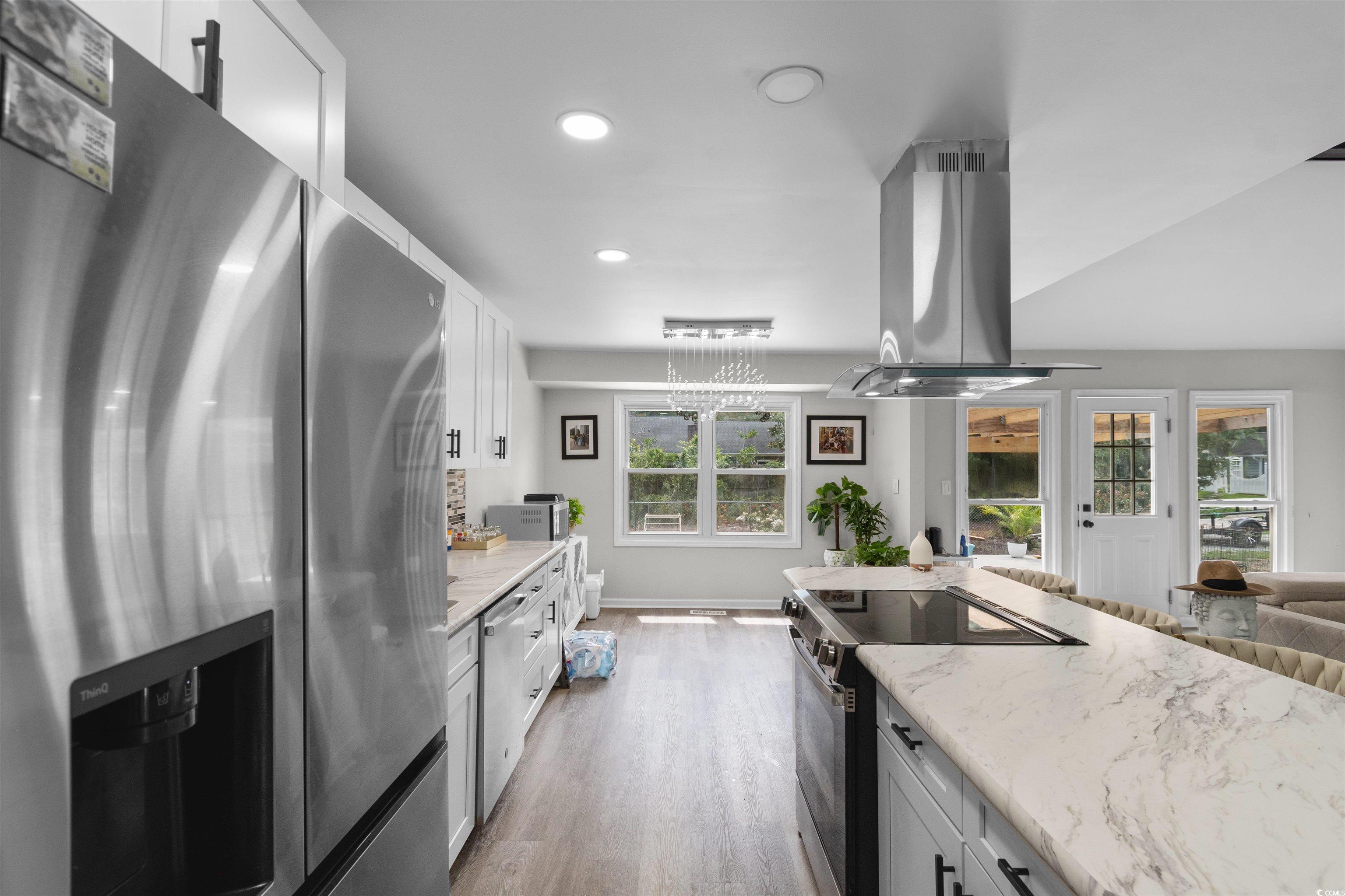 This charming, remodeled three bedroom, two bath home located in the highly sought-after Cimerron Plantation neighborhood. No HOA neighborhood located only a few miles from the beach is very unique in Myrtle Beach!! You can use this multi-functional corner .29 acre lot for boats, RV's, jet skis, etc. with a brand-new concrete driveway! When you walk into the vaulted living room with a chef's delight open kitchen! This remodeled kitchen boasts hard, solid-surface countertops, work island, stainless steel exhaust vent. Roof was replaced in 2024, HVAC in 2023. This radiant home offers so much for a family or second home !!