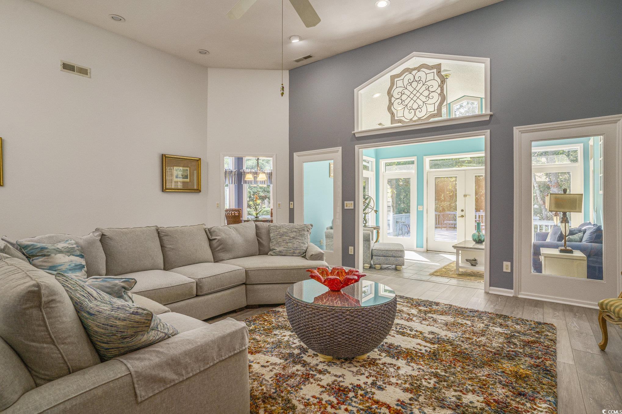 Nicely updated 3 bedroom 2.5 bath Ranch home. The kitchen has updated appliances, sleek countertops, and nice cabinet space. The master bedroom has a separate entrance through the screen porch. Large Carolina room overlooks the rear deck with nicely landscaped and private back yard. Spacious 2 car garage. Updated gas logs. Located in the very desirable Tidewater Plantation, an upscale residential community in the Cherry Grove section of North Myrtle Beach. It is known for its scenic views, top-rated golf course, considered one of the top public courses in South Carolina, and close proximity to the Intracoastal Waterway and the Atlantic Ocean. Amenities include multiple swimming pools, Tennis and pickleball courts, a fitness center and an exclusive ocean club. Private wooded lot on a quiet cul-de-sac. Tidewater is a gated community with 24 hr. security. Furniture conveys with the exception of the granite top on the coffee table in the Carolina room.