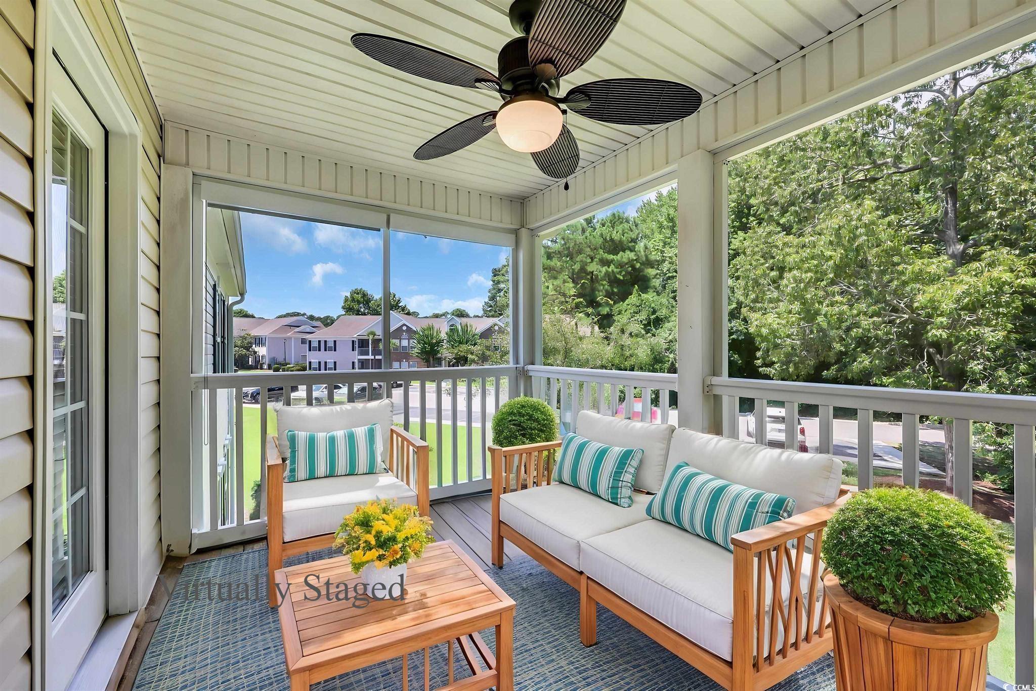 Welcome to easy coastal living in the Winchester section of Wachesaw Plantation East. This 3BR/2BA end-unit condo combines comfort, convenience, and a touch of Lowcountry charm. Step inside through your private ground-level entry and head upstairs to a bright, open floor plan with soaring vaulted ceilings and abundant natural light. Relax on the screened-in patio with your morning coffee, enjoy casual evenings with friends, or take advantage of the extra storage for all your gear. Recent updates including a newer HVAC, newer water heater, and oversized kitchen sink provide peace of mind, while thoughtful care throughout makes this home move-in ready. Just outside the gates, youll find the Murrells Inlet MarshWalk, Huntington Beach State Park, Brookgreen Gardens, and a public marina all within minutes. Whether youre seeking a full-time home base or a weekend retreat, this condo offers a relaxed lifestyle in a gated golf course community where every day feels like a getaway. (Some photos virtually staged.)