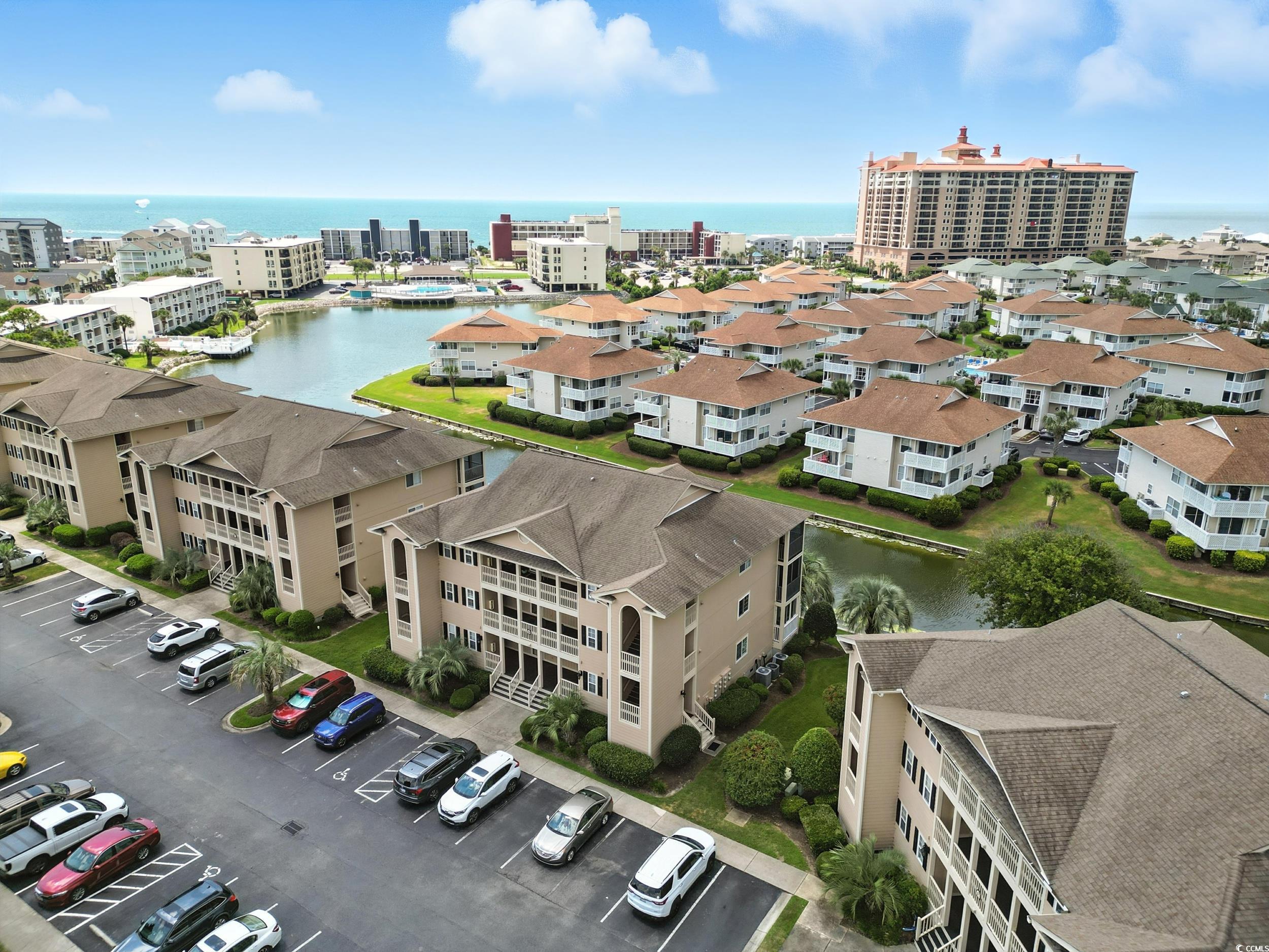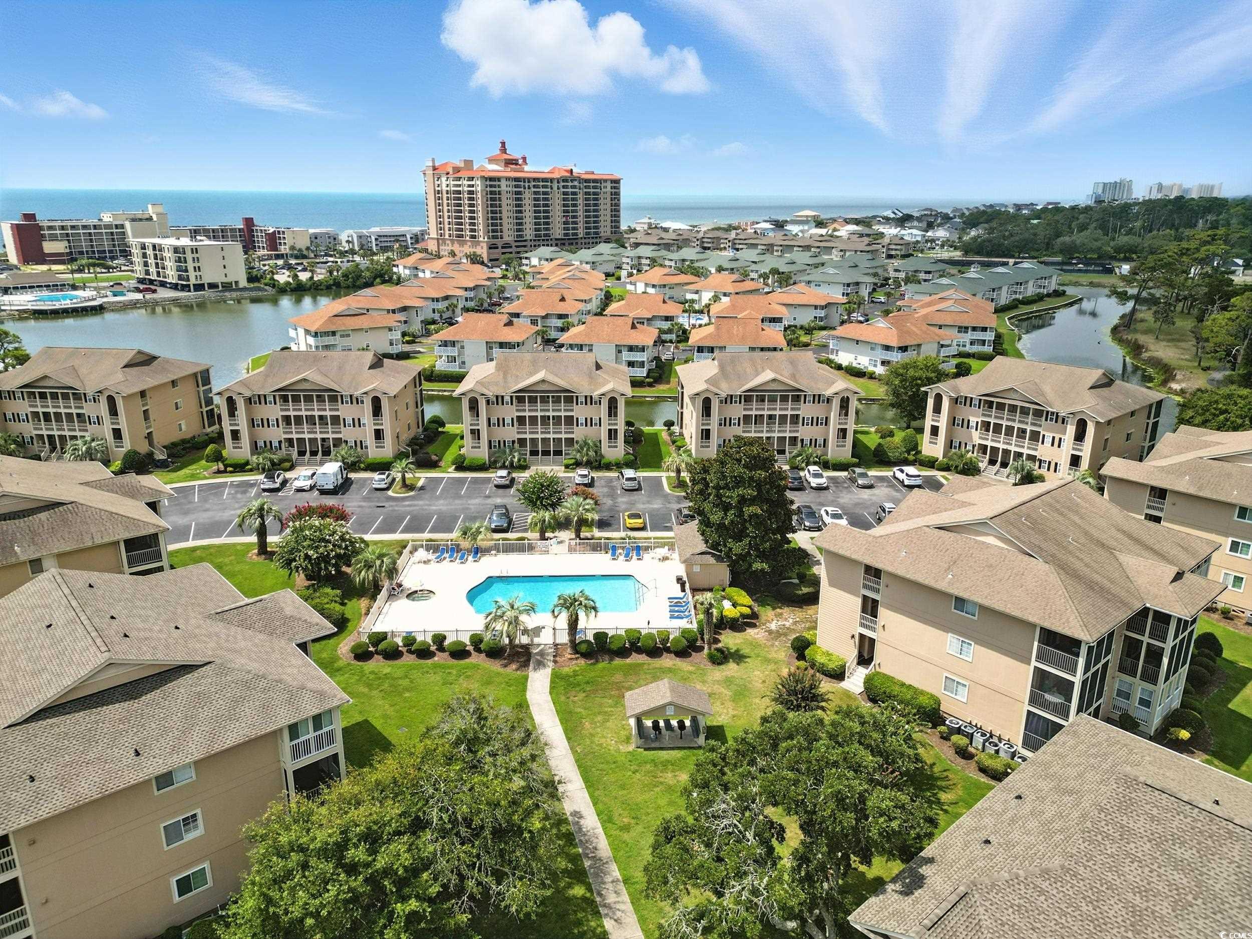 Discover your perfect coastal escape in this wonderful, fully furnished, second-floor end-unit condo in the serene Tilghman Shores community of Cherry Grove. Just steps from pristine beaches, this two-bedroom, two-bath haven blends modern upgrades with a prime location where the oceans breeze is your daily soundtrack. Natural light floods the open-concept living area through extra end-unit windows. The stylish space, adorned with a modern color palette and complimenting furniture. The fully appointed kitchen is a chefs delight, featuring a spacious pantry, gleaming quartz countertops, and a elegant tile backsplash. A breakfast bar, stove, and microwave make meal prep effortless. Unwind in the inviting living room with comfortable seating or step onto the screened porch overlooking the waterway, golf course and tranquil lake. The master suite offers a king bed, four seasons room access. A second bedroom with twin beds and its own bathroom completes the layout. This turn-key property includes a well maintained HVAC system, washer/dryer, owners closet, outdoor storage shed, kitchen appliances, dishes and silverwareready for immediate occupancy or rental. Nestled in the hidden gem of Tilghman Shores, the community boasts expertly maintained landscaping, a large pool, hot tub, grilling area, and a peaceful lake where ducks and turtles roam. The pet-friendly HOA covers cable TV, internet, pest control, pool maintenance, and building insurance, supporting both short- and long-term rentals. Walk to Cherry Groves modernized beach access, Surf Golf Club, shops, dining, iconic shag dance clubs, boat ramps, and the serene Heritage Preserve Nature Park. This vibrant yet tranquil setting is ideal for relaxation or adventure. Properties in this sought-after area don't last long, especially a move-in-ready gem like this. Whether youre seeking a personal retreat or a rental investment, this condo checks every box. Schedule your showing today and claim your slice of coastal paradise!
