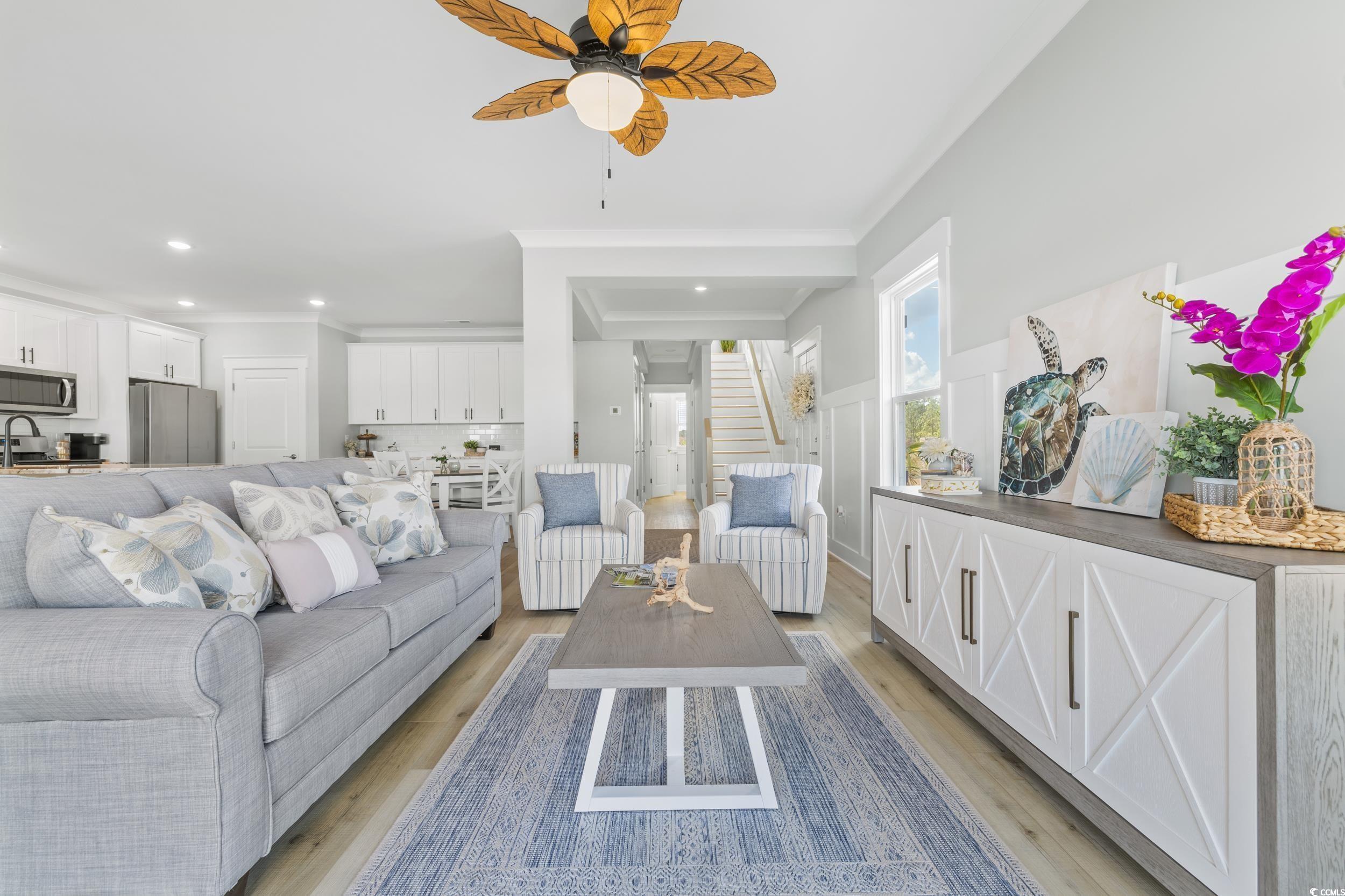 Discover Watertower Estates - Investors Dream! North Myrtle Beach Living at Its Finest. Welcome to Watertower Estates, a sought-after community in the heart of North Myrtle Beach, where coastal charm meets modern living. This beautifully designed 4-bedroom, 3.5-bath townhome offers the perfect combination of style, functionality, and investment appeal. True Townhome Ownership - Youll own the land beneath your home, and short-term rentals are permitted, offering flexibility whether you're looking for a full-time residence, vacation getaway, or income property. As a bonus, this is a natural gas community, something rarely found in the area. Step inside and youre greeted by high 9-foot ceilings and elegant luxury vinyl plank flooring. Crown molding upgraded 3"" window trim, and 5"" baseboards add a touch of sophistication throughout the home. The open concept living and dining area flows effortlessly into a stunning kitchen, complete with granite countertops, tile backsplash, stainless steel appliances (including refrigerator), a large breakfast island, and a generous walk-in pantry. The main floor also features an owners suite, a half bath, a spacious laundry room, and access to a finished 2-car garagecomplete with painted walls and hung drywall for a polished look. Upstairs, retreat to a luxurious second owners suite. Start your day with coffee on the private balcony overlooking the tranquil pond. Two additional bedrooms share a Jack-and-Jill bathroomperfect for guests or family members. Residents enjoy low HOA fees that include access to the community pool, pickle ball courts, golf simulator, clubhouse, and scenic lakes. Just minutes from local shopping, top-rated restaurants, golf, and the beachand only a short drive to Barefoot Landingthis location truly has it all. Whether you're seeking a forever home or a smart investment, this townhome delivers on every level. Schedule your showing today and experience life in one of North Myrtle Beachs most desirable neighborhoods! PHOTOS ARE OF OUR MODEL, NOT REPRESENTATIVE OF HOMES CURRENTLY UNDER CONSTRUCTION!! THERE ARE MANY PLANS AND FINISHES TO CHOOSE FROM.