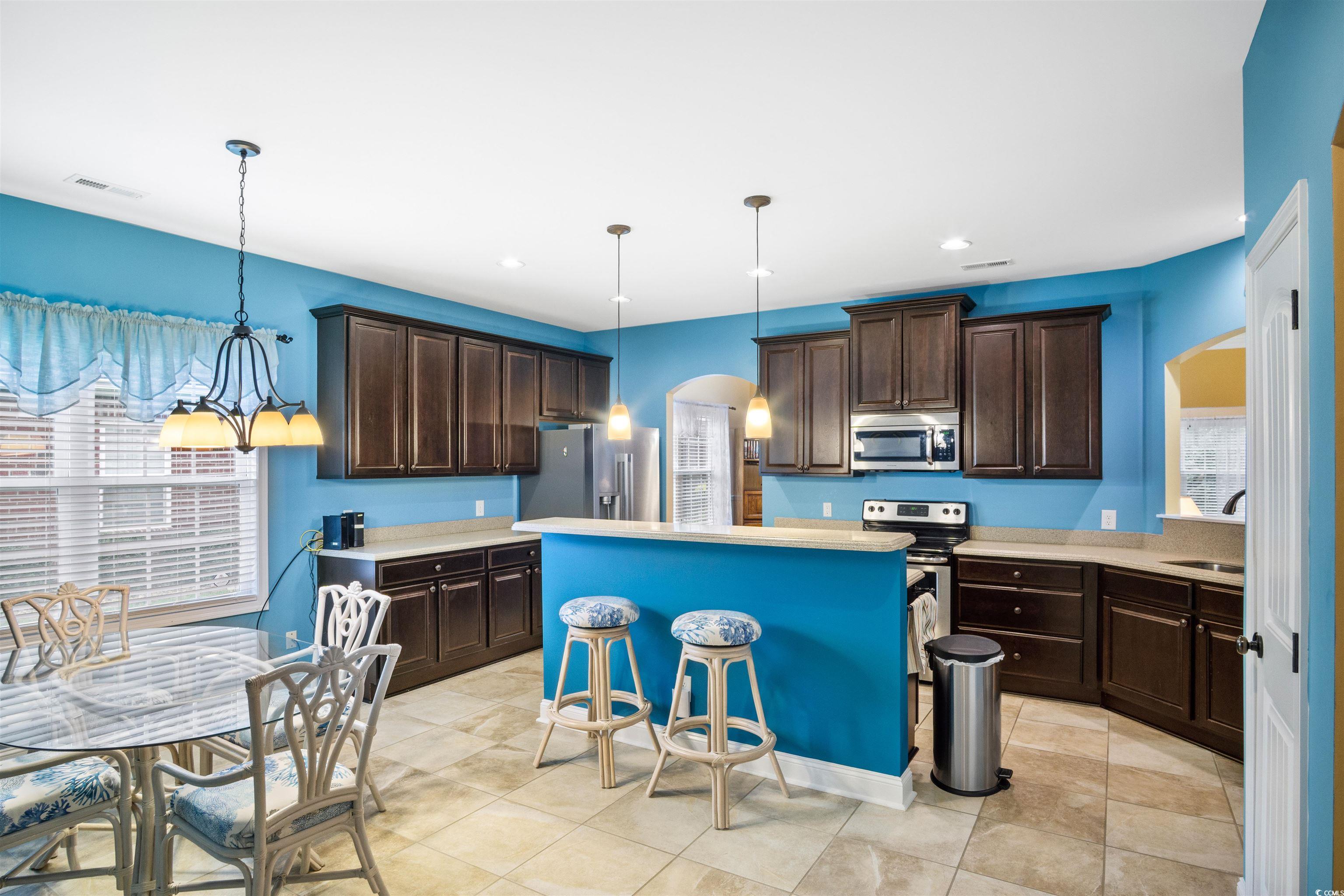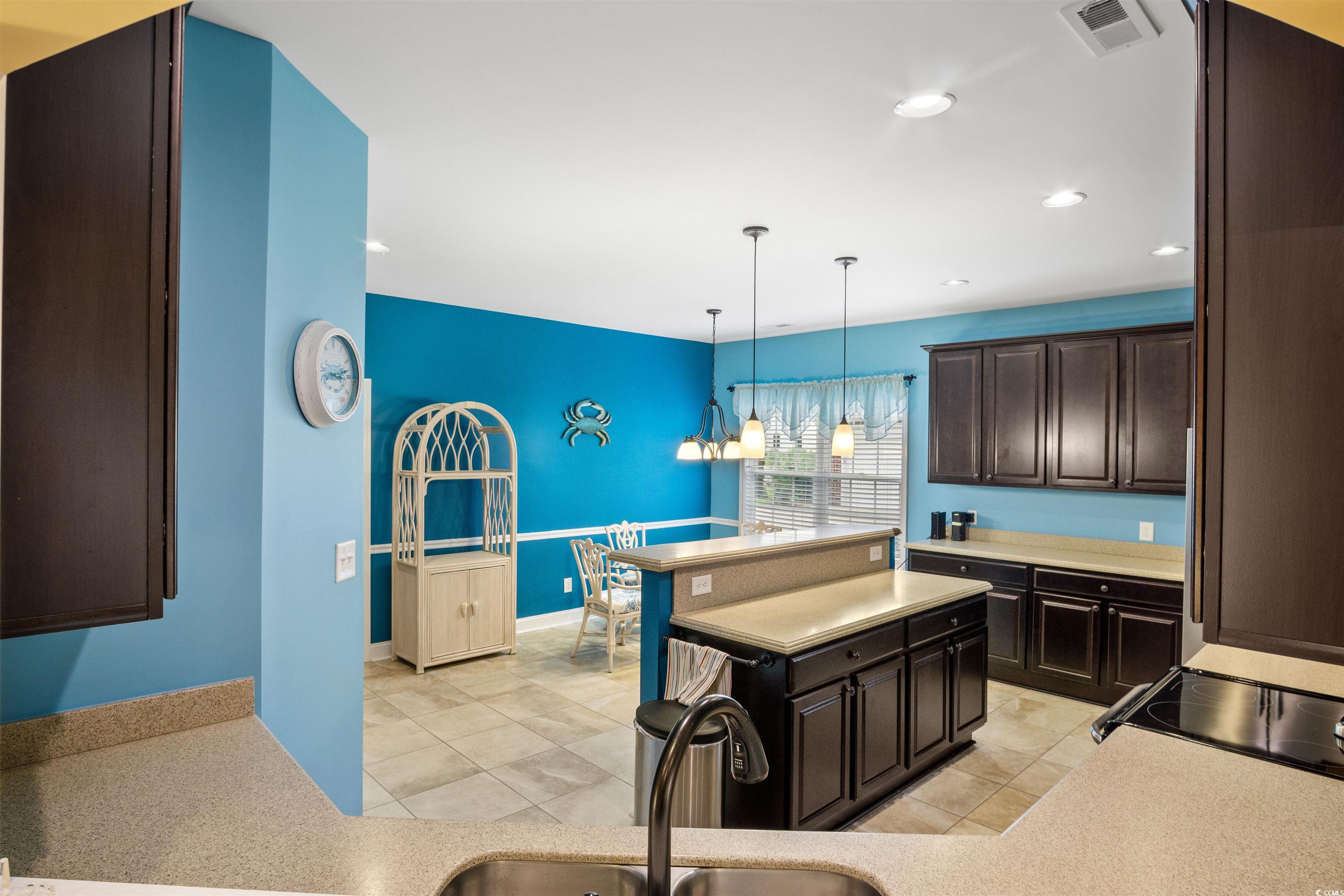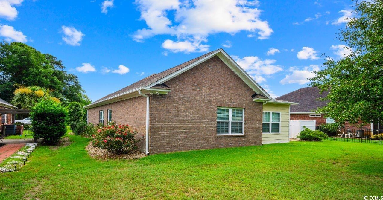 Beautiful brick home in small secluded quiet neighborhood of The Preserve. The home has a fantastic lake view and only a quick 5 minute golf cart ride to the beautiful blue Atlantic Ocean! This 3 bedroom 2 bath split bedroom floorplan is great for all the family and has been meticulously maintained. The kitchen is a wonderful center of the home boasting beautiful quartz counters, large center work island, breakfast room, upgraded cabinets, recessed lighting, chair railing and wood flooring. The island bar is a plus for entertaining guests and family gatherings. The kitchen also has wood blinds, large tile flooring and large pantry for storage. The kitchen opens up into living room so everyone can socialize. The dining room is spacious with wood floors and chair railing that accentuate this home. The living room/family room is beautifully appointed with tray ceiling, wood floors and recessed lighting. Just off the living area is a pocket door that opens up into the newly added lanai for relaxation and conversation. The Master bedroom is its own oasis for privacy with large ensuite including a garden tub, oversize beautifully tiled shower and double vanities. The master walk-in closet has an abundance of custom shelving and storage for hanging all of your clothes, shoes and storage needs. The 2 other bedrooms share a guest bathroom which provides plenty of space for family and friends to quietly enjoy. The laundry room is large with hanging space and a sink for soaking. The garage is oversized with custom privacy screens, workshop area and pull down attic storage. The yard is professionally landscaped with Zoysia grass and mature flowering trees and shrubs. Located at the beginning of Restaurant Row and convenient to all the highlights of Myrtle Beach - Alabama Theater, Carolina Opry, Dublin Winery, Barefoot Landing & Tanger Outlets. Don't miss this opportunity to own a slice of paradise!