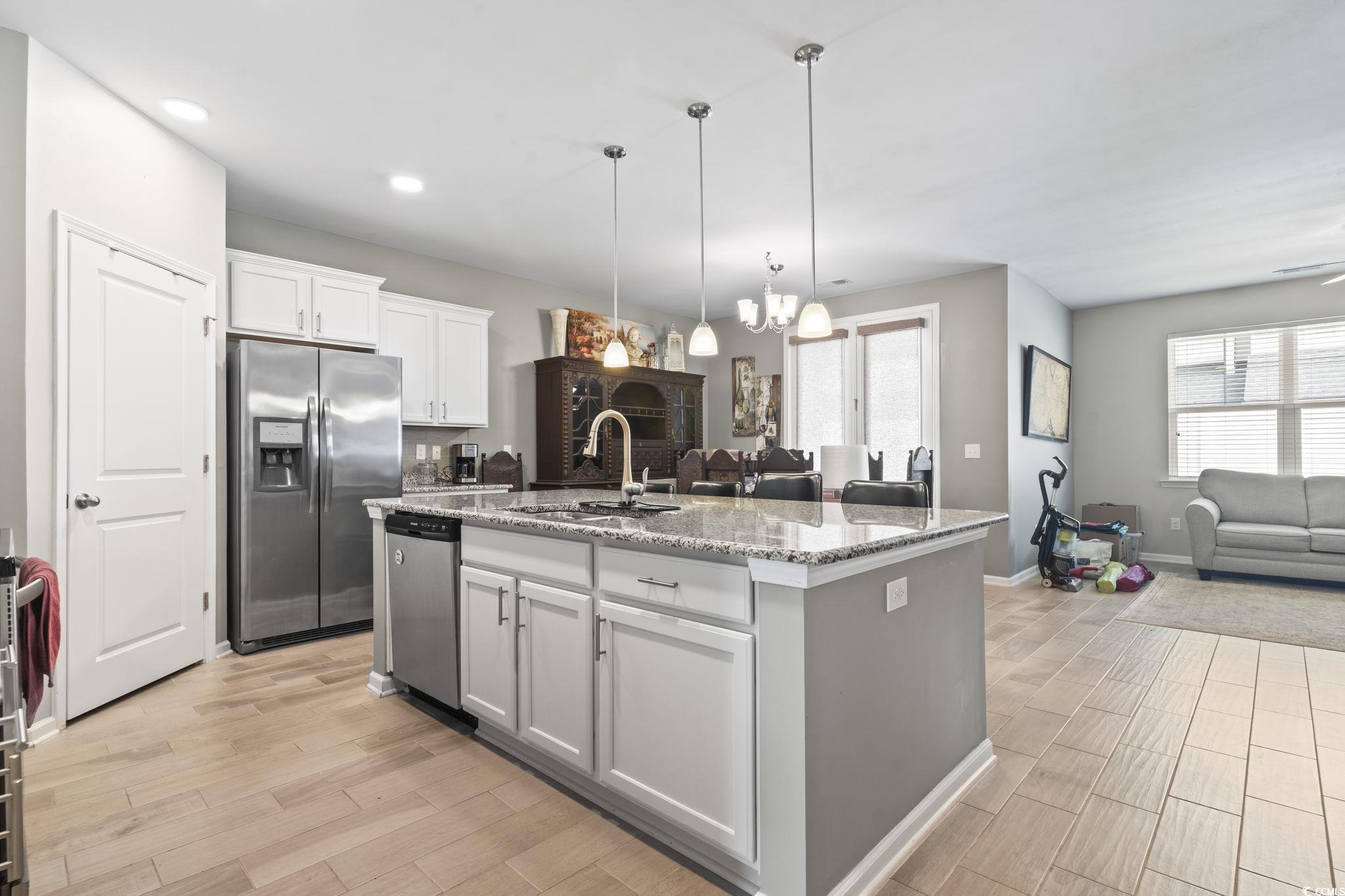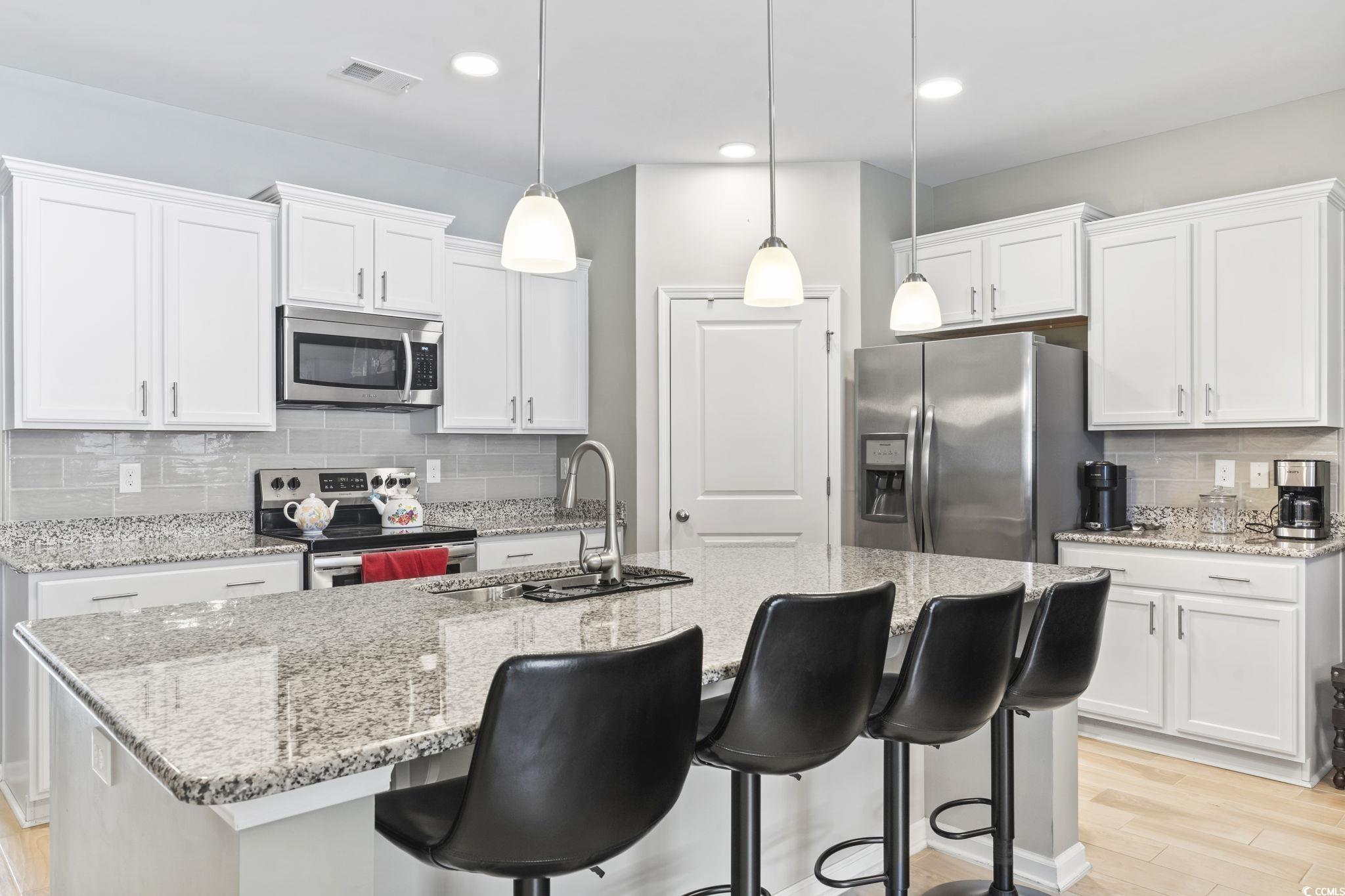 **Price Reduction***.....This is the Claiborn Model. A Beautiful layout with 4 bedrooms and 2 bathrooms all on the first floor! Walk through the front door and the complete layout flows nicely. This home shows as new! The well-equipped kitchen has stainless appliances, center island with breakfast bar. All Bedrooms are on first floor. The Retreat @ Ocean Commons is a short drive to the beach (see drone picture), stores, shopping, airport, restaurants. A very quiet neighborhood. Surfside Beach is known as the Family Beach! Brand New roof in 2025. All square footage should be verified by the buyer