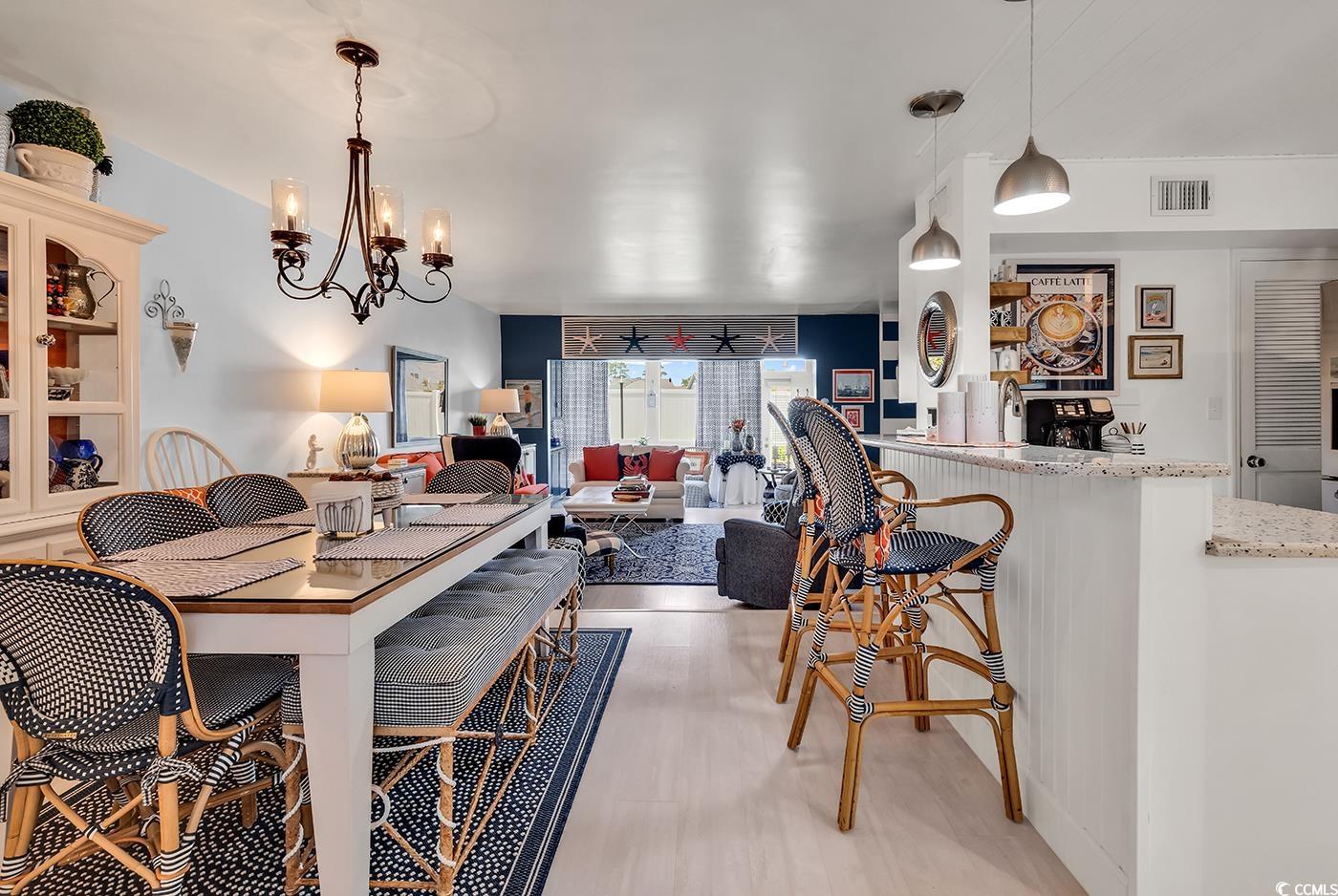 Welcome to your beachside retreat! This beautifully updated 3-bedroom, 2.5 bath townhome is located east of Highway 17 in the heart of North Myrtle Beach, offering the perfect blend of comfort, convenience, and coastal charm. Hop on your golf cart and ride to the beach, shopping, and dining just minutes away. Whether you're looking for a primary residence, second home, or investment property, this turn-key home checks all the boxes. This move-in ready property features a spacious first floor with an upgraded kitchen ,modern appliances , and a sunroom for year-round enjoyment. All three bedrooms are located upstairs, including a primary suite with a private balcony featuring low-maintenance Trex decking. Recent updates include new windows and sliders 5 years ago on the second floor, a new front door (Feb 2025), and a 2-year old washer and dryer. HVAC and water heater were replaced in 2016. Extra storage is located behind bathroom doors. Also there is a community pool for your enjoyment as well. Don't miss your chance to own a low-maintenance coastal getaway in a prime location.