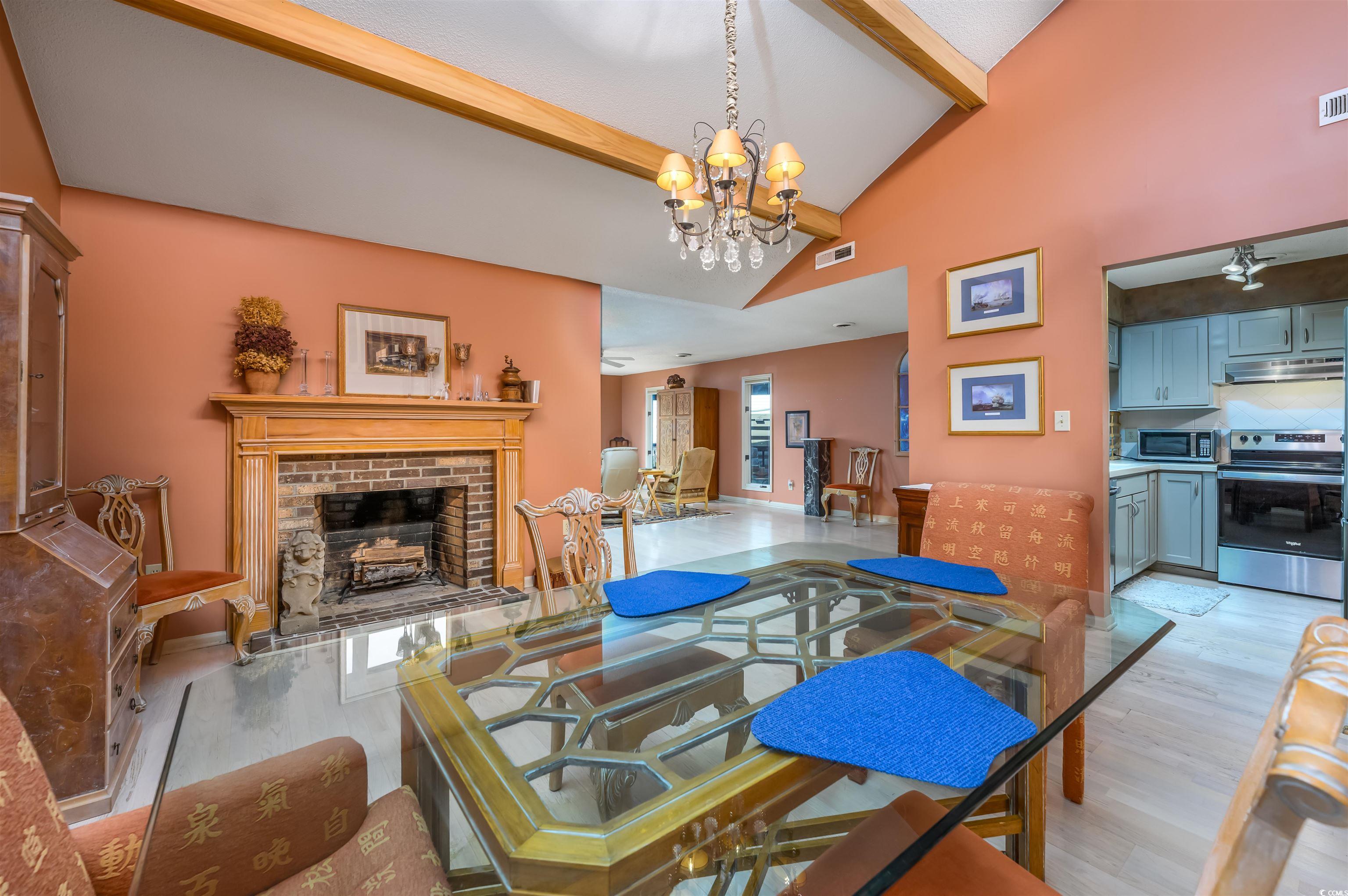 Charming 3-Bed, 2-Bath Coastal Home! Nestled in one of North Myrtle Beach's most desirable locations, one block away from main street, east of Highway 17 and just a short walk or quick golf cart ride to the ocean, this unique home offers coastal living with character. Lovingly maintained by one family, this home is full of charm and ready for its next chapter. Step inside to discover distinctive architectural details, including a vaulted dining room with exposed beam ceiling, a cozy fireplace in the living area, and a loft with built-in bookshelves, perfect for a home office, reading nook, or creative retreat. The screened porch and back patio invite you to enjoy ocean breezes and morning coffee, while the two-car garage provides ample storage for your beach gear or golf cart. With a few updates and personal touches, this home has the potential to truly shine. Located in a quiet, established neighborhood just minutes from shops, restaurants, and, of course, the beach! This is a special find for someone looking to make it their own. Whether you're seeking a primary residence, vacation getaway, or investment property, this North Myrtle Beach gem is not to be missed.
