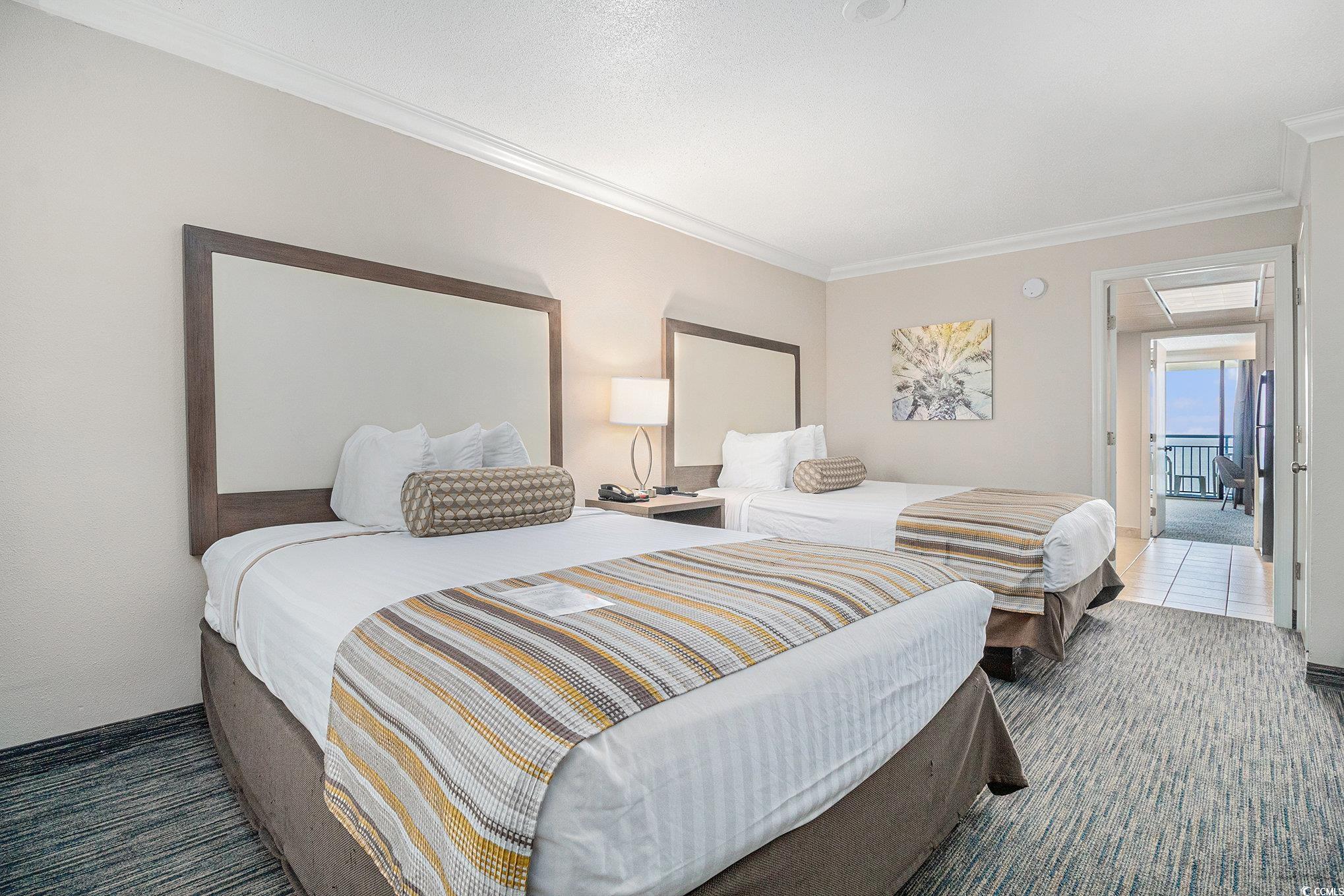 Amazing Views & Resort Amenities! This oceanfront 1 bedroom, 1 bathroom unit is packed with features that make it ideal for rentals, vacations, or everyday full-time living. The bedroom offers two queen-size beds, dresser, closet space, and a flat-screen TV. While the bathroom features a granite vanity, tiled floors, and a shower/tub combo. The living area includes a Murphy bed, dresser storage, TV, stylish couch and chair, and a dining table with chairs. The kitchenette is fully equipped with an oven, microwave, and refrigerator with freezer perfect for preparing meals during your stay. Step onto your private balcony and enjoy direct ocean views. This unit provides everything you need for comfort and convenience, plus access to incredible building amenities: indoor and outdoor pools, lazy river, arcade, bowling alley, beach bar, and more all great attractions for renters and guests. Located in Myrtle Beach, you'll have 60 miles of beautiful beach to explore. Whether you're looking for rental income, a vacation home, or affordable oceanfront living, this unit delivers on all fronts with fantastic features and resort-style fun.