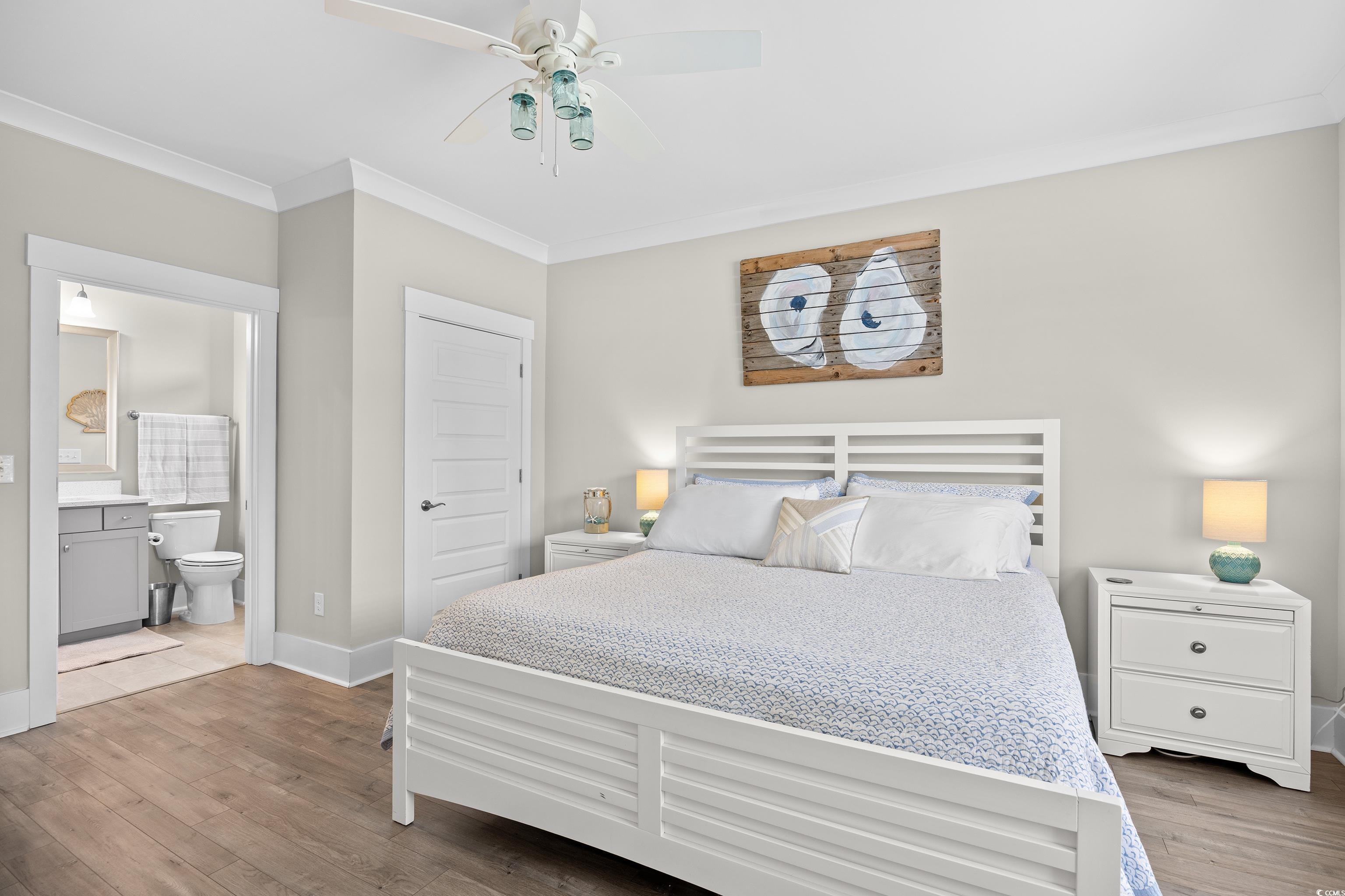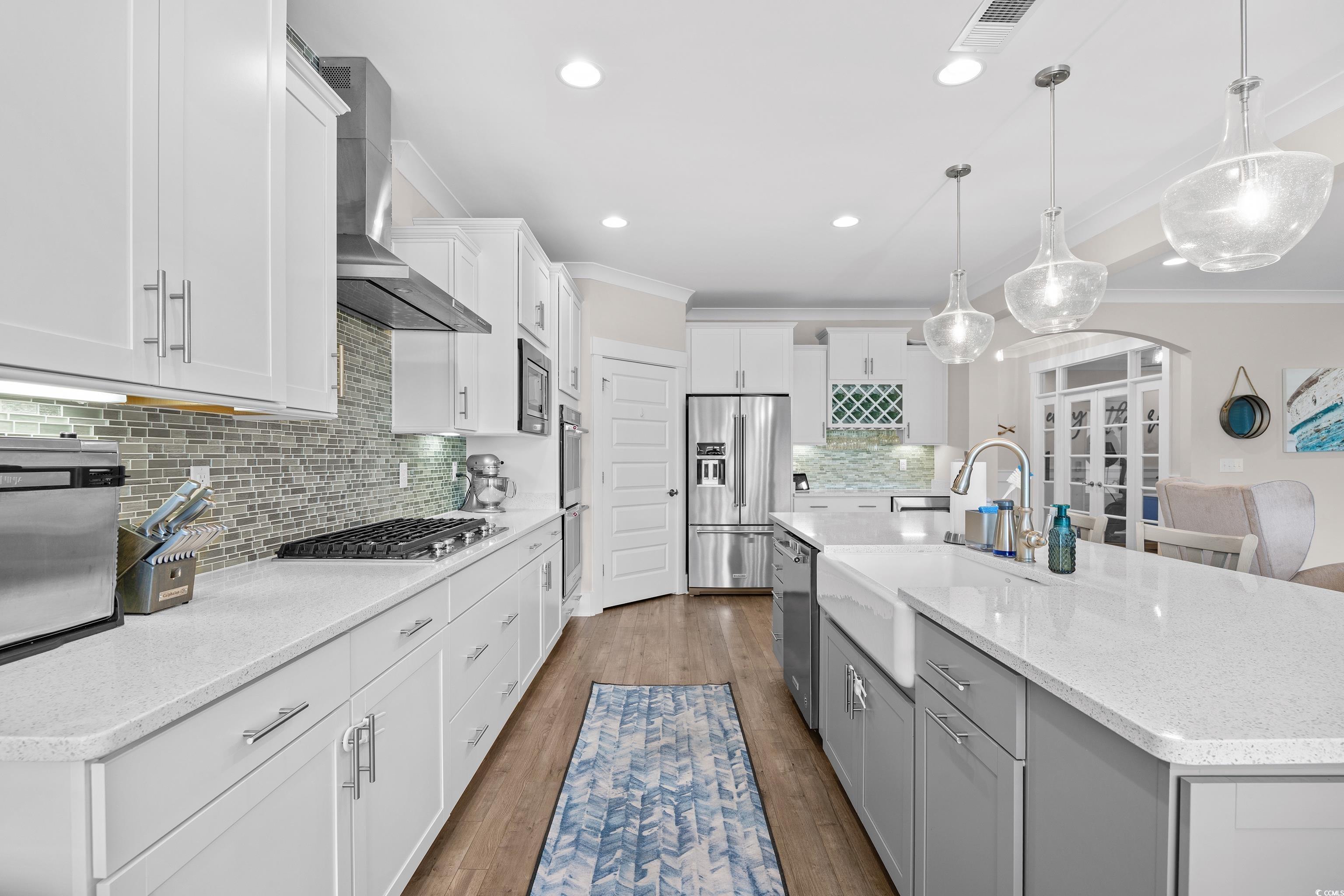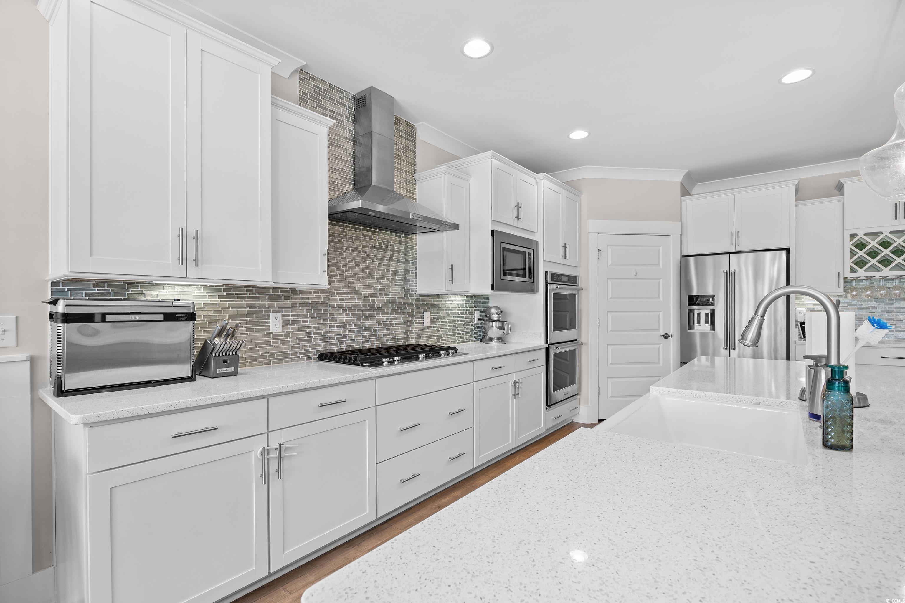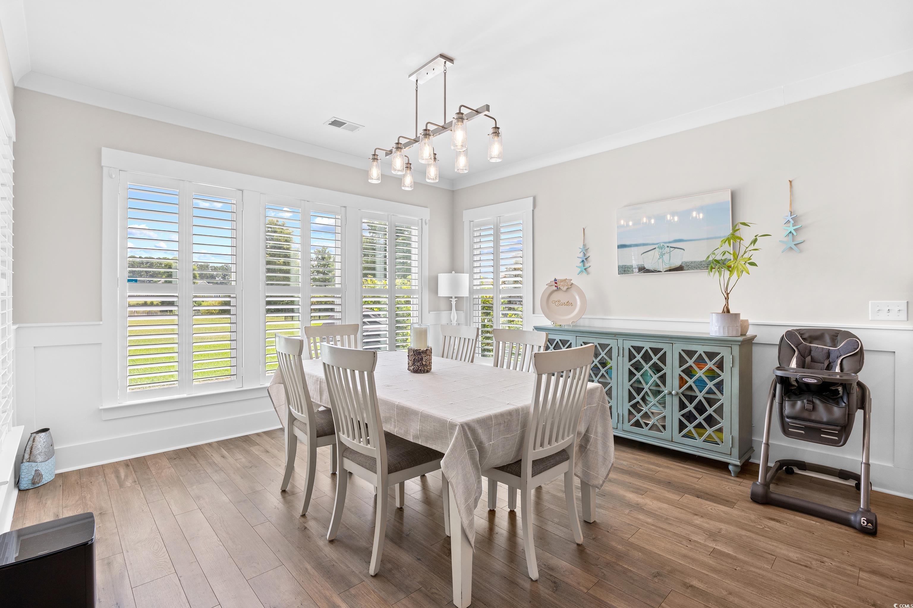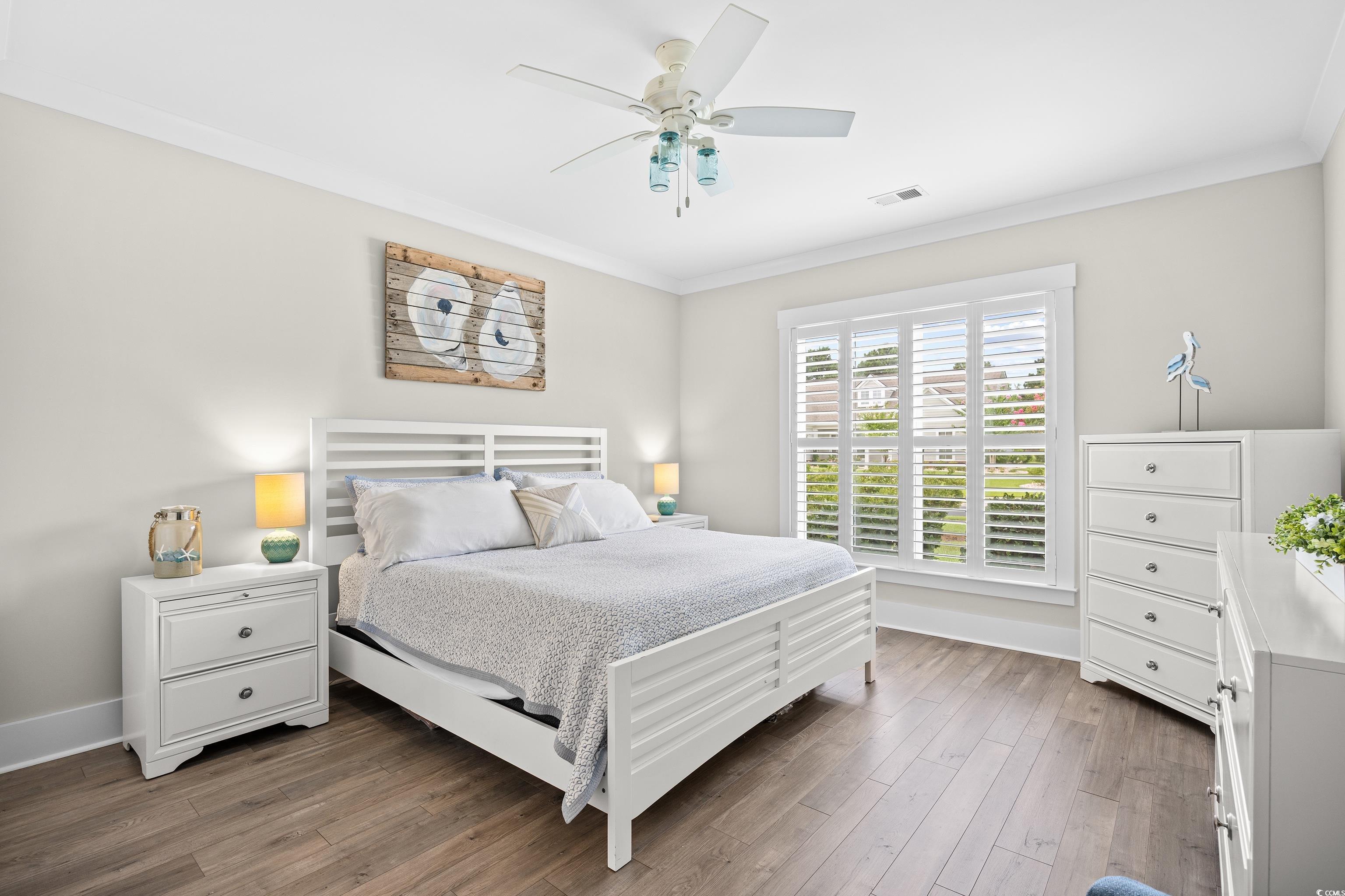 Welcome to this stunning and spacious 3-bedroom 3-bathroom home in the desirable Crow Creek neighborhood! Home is located on one of the biggest lots in this private gated golf course community with large backyard and screened lanai that boasts views of the water from 2 sides. Home has 2.5 car garage (2 car and golf cart garage) with a 4ft garage extension for all your storage and recreational needs. From the moment you walk through the front door you are met with 8ft sliders that allow you to enjoy this gorgeous view. The gourmet chefs kitchen features double ovens and all Kitchen Aid stainless steel appliances - perfect for entertaining! Extra-large gas cook-top for all your cooking needs. Laminate flooring throughout - no carpet. Enjoy the luxury of quartz countertops and soft shut cabinets throughout the home. Open floor plan with tons of natural light allowed by plantation shutters throughout. Lovely amenity center with a pool and spa, exercise room, game room, tennis and pickle-ball courts. Less than 10 miles from the beach."" Listing Agent and Co-Listing agent are licensed both in North and South Carolina. Flood insurance not required for this property. However, owners did purchase a Flood Policy thorough Wright Insurance company even though this property is located outside the AE zone area. SQUARE FOOTAGE IS APPROXIMATE AND NOT GUARANTEED. BUYER IS RESPONSIBLE FOR VERIFICATION.