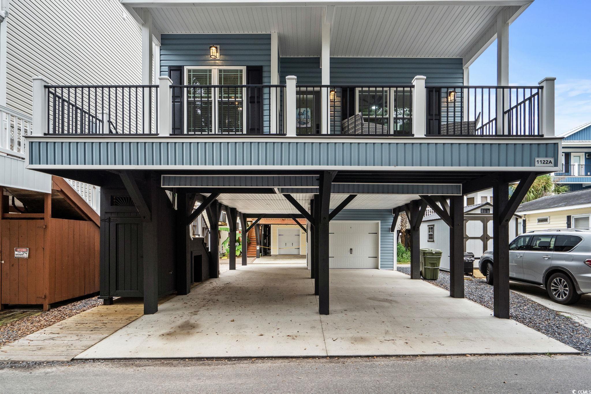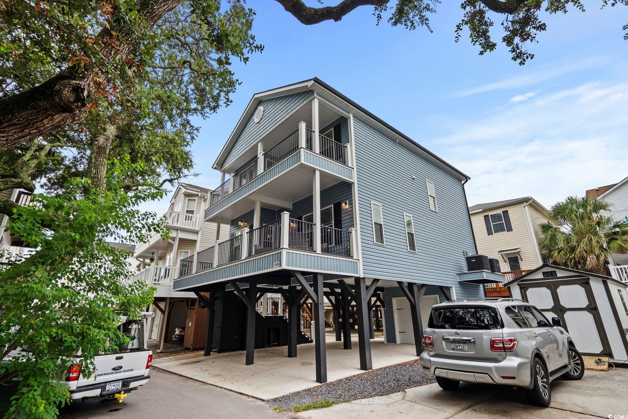 Welcome to 1122a, this custom built 5-bedroom 3.5 bath was completed in 2024 and is being sold fully furnished and just 14 houses from the BEACH! This oversized lot allows for golf cart parking on the Westside of the home and composite steps on the Eastside of the home. Under the house you have 2 parking bays with parking for 4+ cars and space to have an outdoor entertainment area with TV cabinet. Extra storage under the steps for beach chairs and outdoor shower with hot and cold water for rinsing off after a beautiful day at the beach. Garage with automatic garage door opener makes it easy for storing your golf cart and personal items when you are away from your beach house (water heater and electrical panel are in the garage). Making your way up the composite steps brings you to a nice sized covered deck with a partial view of the ocean. Enjoy morning sun on the Northeast facing deck and afternoon shade. Entering inside you have the large living room on the Northwest corner of the home with beautiful shiplap accept wall and crown molding. Brand new leather reclining sectional and oversize chair allows plenty of room for family movie nights or watching your favorite shows. Dining area with high-top table and seating for 6 and kitchen are on the Eastside of the home, allowing plenty of natural light into the custom kitchen with soft close cabinets, pantry, crown molding, quartz counters, gorgeous custom quartz island with seating for 5, and top of the line stainless steel appliances. Half bath is on the right as you make your way into the primary bedroom with king size power adjustable bed. Primary bathroom features a tiled walk-in shower, full-size stackable washer/dryer, and dual sinks. On the 2nd floor you have 2 additional full bathrooms with tub/shower combination, solid surface countertops, and windows above the shower for more natural light. Bedroom #2 is located on the Northwest side of the home with private deck access. This bedroom has a plush oversized brand-new king-size mattress, coastal elegant furniture, large closet, and a 2nd WASHER & DRYER. Bedroom #3 is on the Northeast side of the home with queen size bed, chair, private entrance to upstairs deck, and coastal furniture. Bedrooms #4 & #5 are on the Southeast and Southwest side of the home one having a full-size bed and one having a queen-size bed and coastal furniture. Set your appointment today to see the beautiful home! The home is a must see! New construction.