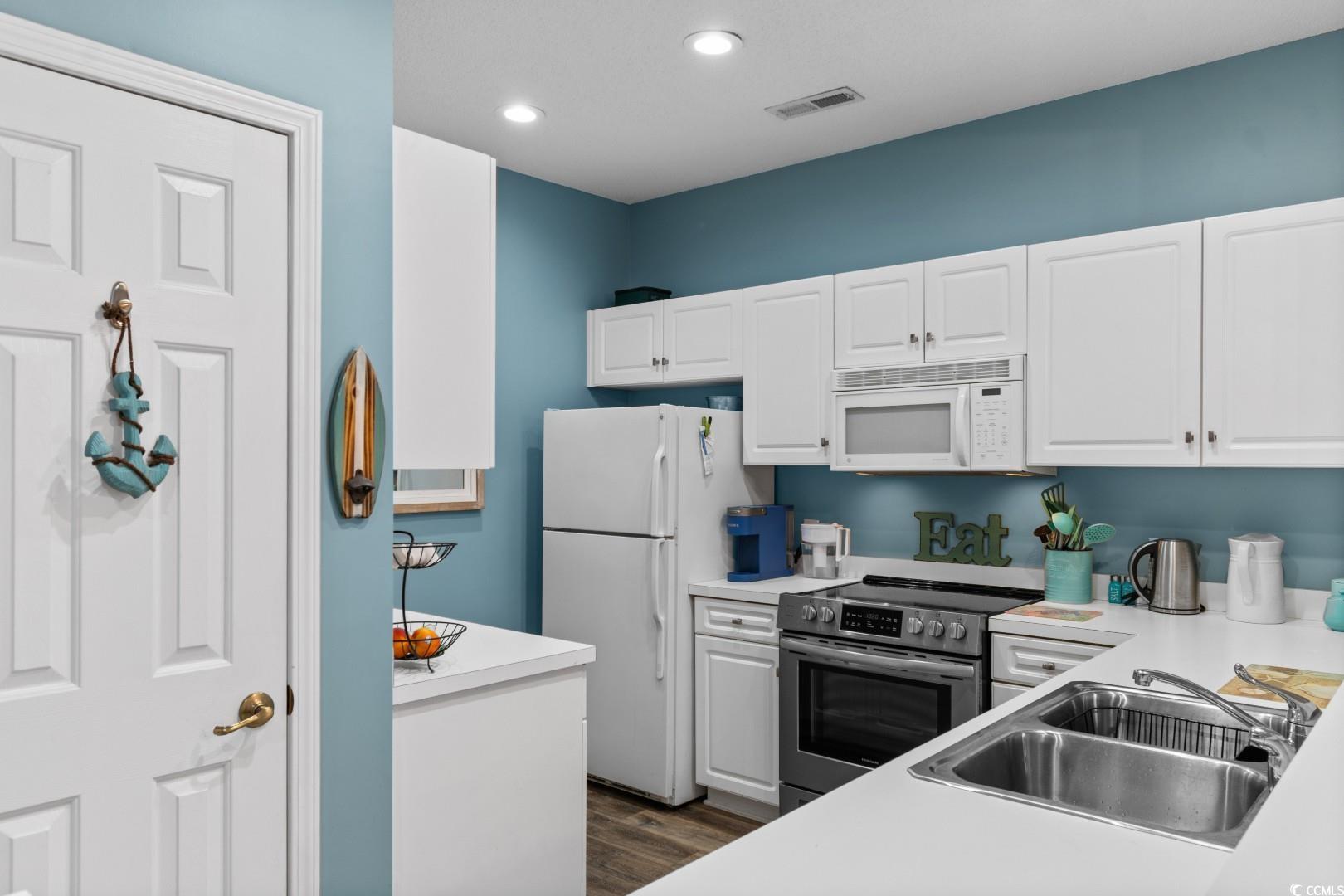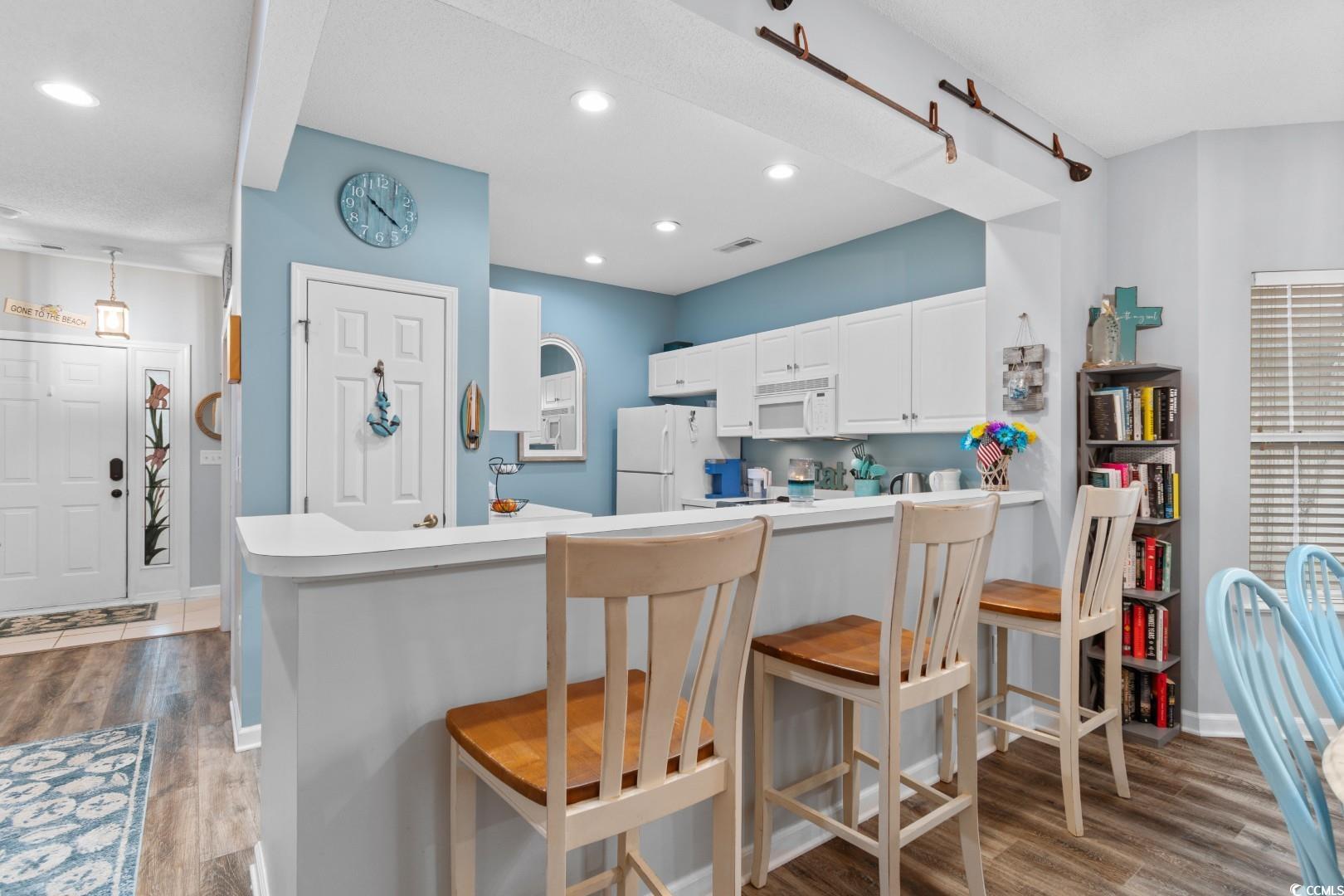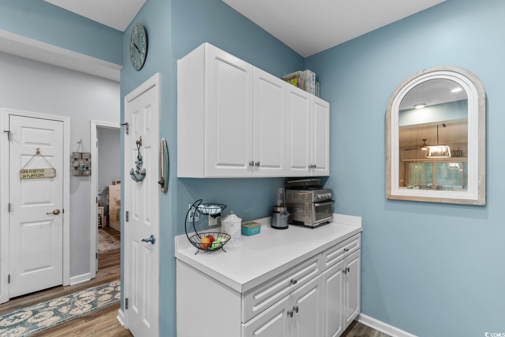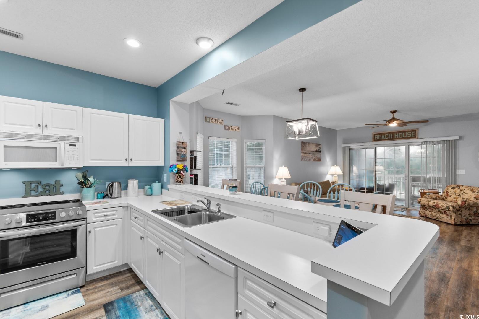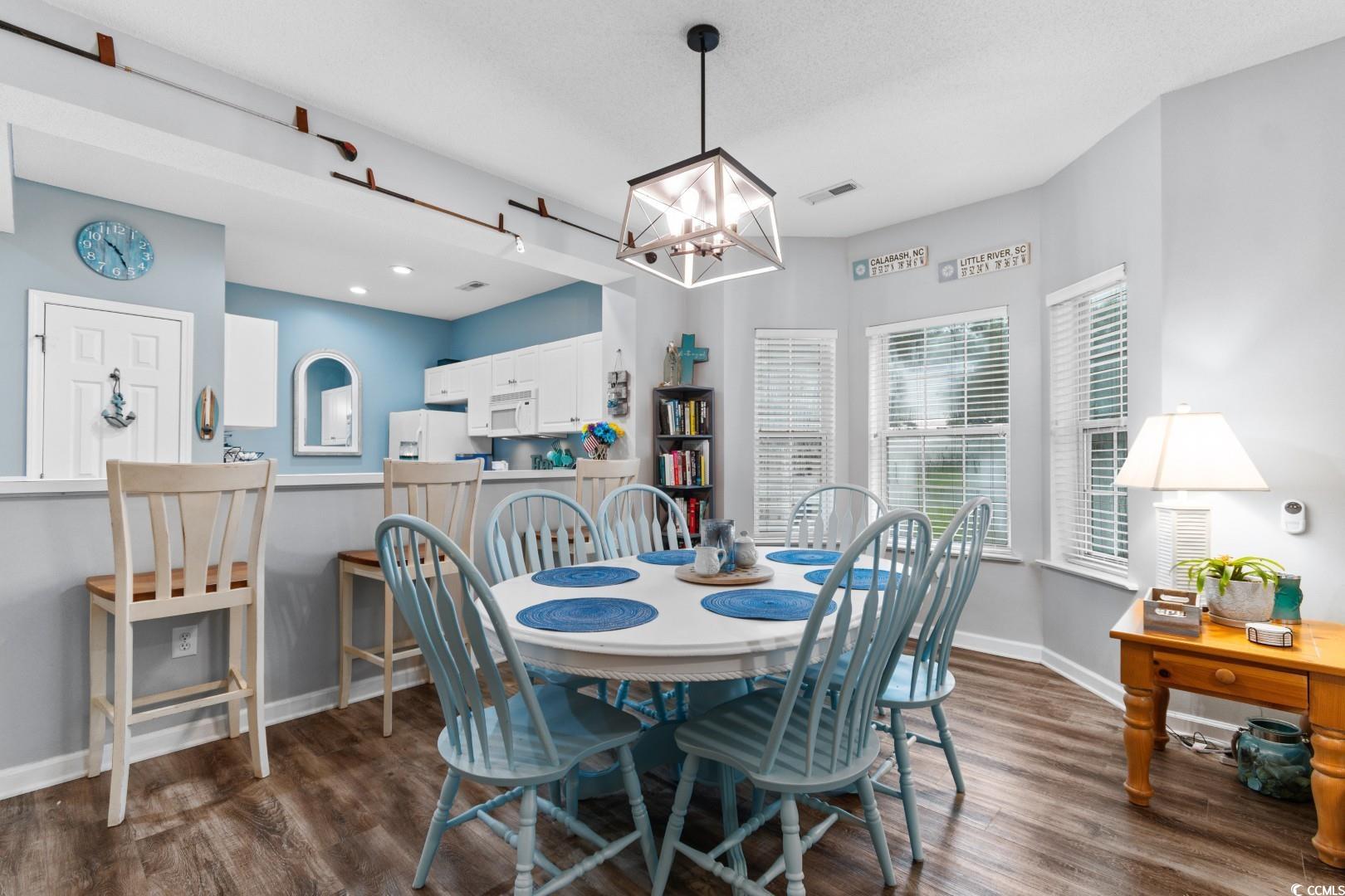 Welcome to 4449 Turtle Lane, a beautifully maintained 3-bedroom, 2-bathroom top-floor end unit nestled in the tranquil Moorings at Eastport Golf Community in Little River. This inviting, unique condo offers waterway views from every room, along with the perfect balance of peaceful privacy and convenient access to everything the coast has to offer. From the moment you enter, you'll be wowed by the bright, open layout with 9' ceilings, modern finishes, and an abundance of natural light. The spacious kitchen is ideal for both cooking and entertaining, featuring generous cabinetry, a large pantry, and a bar that opens to a charming dining area with a bay window. The open-concept living room flows seamlessly onto a screened-in porch where you can relax and enjoy rare sweeping views of both the Eastport Golf Course AND the Intracoastal Waterway. The primary suite offers a peaceful retreat with a large walk-in closet and a well-appointed bath. Two additional bedrooms provide plenty of space for guests, a home office, or hobbies, each with ample closet space. This condo has been lovingly cared for by its second owner and is in pristine, move-in-ready condition. Views like these are hard to find and truly one of a kind! Perfectly located just minutes from Sunset Beach, Cherry Grove, and all the shopping, dining, golf, and boating the area has to offer, this home offers easy access to major highways while still providing a quiet, residential feel. Whether you're looking for a full-time residence, a vacation getaway, or a smart investment, this top-floor condo has it all. Come experience the best of coastal living and schedule your tour today!