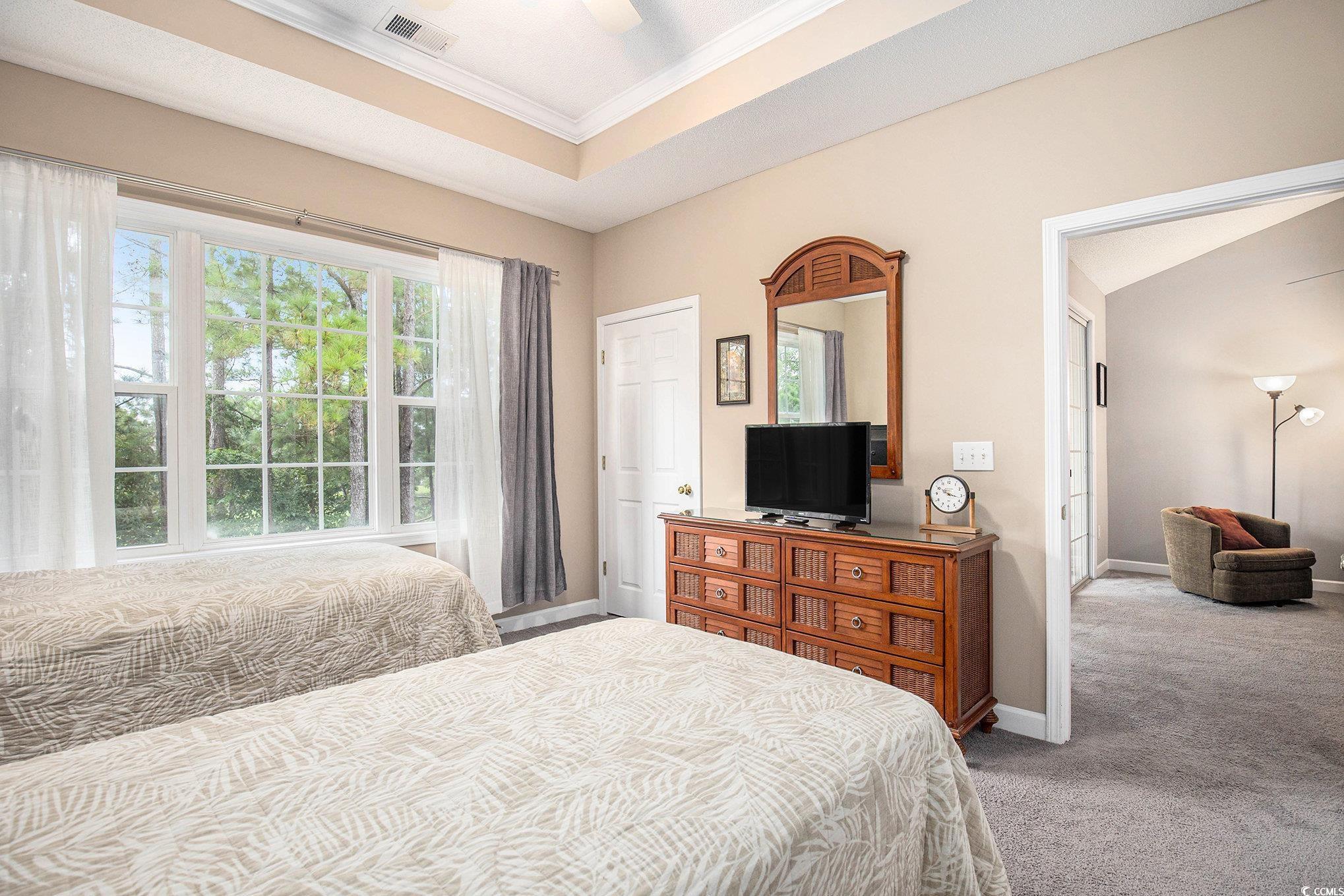 This spacious 2-bedroom, 2-bath, top-floor condo features vaulted and tray ceilings, an open-concept layout, and abundant natural light. Recent updates include fresh paint, new carpet, and a new water heater (2024). The bright living and dining areas flow into a well-equipped kitchen, while large sliding doors lead to a private balcony perfect for relaxing outdoors. The primary suite includes its own full bath, and both bedrooms are generously sized. This condo would make an ideal primary residence, vacation home, or investment property. Barefoot resort offers incredible amenities including a 15,000 sq. ft. waterfront pool, a marina, on-site dining, walking trails, and a private beach cabana with gated parking and seasonal shuttle service. Just minutes from the ocean and Barefoot Landing's shops, restaurants, and entertainment.