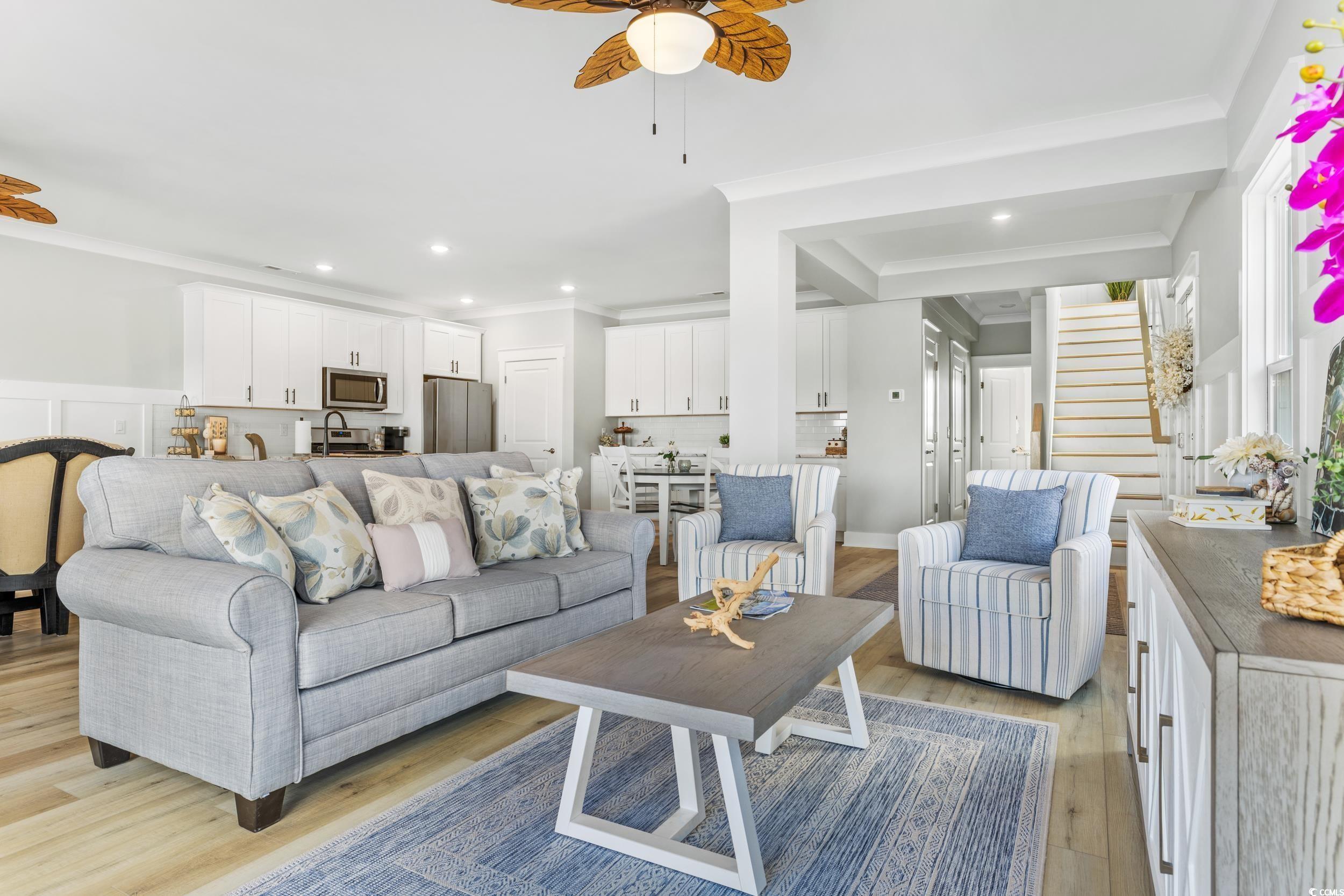 Discover Watertower Estates - Investors Dream! North Myrtle Beach Living at Its Finest. Welcome to Watertower Estates, a sought-after community in the heart of North Myrtle Beach, where coastal charm meets modern living. This beautifully designed 5-bedroom, 3.5-bath townhome offers the perfect combination of style, functionality, and investment appeal. True Townhome Ownership - Youll own the land beneath your home, and short-term rentals are permitted, offering flexibility whether you're looking for a full-time residence, vacation getaway, or income property. As a bonus, this is a natural gas community, something rarely found in the area. Step inside and youre greeted by high 9-foot ceilings and elegant luxury vinyl plank flooring. Crown molding upgraded 3"" window trim, and 5"" baseboards add a touch of sophistication throughout the home. The open concept living and dining area flows effortlessly into a stunning kitchen, complete with granite countertops, tile backsplash, stainless steel appliances (including refrigerator), a large breakfast island, and a generous walk-in pantry. The main floor also features a half bath, a spacious laundry room, and access to a finished 2-car garagecomplete with painted walls and hung drywall for a polished look. Upstairs, retreat to a luxurious owners suite featuring a sitting area, dual walk-in closets, double vanity, private water closet, and a tiled walk-in shower. Start your day with coffee on the private balcony overlooking the tranquil pond. Two additional bedroomsperfect for guests or family members. Residents enjoy low HOA fees that include access to the community pool, pickle ball courts, golf simulator, clubhouse, and scenic lakes. Just minutes from local shopping, top-rated restaurants, golf, and the beachand only a short drive to Barefoot Landingthis location truly has it all. Whether you're seeking a forever home or a smart investment, this townhome delivers on every level. Schedule your showing today and experience life in one of North Myrtle Beachs most desirable neighborhoods! PHOTOS ARE OF OUR MODEL, NOT REPRESENTATIVE OF HOMES CURRENTLY UNDER CONSTRUCTION!! THERE ARE MANY PLANS AND FINISHES TO CHOOSE FROM.