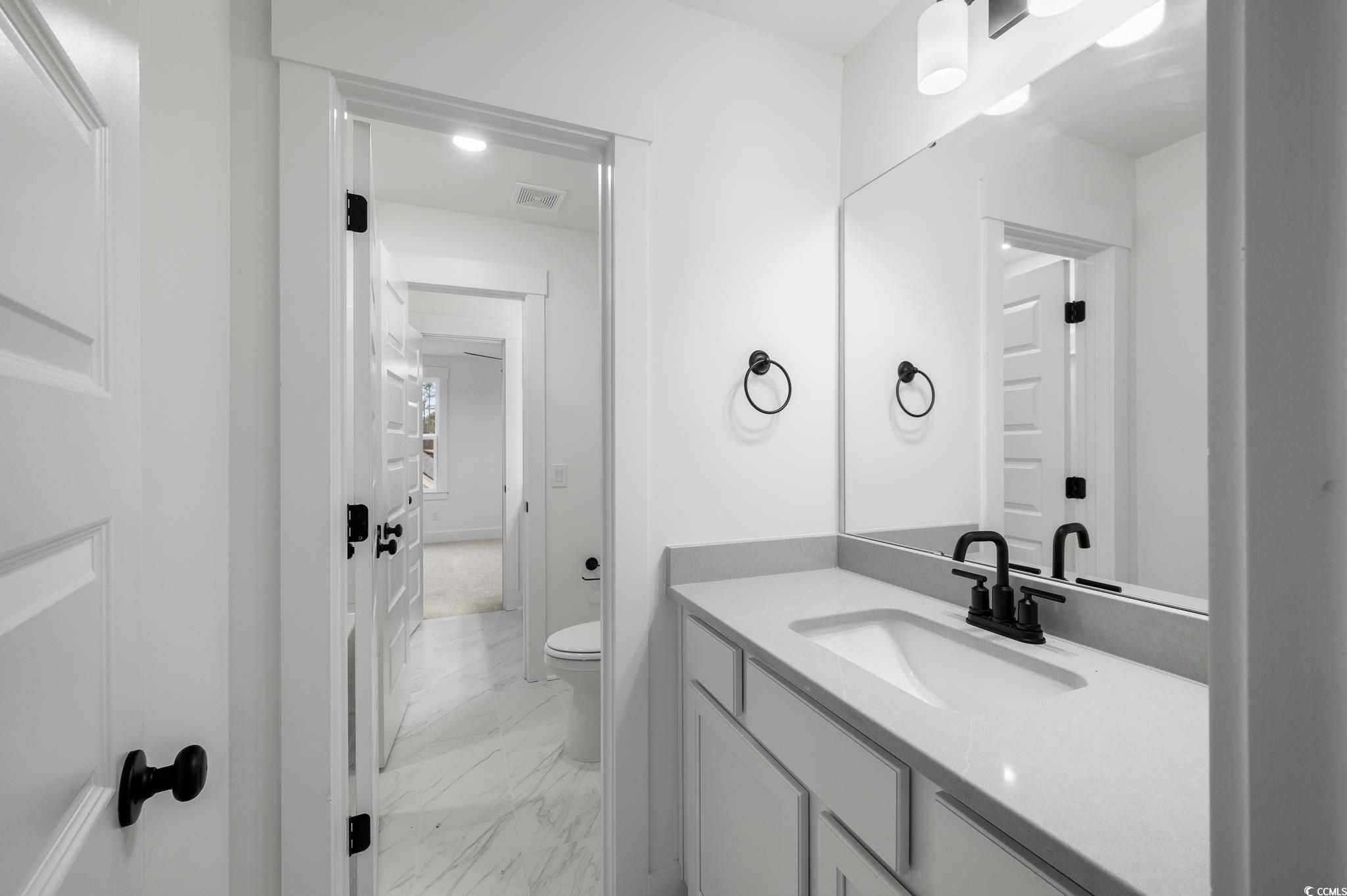 Welcome to Huckleberry Estates - where our Coastal Farmhouse Series brings a blend of charm and modern comfort to spacious half-acre homesites. Located 15 minutes from the heart of historic downtown Conway, residents can explore the Conway Riverwalk, unique local dining, and the scenic Conway Marina on the Waccamaw River. Plus, Coastal Carolina University is just a quick 20-minute drive away, making this an ideal location for homeowners seeking tranquility with easy access to local attractions. Just 40 minutes from the beaches of Myrtle Beach, Huckleberry Estates offers room to spread out, with plenty of space for storing boats, trailers, or any of lifes essentials. The epitome of what a multi-generational home is, the St. Ledger home plan is ideal for square footage seekers. This 3,090 square foot home features convenient master suite living on the main level with a flexible secondary living space on the upper level. In addition to an open kitchen with center island and eat- in breakfast area, the main level is also home to a flex space that can serve as a home office, formal dining room or den. Upstairs you find 4 generously sized bedrooms, and 2 full bathrooms, that embrace a large retreat space perfect for a media room, play room or secondary living room. As with many of our plans, if you find you need an additional bedroom & bathroom, turn the downstairs flex space into its own ""suite"" and add the 5th bedroom! **Photos are for representational purposes.**