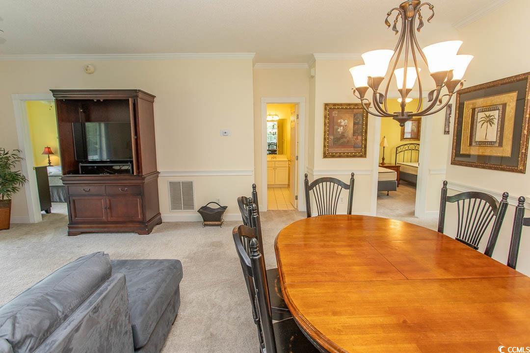 OPEN HOUSE SATURDAY 8/16 Noon to 2PM Welcome to Your Slice of Paradise at Magnolia Place! Wake up each day to the golden sun rising over Myrtlewood Golf Course, painting the greens with a soft morning glow. This rare end-unit condo isnt just a home - its a peaceful retreat where every detail invites you to slow down, breathe deeply, and savor the beauty around you. Inside, natural light dances across the open living space, filling the spacious living room, dining area, and kitchen with warmth. Whether youre sharing laughter over dinner, curling up with a book, or simply enjoying the quiet, this home wraps you in comfort. Step onto your private balcony, and youll be greeted by sweeping views of the lush fairways, a front-row seat to some of MyrtleWoods most scenic landscapes on the 8th hole of their gorgeous Pine Hills Golf Course. From sunrise coffees to sunset reflections, its the perfect spot to soak in the moment. Both bedrooms offer calm and tranquility, with the primary suite serving as your personal retreat, and the second bedroom ready to welcome guests or transform into a creative space of your own. As part of the beloved Magnolia Place community, youll enjoy multiple sparkling pools, perfect for cooling off on summer days or simply unwinding under the Carolina blue skies. And when youre ready for adventure, the beach, golf courses, shopping, and dining are just minutes away - bringing the best of Myrtle Beach to your doorstep. A rare first floor end-unit. An unforgettable view. Furnished and ready to enjoy. A home that feels like a vacation every single day.