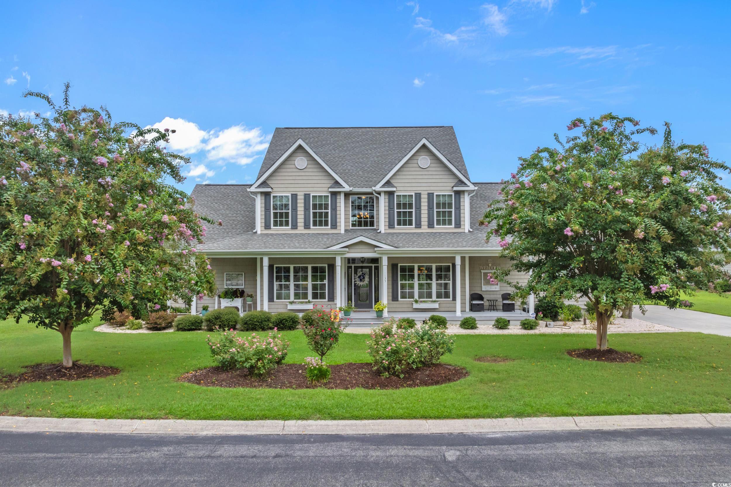Back on the market at no fault of the sellers. Don't miss it this time. Welcome to this stunning custom-built Low Country home located in the charming Windsong community! Enjoy Southern living at its finest with a huge front porch, and an enchanting backyard retreat featuring a covered porch, paver patio, fire pit, koi pond, and meticulously landscaped grounds. This 4-bedroom, 3.5-bath beauty offers an ideal layout with a first-floor primary suite featuring direct access to your private backyard oasis. Inside, you'll find soaring cathedral ceilings in the main living area, complete with custom built-ins and a cozy gas fireplace, plus a Juliette balcony that adds character and charm. The home also includes an office with glass doors and a spacious bonus room, perfect for flexibility. The first floor and backyard have hardwired speakers throughout to play the radio. There is a security system and hurricane fabric for peace of mind. Engineered hardwood floors flow throughout the main living spaces, adding warmth and elegance. Located just minutes from Little River, Calabash, and North Myrtle Beach, youre close to top-notch dining, shopping, golf, and entertainment! Be sure to check out our 3D immersive walk through tour and professional property video.