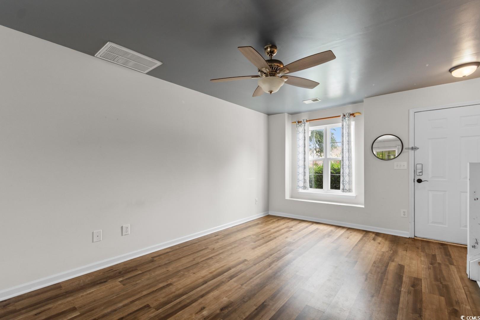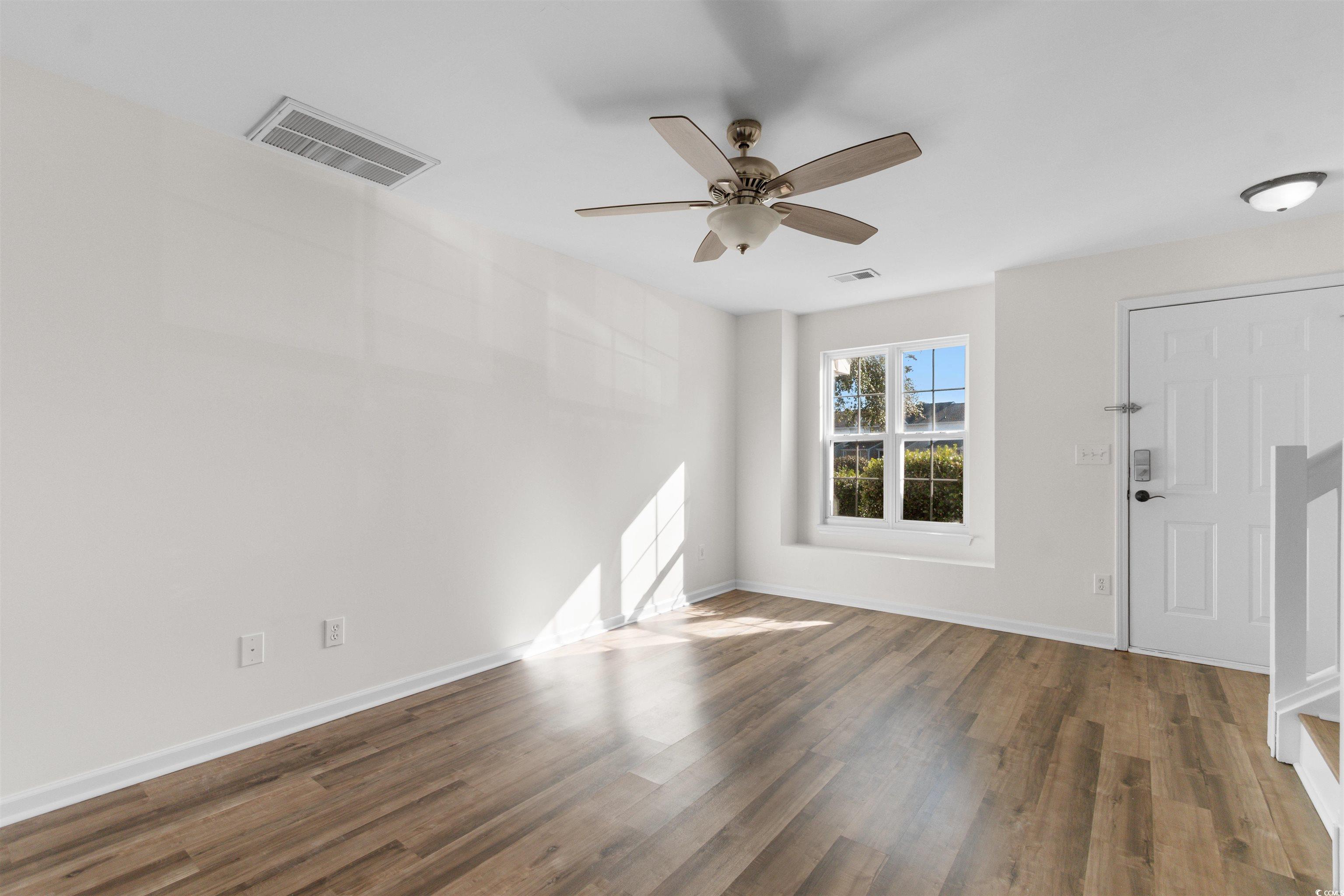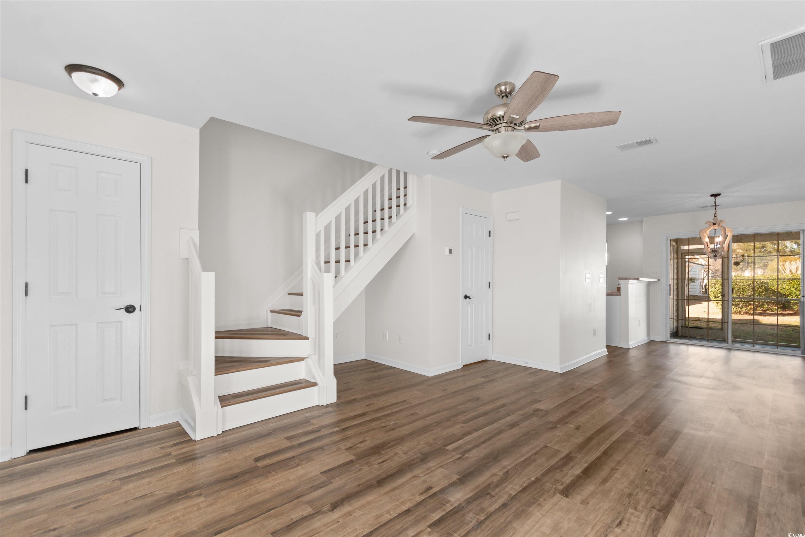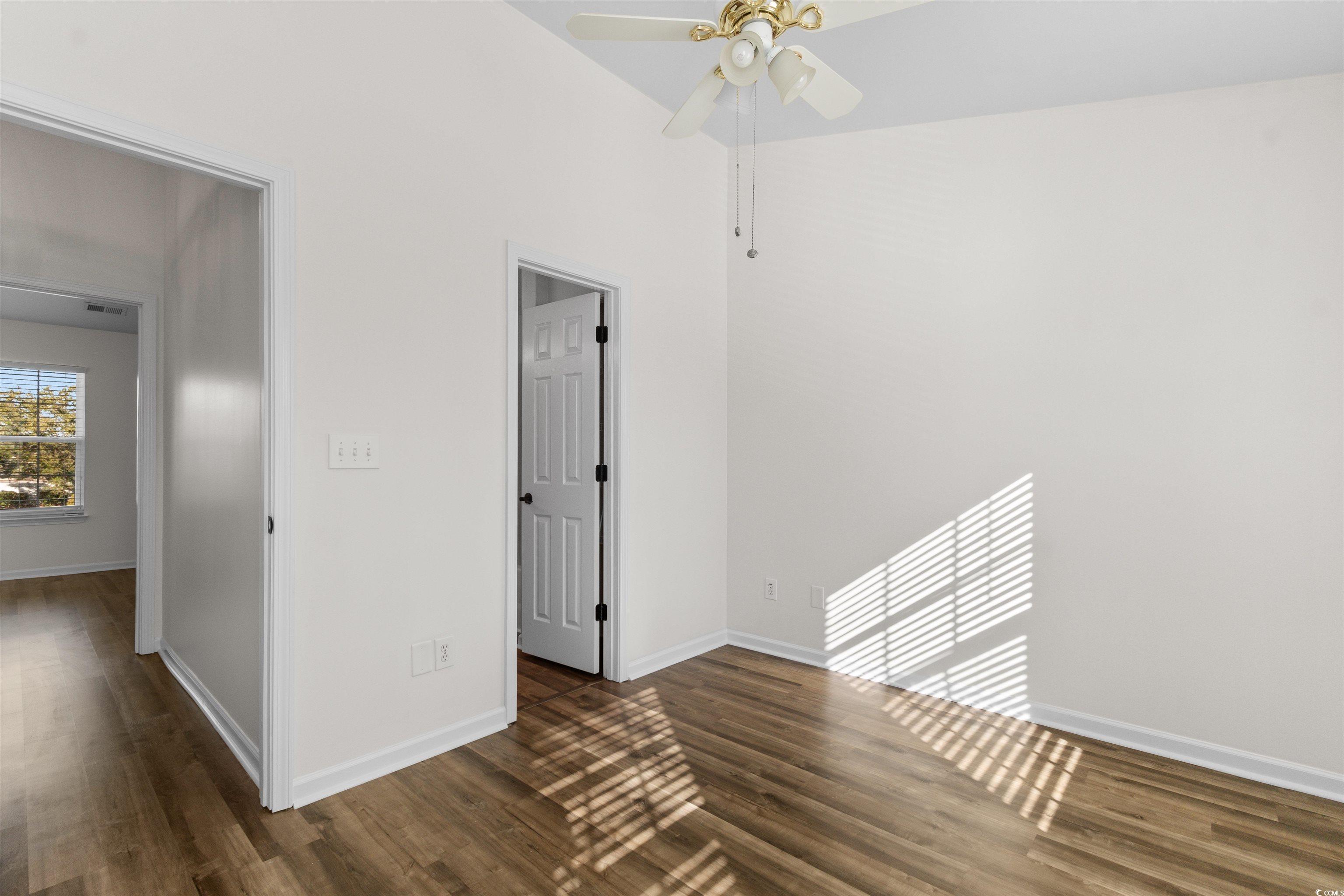 Welcome to Windsor Gate, a charming townhome community in the highly sought-after Market Common area of Myrtle Beach. This splendid two-bedroom, 1.5-bathroom residence offers the perfect blend of comfort and convenience, featuring a thoughtful two-story layout. The main living areas are on the first floor, with a spacious living room and a kitchen that includes a full set of appliances and a breakfast bar. The adjacent dining area opens to a private, screened-in back porch through sliding glass doors, creating a seamless indoor-outdoor flow. A convenient half-bath is also on this level. Upstairs, two well-appointed bedrooms share a Jack and Jill style bathroom. Both bedrooms boast vaulted ceilings; one includes a walk-in closet, and the other has two standard closets. As a resident, you'll have access to fantastic community amenities, including a refreshing pool and a scenic walking path around a beautiful lake. The prime location places you just a 5-minute drive from the beach at Myrtle Beach State Park. The vibrant Market Common is also just a short distance away, offering an array of restaurants, shops, a movie theater, and a bowling alley, ensuring you're never far from the action.