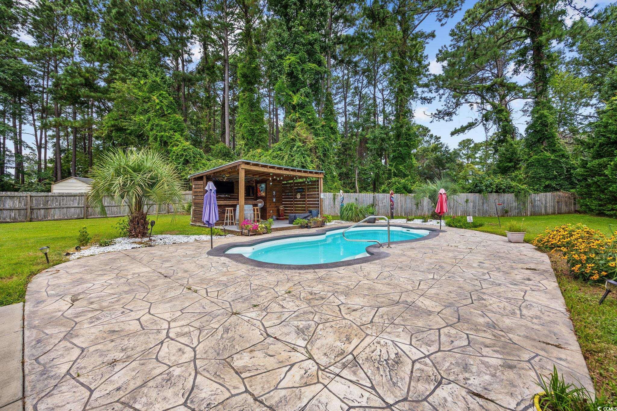 Experience the perfect blend of Southern elegance and modern convenience in this rare Lowcountry gem, ideally located just minutes from the Intracoastal Waterway. Resting on nearly half an acre, this exceptional home features an open, light filled floor plan with soaring vaulted ceilings and a sought-after first floor master suite complete with generous walk-in closets and a beautifully renovated bathroom. A detached two-car garage offers a private apartment above, featuring a bedroom, full bath, and living area ideal for an in-law suite, Airbnb income, or private guest retreat. Outside, your personal oasis awaits with a sparkling pool, lush landscaping, and a tiki bar designed for unforgettable gatherings. Perfectly situated in Cypress Bay Estates, youll be just steps from the Little River Waterfront home to the Big M Casino boat, fishing charters, and charming waterfront dining and only minutes from North Myrtle Beachs shopping, entertainment, and easy Hwy 31 access. With the NC border and pristine beaches just a short drive away, this home offers both relaxation and accessibility. Dont miss the chance to make it yours schedule a private showing today and discover the best of Coastal Carolina living.