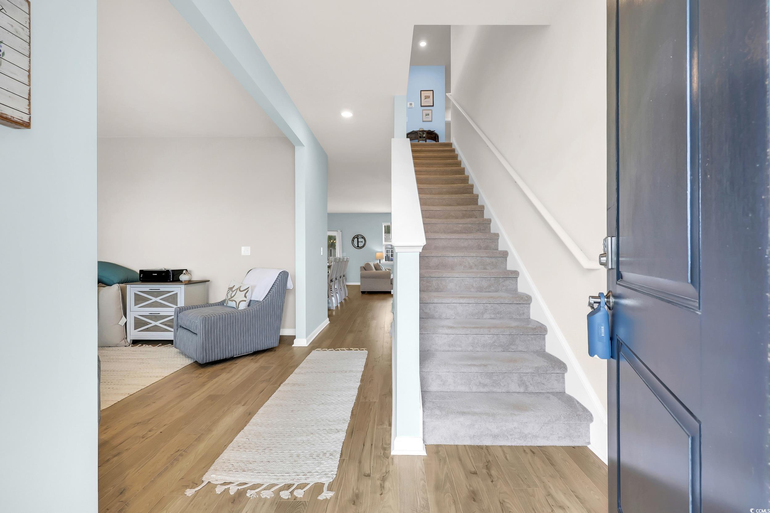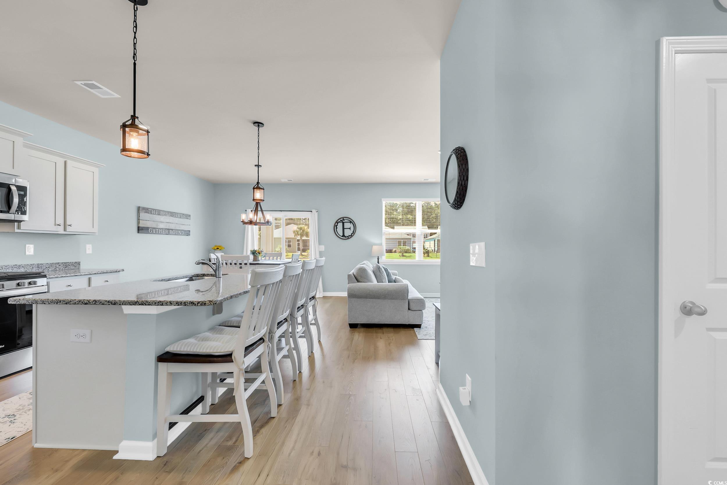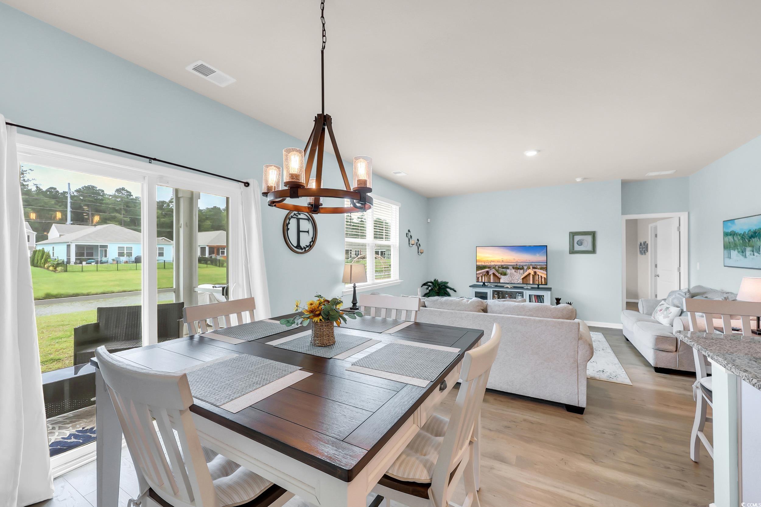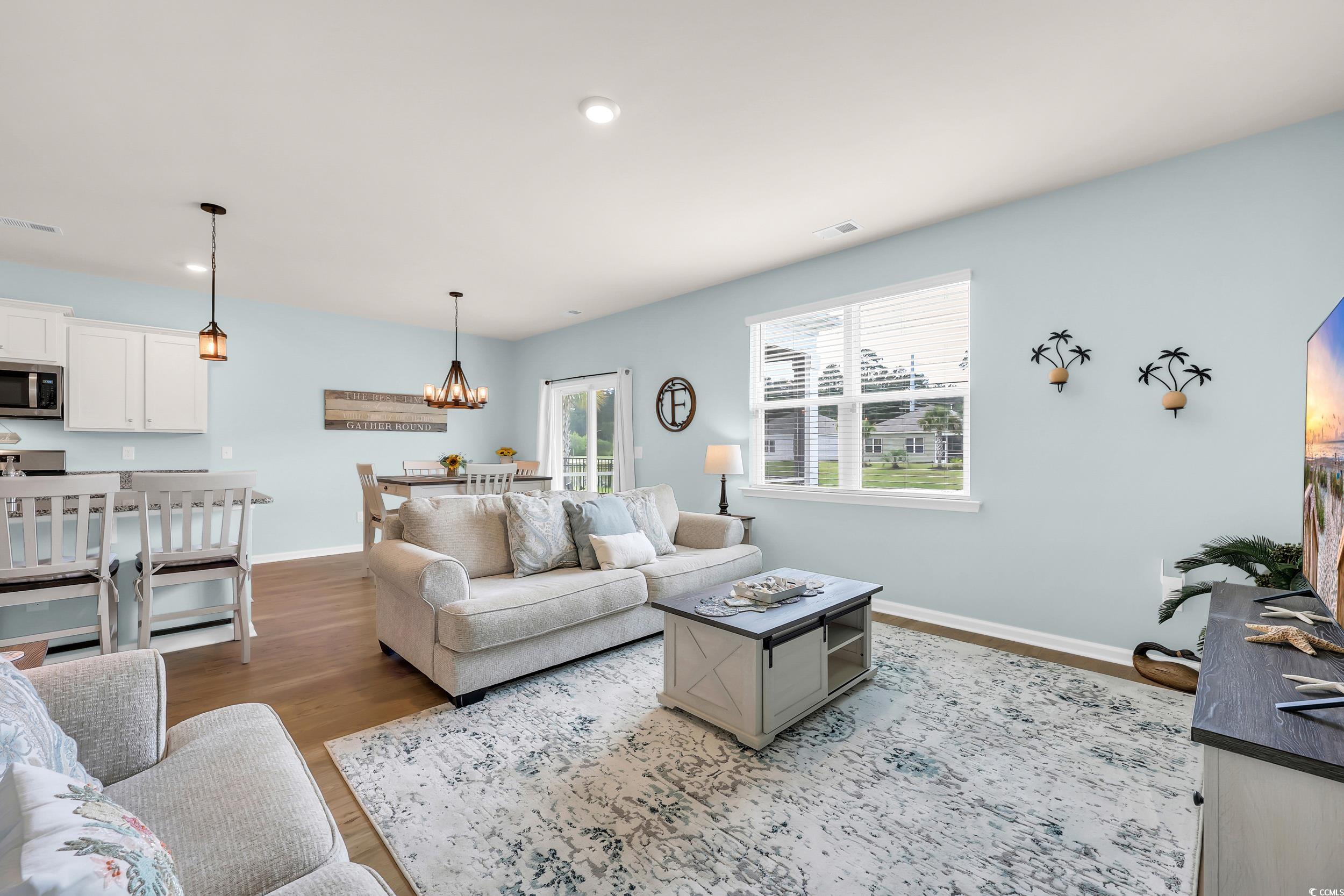 Discover this spacious and beautifully maintained 5-bedroom, 3.5-bath home with tranquil water views, located in the desirable Market Common area of Myrtle Beach. Built in 2021 in the natural gas section of Meridian, this home offers comfort, versatility, and stylish modern design. The open-concept layout features a bright kitchen with stainless steel appliances, a large island, and a walk-in pantry. A flex room on the first floor provides options for a home office, formal dining, or additional living space, while the first-floor primary suite adds convenience and privacy. Upstairs, you'll find additional bedrooms plus a spacious bonus roomideal for media, hobby space, or guests. Step outside to a covered porch and extended patio with serene water views, offering a peaceful setting for outdoor living. As part of the Meridian community, enjoy access to resort-style amenities including a pool, hot tub, fire pit, indoor pickleball courts, and walking/biking trailsall just a quick golf cart ride to nearby shopping, dining, and the beach. Schedule your showing today to experience the space, style, and location this home has to offer!
