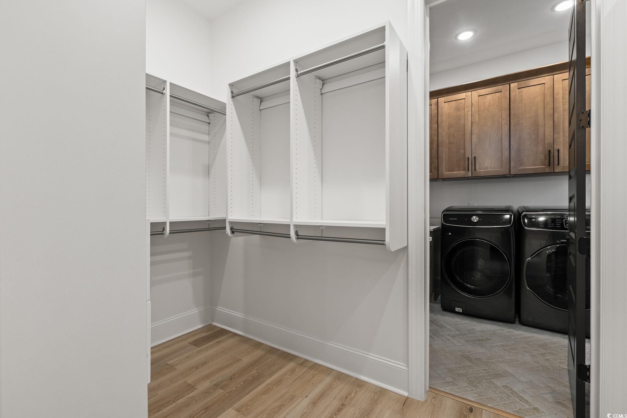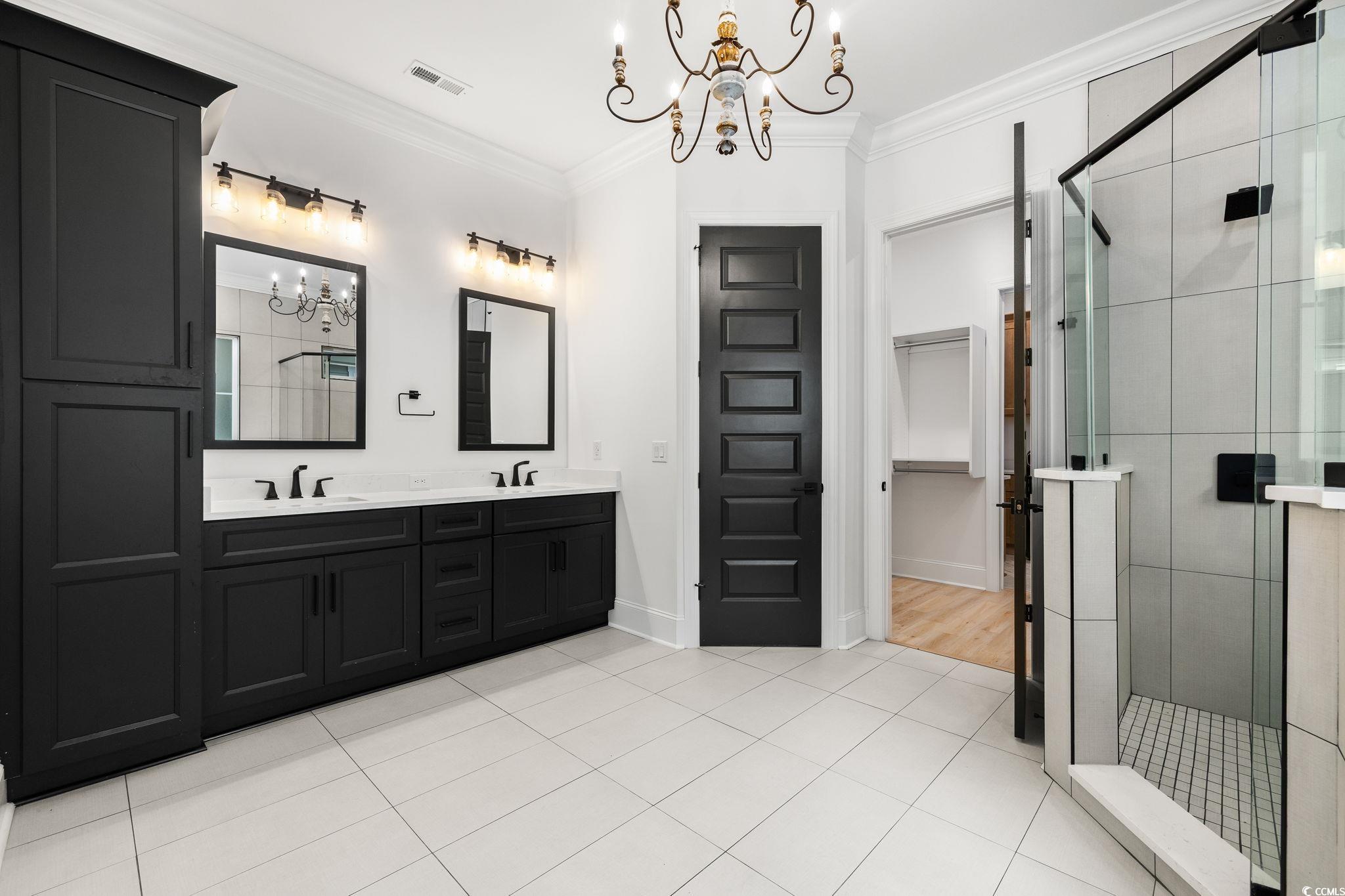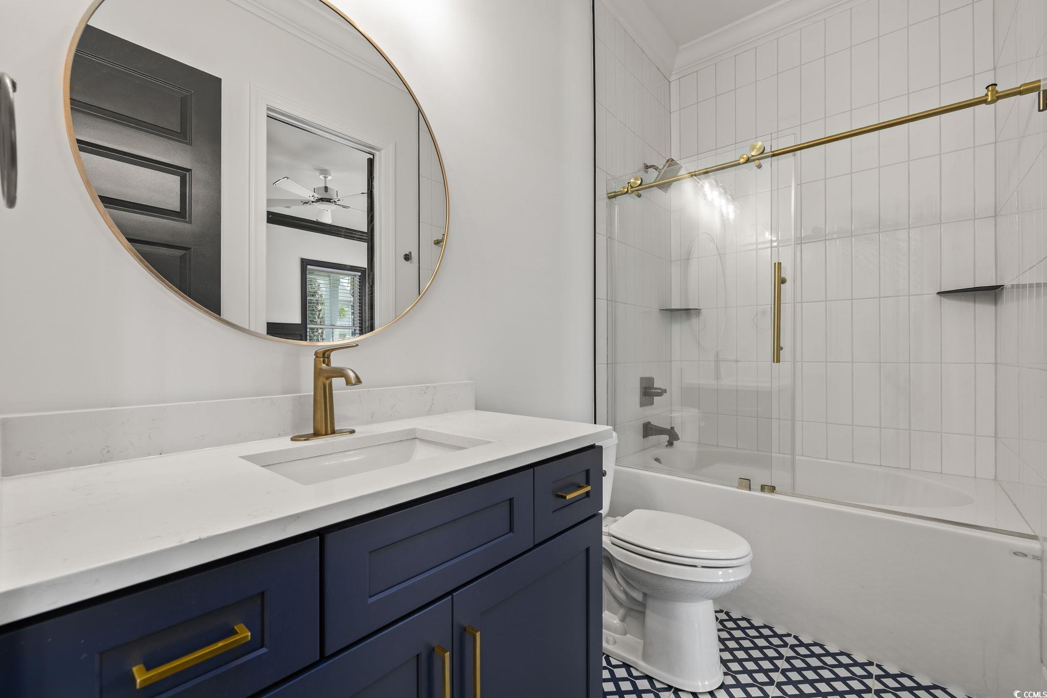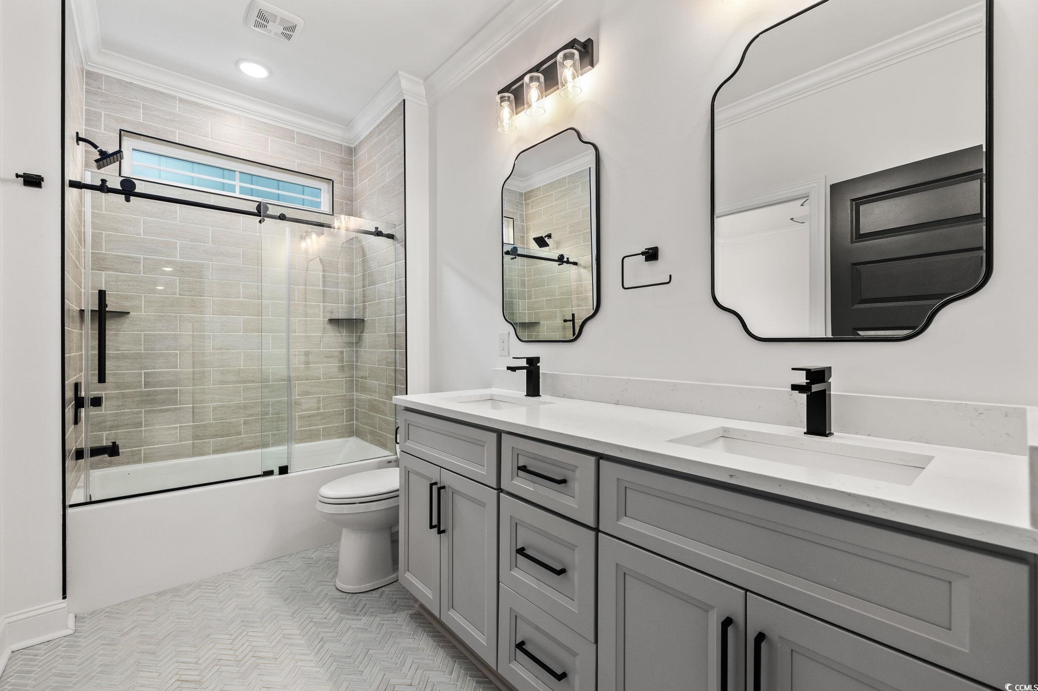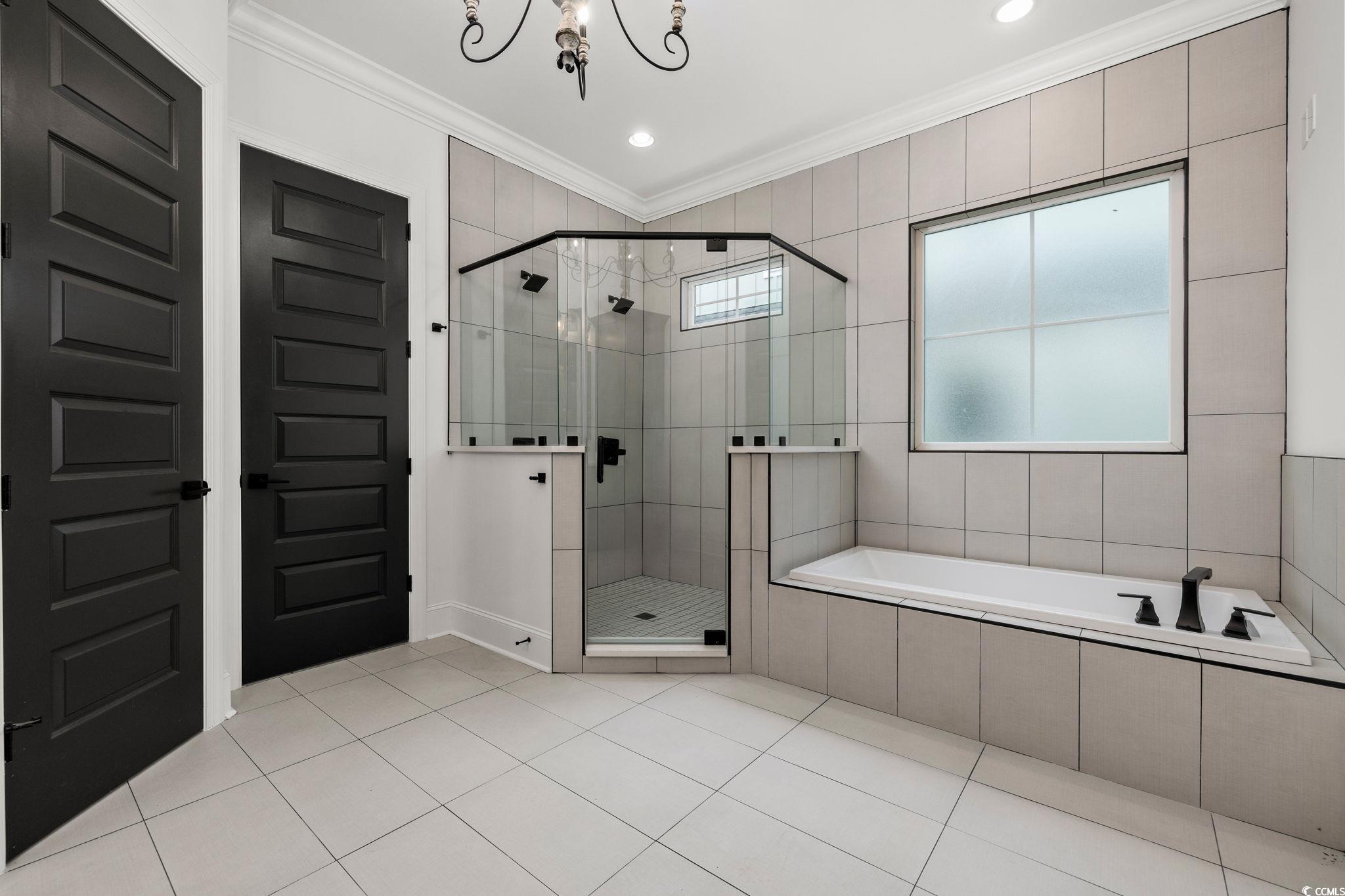Step into this stunning and nearly new 6BR - 4BA modern home located in the desirable Waterway Palms Plantation, nestled within the award-winning Carolina Forest school district. With easy access to both Highway 31 and 17, and just a short 10-minute drive to the beach, this home offers the perfect balance of tranquility and convenience. From the charming front porch and attached two-car garage, youre welcomed into an impressive foyer with gleaming hardwood floors and wainscoting accents. Just off the entryway, you'll find a spacious guest suite complete with its own ensuite bath featuring tile floors and a sleek glass-door shower/tub combo. The heart of the home is the inviting living room, where a wood-beam ceiling, custom built-in shelving and cabinetry, an electric fireplace, and a full wet bar with wine fridge set the stage for effortless entertaining. Large sliding doors open to a screened-in back porch with wood ceiling and TV mount, creating a perfect transition to outdoor living. The dining area features a tray ceiling and is surrounded by windows that offer peaceful wooded views. In the gourmet kitchen, no detail has been overlooked, from Corian countertops to the custom tile backsplash and stainless-steel appliances. The kitchen is a chef's dream, complete with striking black hardware, a farmhouse sink, and an island with a breakfast bar perfect for serving weekend brunch. There is an extra large pantry with custom shelving to tie everything together. The luxurious first-floor primary suite boasts a beam ceiling, custom accent wall, walk-in closet with built-in shelving, and a spa-like ensuite bath with dual vanities, a separate water closet, and a fully tiled custom shower with double shower heads and a privacy window. Connected to the owners suite is a stylish laundry room with herringbone flooring, sink, and cabinetry which adds to the homes functionality. Upstairs, you'll find three additional bedrooms, two with walk-in closets (one featuring its own ensuite bath), plus a large bonus room and additional storage space. Enjoy peaceful evenings on the back patio featuring a built-in brick surround for the gas grill, overlooking the fully fenced backyard with mature trees. This exceptional property offers modern elegance, thoughtful details, and a quiet wooded backdrop and all just minutes from the coast and conveniences.