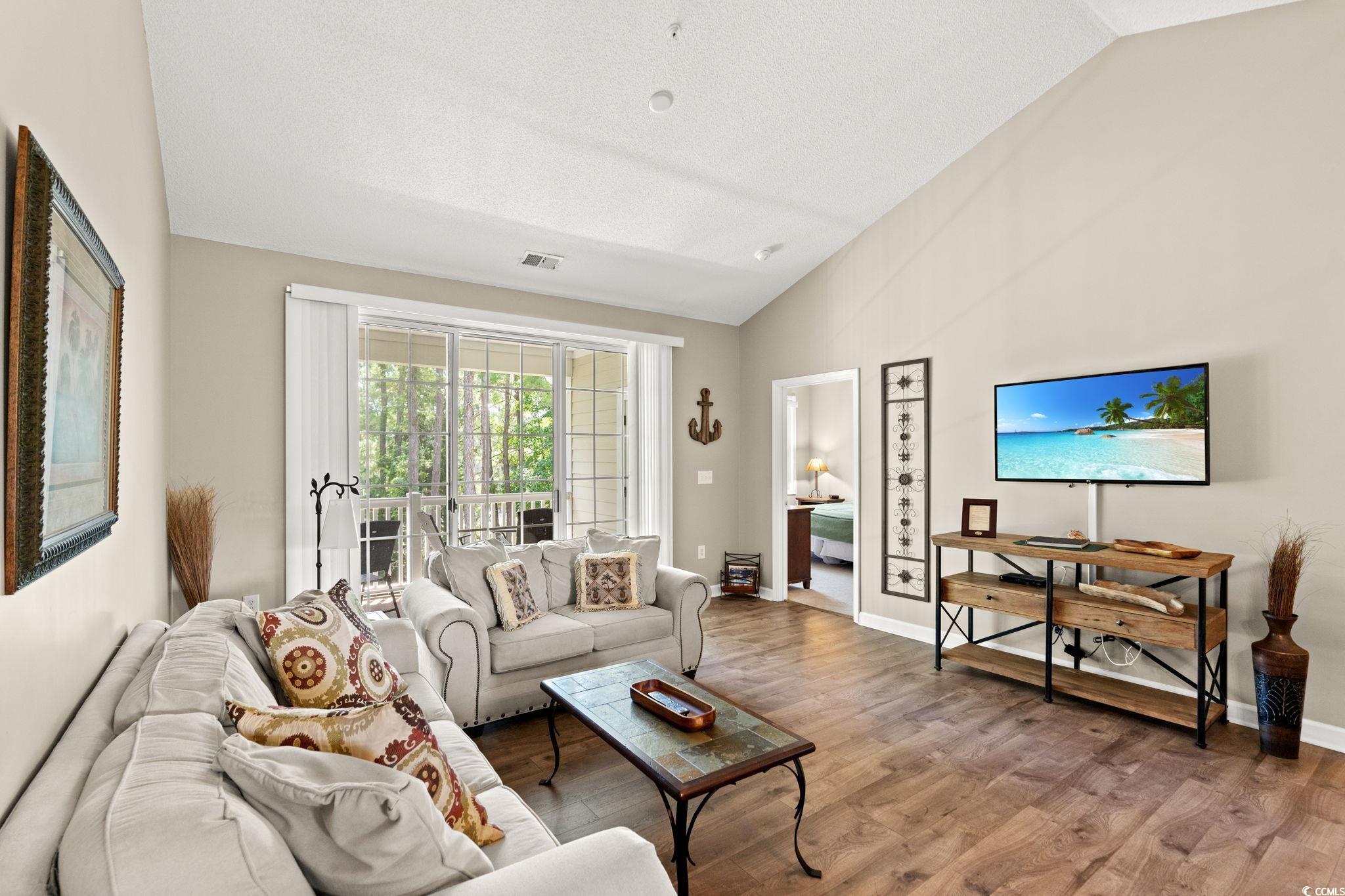 DON'T MISS OUT ON A GREAT INVESTMENT OPPORTUNITY! Welcome to the highly sought-after gated community of River Crossing at Barefoot Resort! This is a furnished 2 bedroom, 2 bathroom condo that can be a great investment property, second home, or even your own personal sanctuary. The open and bright living room with upgraded flooring has high vaulted ceilings. The sliding glass door invites abundant natural light. In the kitchen you'll find new appliances, plenty of countertop space for all your needs and ample cabinet storage to keep your kitchenware organized and easily accessible. The River Crossing is a Barefoot Resort golf villa neighborhood that is located between the Greg Norman course and the Davis Love III course and has its own community pool. Barefoot Resort & Golf is a World-Class 2300 acre master-planned community located about 1 miles from the Atlantic Ocean and bordering the Intracoastal Waterway. As a resident, you'll also enjoy access to all the exclusive amenities at Barefoot Resort; a private beach cabana with complimentary shuttle service, [in the summer season]multiple additional pools, fitness center, tennis courts, and much more!. Just a short drive to Barefoot Landing, Alligator Adventure, Duplin Winery, and great shopping and dining.