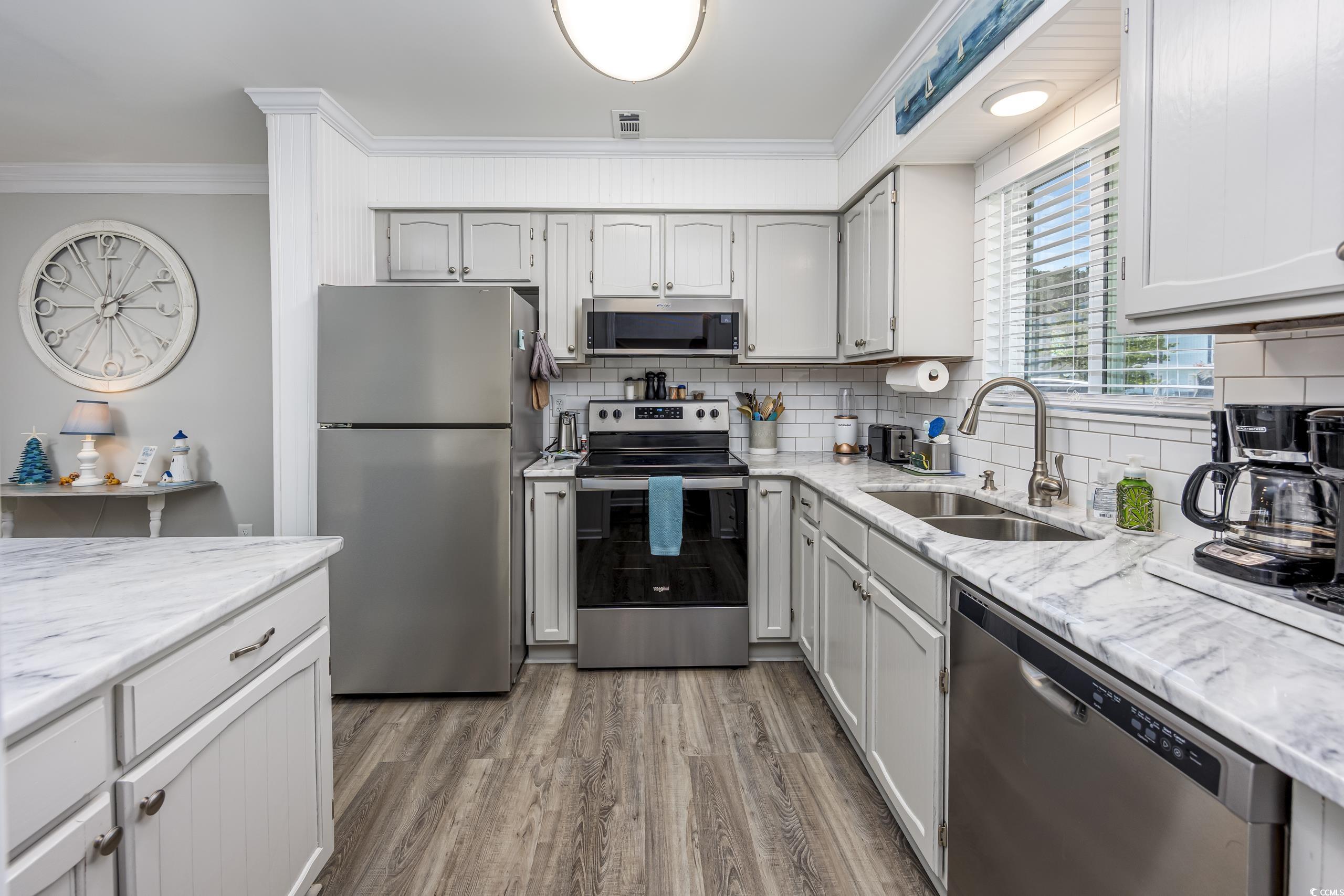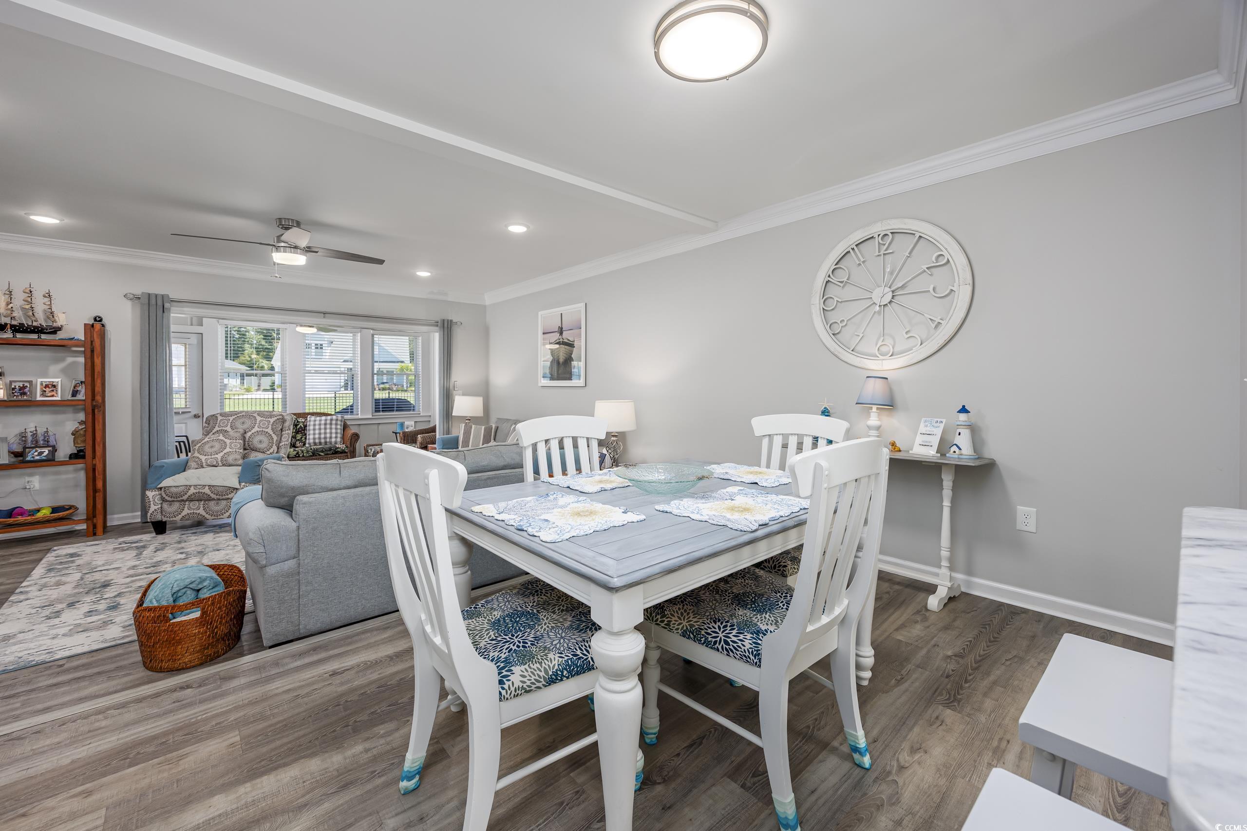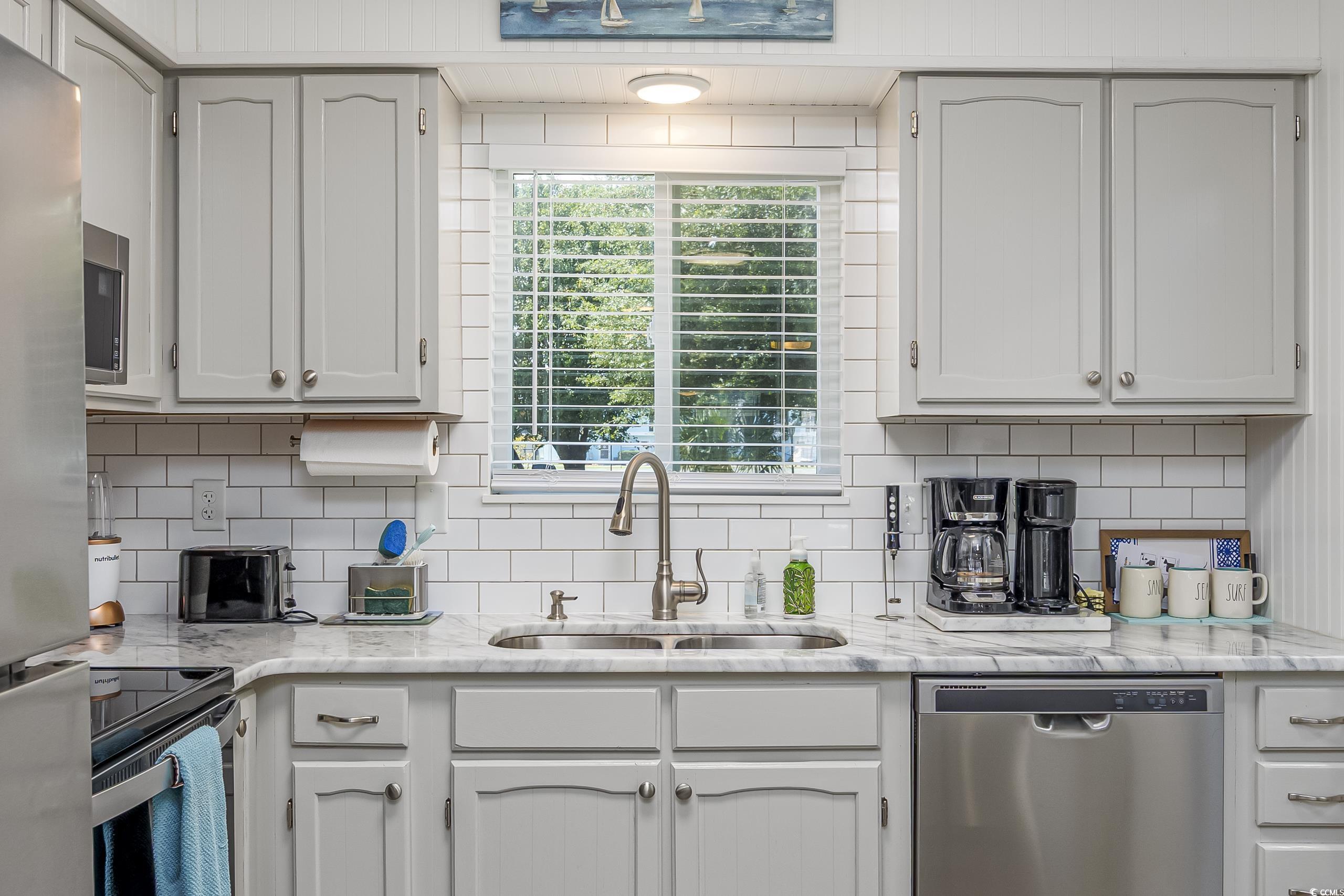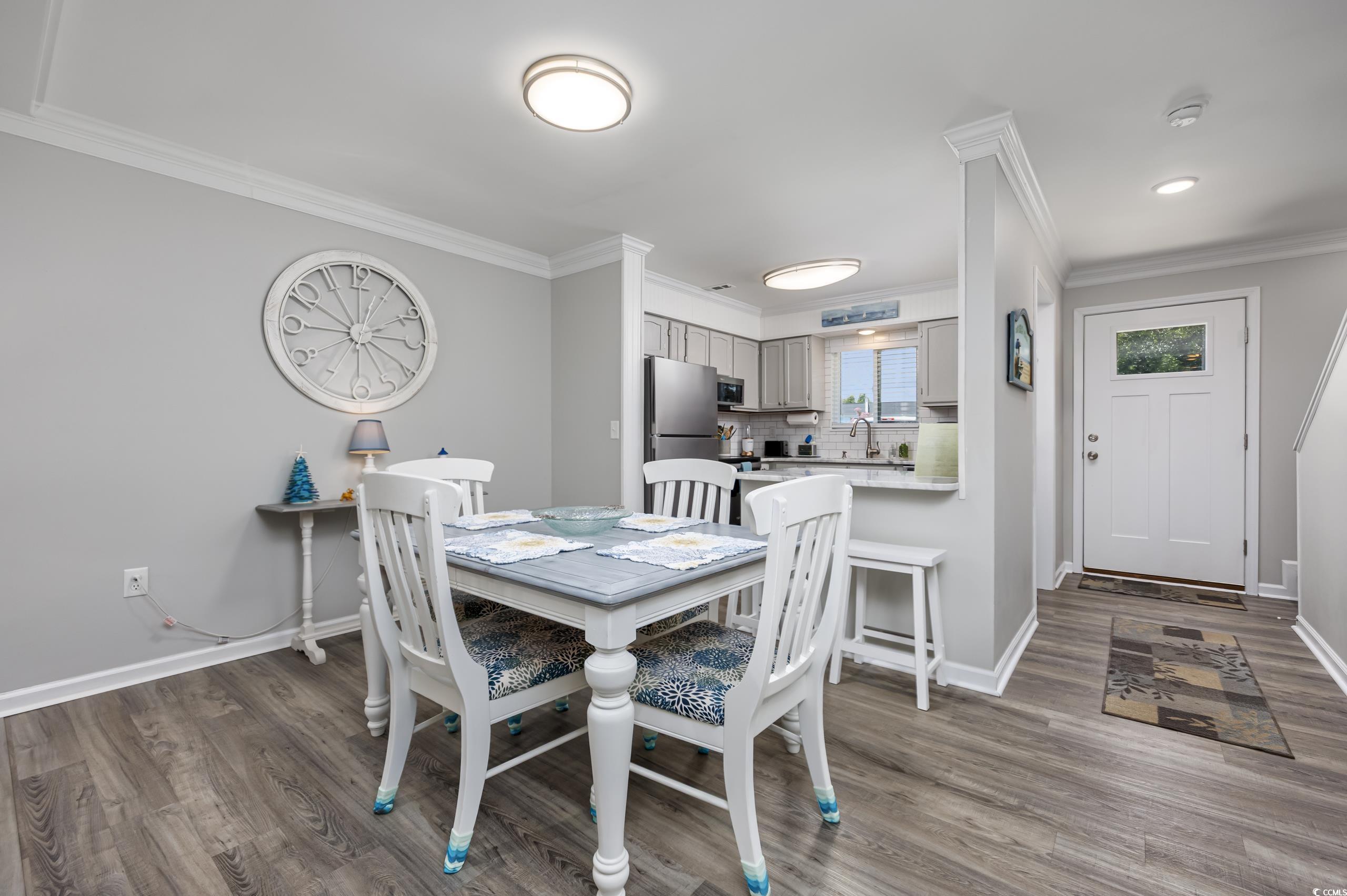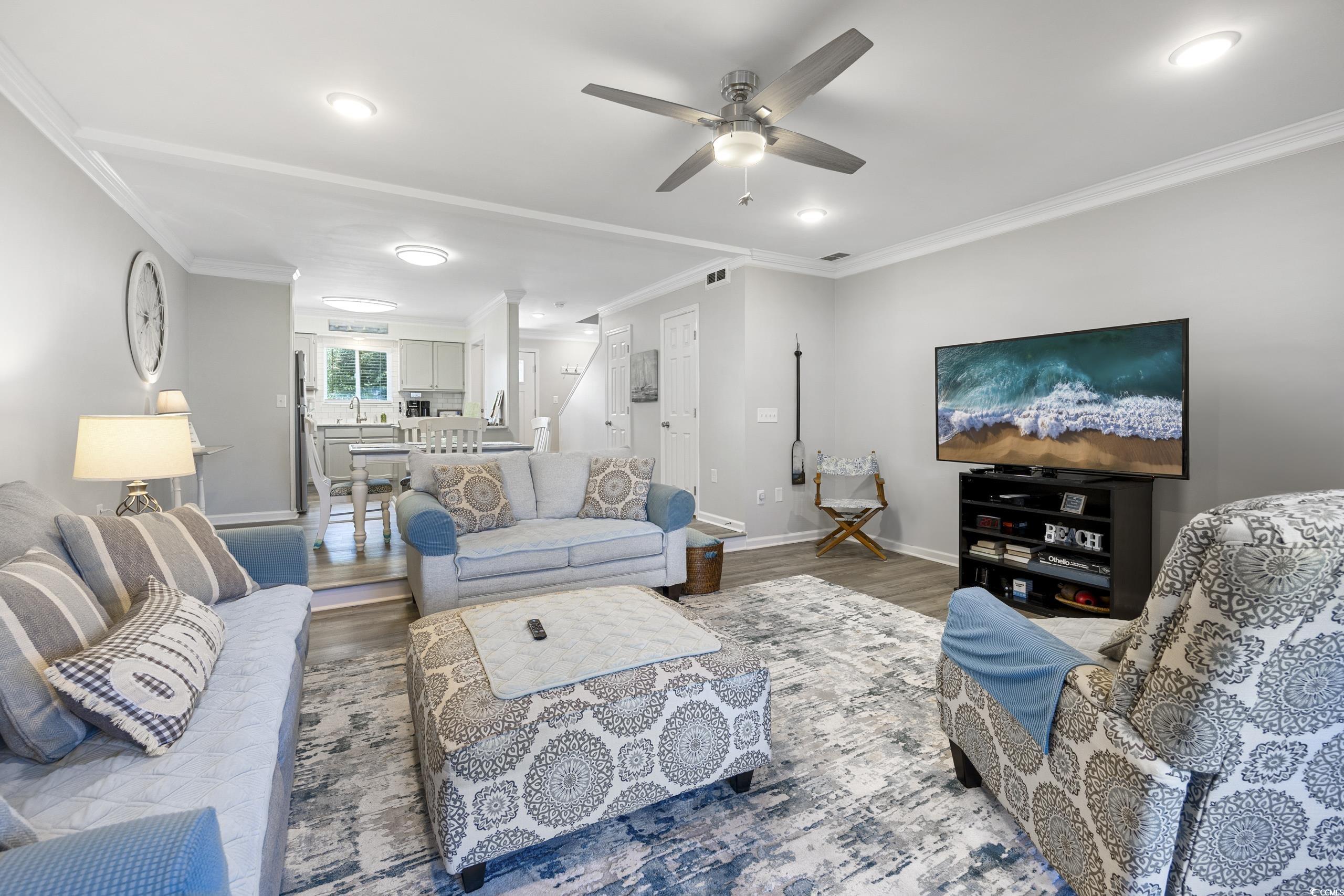 Welcome to 812 Villa Dr in Robbers Roost, a beautifully updated 2BR/2.5BA townhouse style condo in the Tilghman Estates section of North Myrtle Beach. Everything has been updated in the past 4 years. ASK FOR A COMPREHENSIVE LIST OF UPDATES. The beautiful kitchen features Quartz counters, stainless appliances, new backsplash and beadboard accents! The spacious living room/dining room has new LVP flooring, has been freshly painted, and is light and airy. The powder room off the living area has been updated. The sliding door from the living room to the Carolina room has been removed, allowing the flow between rooms to be uninterrupted and flooding the living spaces with natural light. All new double hung windows and doors allow for peace of mind. Out back you will find a new grilling patio with pavers and an open grassy area for family enjoyment. Upstairs you will find two spacious bedrooms, each with en suite bathrooms that have been updated, with large closets and new carpet. Off the primary bedroom through a new sliding door is a large balcony with new composite decking. It's a nice, private place to enjoy the sunrise or an evening beverage. Robbers Roost amenities include an outdoor pool and clubhouse, tennis courts, and shuffleboard. Golf cart to the beach or to shopping at Coastal Town North Shopping Centers many shops and restaurants. Main St is an easy few blocks away as well. This is an ideal location, peaceful and quiet. Close enough to the beach and the area amenities, while feeling residential in nature. Don't wait to have a look at this one. You will be pleased with all 812 Villa Dr has to offer.