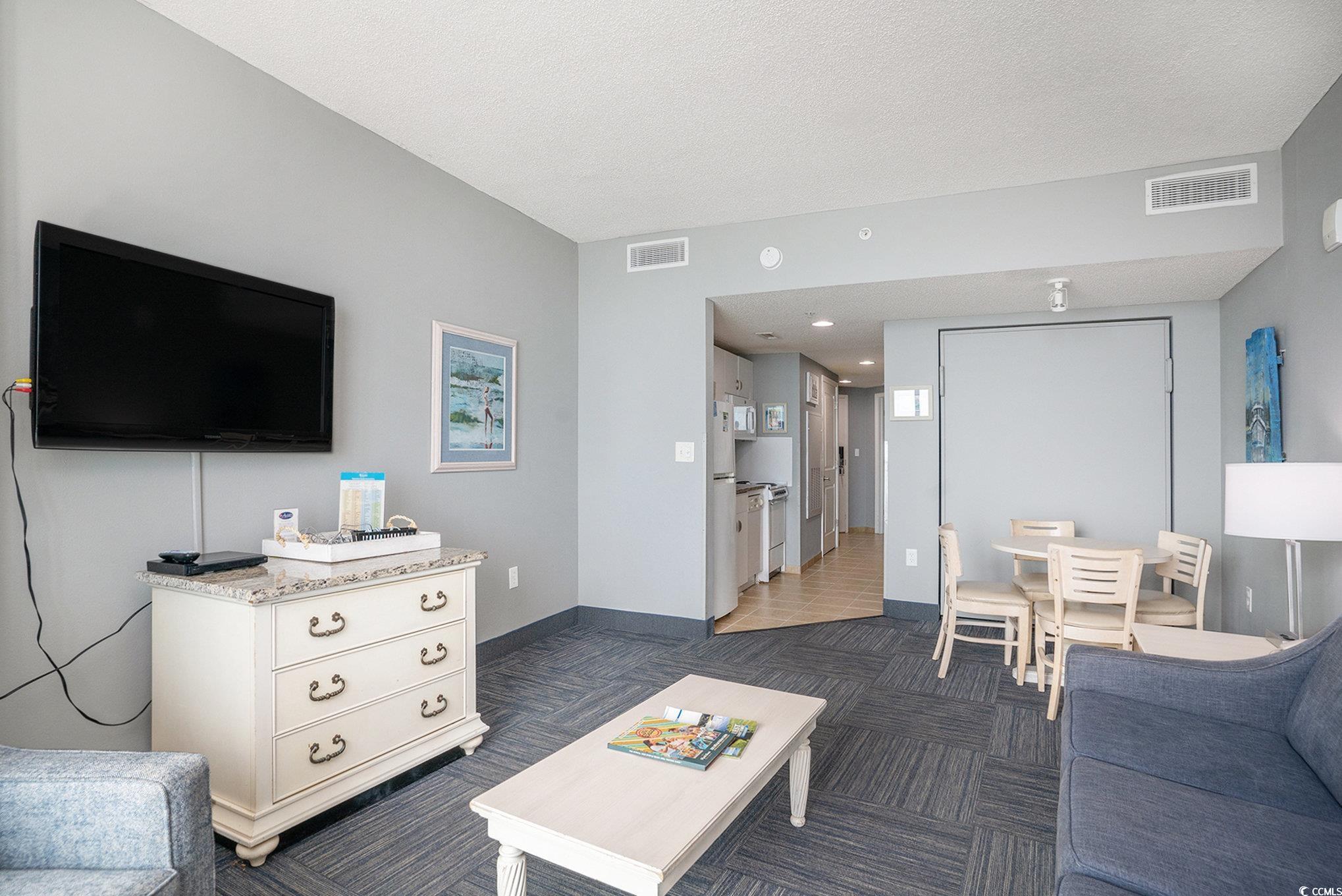 Direct oceanfront penthouse one-bedroom condo in The Avista Resort, located in the Ocean Drive section of North Myrtle Beach. This condo features high ceilings exclusive to the penthouse level, which really open up the already spacious floor plan. From the private balcony, youll enjoy sweeping ocean views. The condo is fully furnished and accessorized, with personalized artwork and tasteful decor added by the owners. Interior features include granite countertops in both the kitchen and bathroom, a fully equipped kitchen, and a washer/dryer combo. Enclosed climate-controlled corridors a rare feature in North Myrtle Beach provide extra comfort and convenience as you make your way to and from the resort's indoor pools and amenities. Avista is a direct oceanfront resort consisting of two 16-story towers that arc on either side of a 5-story centerpiece. This central building includes the large art-deco lobby, onsite convention and meeting facilities, a full-service restaurant, lounge, and a fitness center. The lobby also houses the check-in area for the excellent onsite rental management company, making this unit a great option for rental income. Outdoor oceanfront water amenities include two pools, a lazy river, a kiddie pool, and two hot tubs. There is also a poolside grill that operates seasonally. Year-round indoor amenities include a pool, a lazy river, and a hot tub. The Avistas location is just a few blocks from the shops, restaurants, and nightlife of Ocean Drives Main Street, and its an easy drive to all the attractions and golf courses along the Grand Strand. The HOA fee includes water, sewer, electric, cable, internet, and telephone, along with building insurance and HO6 contents insurance. All information is deemed correct, but it is the responsibility of the buyers and their agent to verify all details.