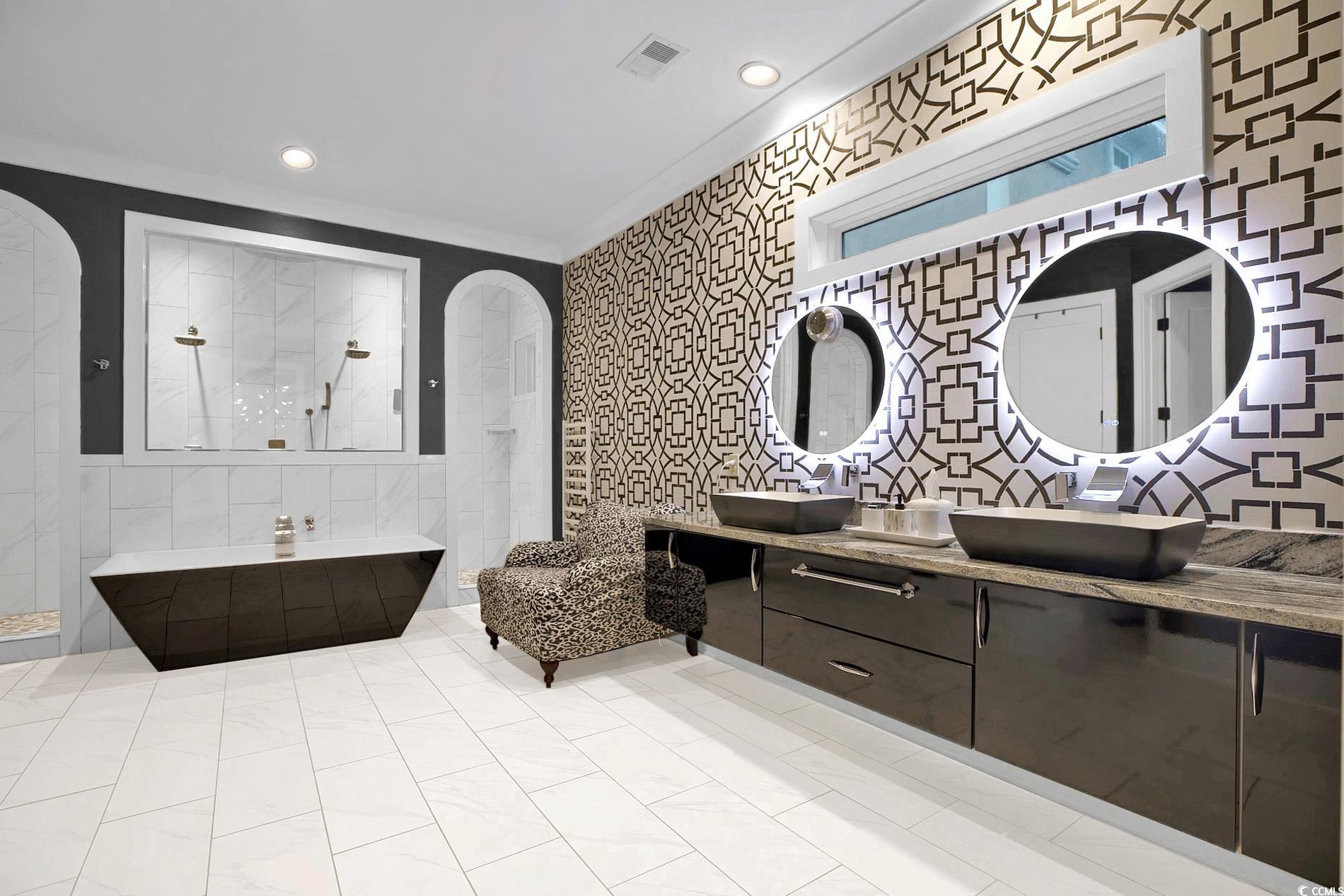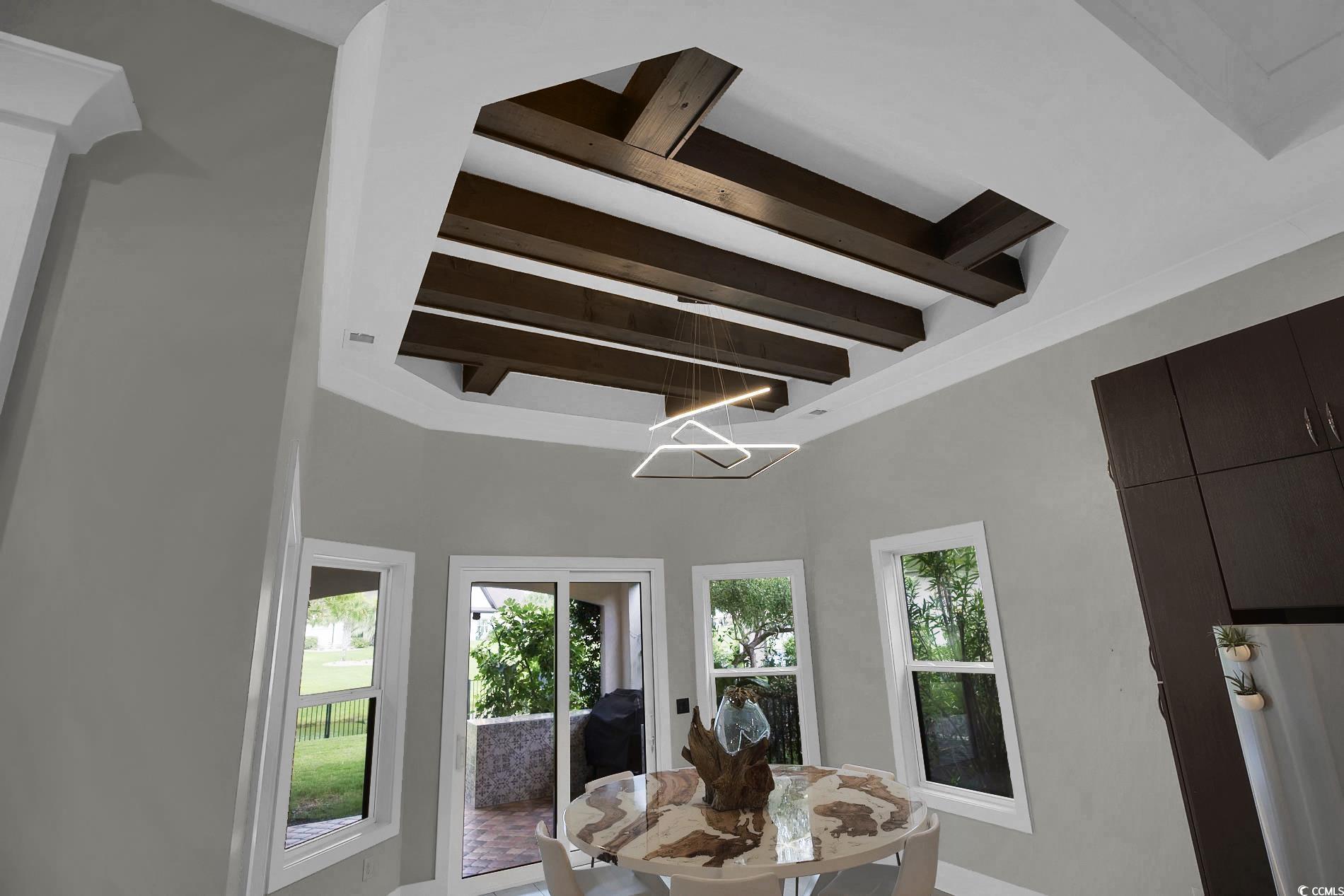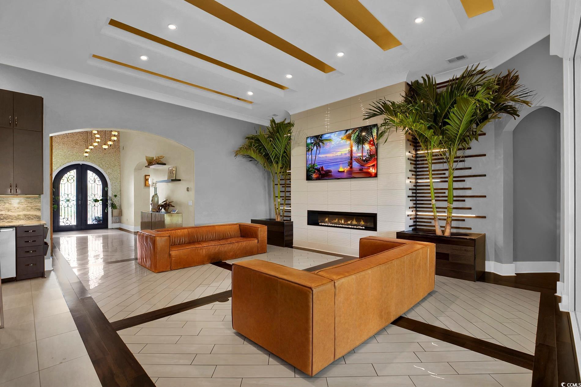 SEE VIRTUAL TOUR LINK. Welcome to this stunning custom residence that masterfully blends luxury, functionality, and distinctive design elements from around the world. This remarkable home showcases premium craftsmanship and thoughtful details throughout every space. Architectural Distinction: Step through the magnificent double iron doors with hinged glass panels into a breathtaking 15-foot entryway height that sets the tone for this extraordinary home. Beautiful archways flow throughout the house, complemented by high ceilings with custom designs that create an atmosphere of grandeur and sophistication. Exquisite Moroccan chandeliers in the foyer, along with Turkish lanterns in the tower provide an exotic and luxurious ambiance. The home showcases exquisite Brazilian pecan wood flooring, prized for its strength and smooth finish that delivers both elegance and lasting appeal. Extensive tile flooring adds significant value to the property while providing natural insulation benefits. Custom wall designs including a luminous mother-of-pearl accent wall in the foyer and wooden slat wall features with custom dimmable lighting create unique focal points throughout. Kitchen Excellence: The designer kitchen represents culinary perfection with its organized and ample storage solutions. Specialty features include built-in spice racks, dedicated knife slots, pots and pans drawers, and adjustable shelf heights designed to accommodate all appliances. A large pantry with integrated drawer section and soft-close drawers provides exceptional organization, while strong wooden shelves in both cabinets and pantry ensure durability. The kitchen boasts a spalted maple bar top, a convenient pot filler, Cambria quartz countertops, and honed granite sinks. Modern appliances include a new refrigerator, the market's quietest dishwasher by premium brand Bosch, a convection option oven, and a Thermostar electric range. Thoughtful details like hidden outlets and USB ports in both kitchen and bedrooms demonstrate attention to modern convenience. Living Spaces: Retreat to the luxurious primary suite, where the bathroom is a spa-like escape featuring dual towel warmers and a 24 rain shower. The walk-in closet includes a fully customizable shelving system, a Sputnik chandelier, and even a built-in boot rack. Each additional bedroom offers large closets and beautifully designed bathrooms with floating vanities and upscale finishes. The Christmas Palms maintained with an outdoor rain barrel system - these indoor plants, typically seen in luxury hotels, provide air purification while creating a sophisticated ambiance. Additional touches include a remote-controlled linear gas fireplace in the living room. Climate Control & Air Quality: A new A/C unit and air handler installed in November 2024 ensures optimal comfort year-round. The home features upgraded ventilation systems with UV air scrubber technology and Big Bear air filters for exceptional indoor air quality. The home is capped with a tile roof, known for its longevity (averaging 100 years) and added insulationpairing beauty with lasting function. Outdoor Living: Enjoy year-round outdoor living with a handmade 1 thick Saltillo tile patio imported from Mexico, a fully equipped outdoor kitchen with hot/cold water sink, a gas line for your grill and firepit, perfect for al fresco dining and entertaining. Gated Community: Beyond the exceptional home itself, residents enjoy exclusive access to an impressive amenity center within this secure gated community. The resort-style facilities include a swimming pool, and two distinctive clubhouses - one offering poolside relaxation and entertainment, while the other provides waterway views for peaceful gatherings. Active residents will appreciate the tennis and pickleball courts, and children's playground. The community features a private boat storage, convenient boat ramp with floating dock, providing access to waterway adventures and boating. Seller is a Realtor.