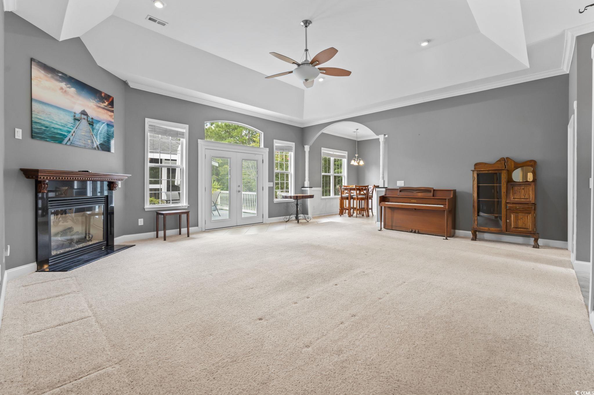 This gorgeous 3 bedroom luxury home is a quiet retreat in stunning Cypress River Plantation. This home is custom built with an All brick exterior finish and features soaring 10 foot ceilings capped by crown moldings, and tall 6 foot windows let light and nature through this peaceful home. Enjoy the cozy fireplace and a space large enough for a family gathering and take in the private wooded backyard from the gorgeous windows. The kitchen features gorgeous granite counter tops, a breakfast bar, an eat in area and double window overlooking your private backyard and a pantry for extra stock. Easily bring your groceries in through the side loading garage right into the kitchen area. The owners suite is expansive, backs to your mature trees and is a quiet layout on the back of the house. The large owners bathroom features a long vanity, a separate step in shower, a garden tub and a water closet. Two guest rooms are on on the opposite side of the house and showcase tall ceilings, expansive windows and large bedrooms. The guest bathroom features a full bath to share with a step in shower and a mirrored dressing room. Enjoy the privacy of one of the largest lots in the community with a wooded backdrop. Sit in your screened gazebo off the back deck and enjoy a relaxing breeze and nature in the preserved nature behind the .59 acre lot. Build your backyard oasis and make your dreams come true in the exquisite Cypress River Plantation. You'll love the community's southern charm and top notch amenities. It's like living in a resort with access to the clubhouse, pool, pickleball courts, boat ramp to the intracoastal waterway and day docks. Cypress River Plantation is a secure, gated community in Myrtle Beach that is unmatched on beauty and amenities.